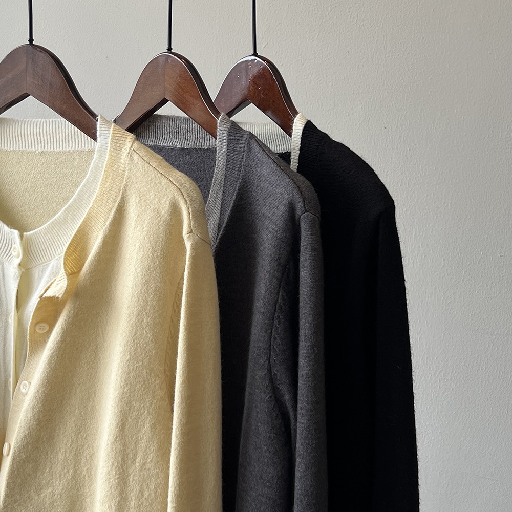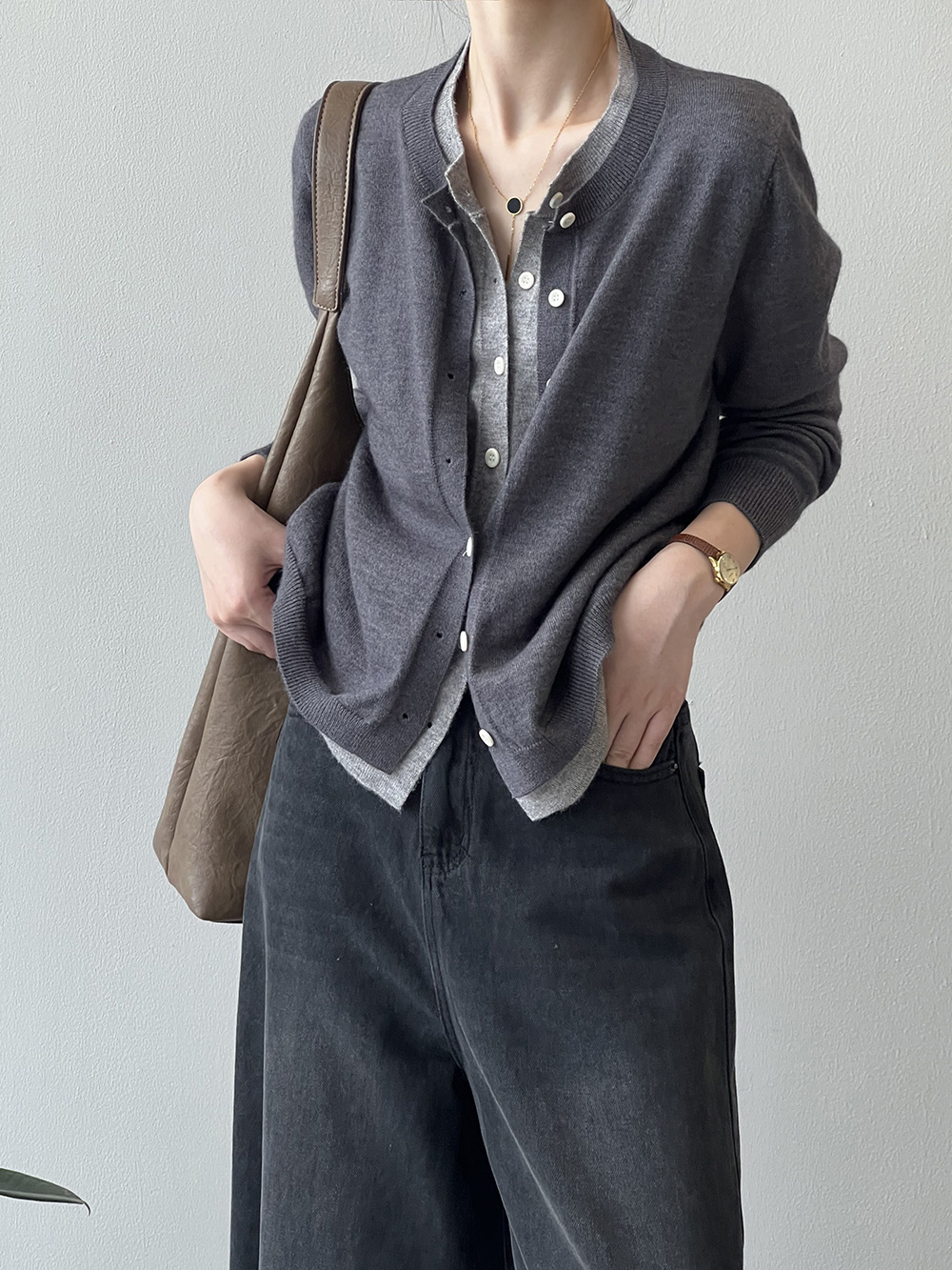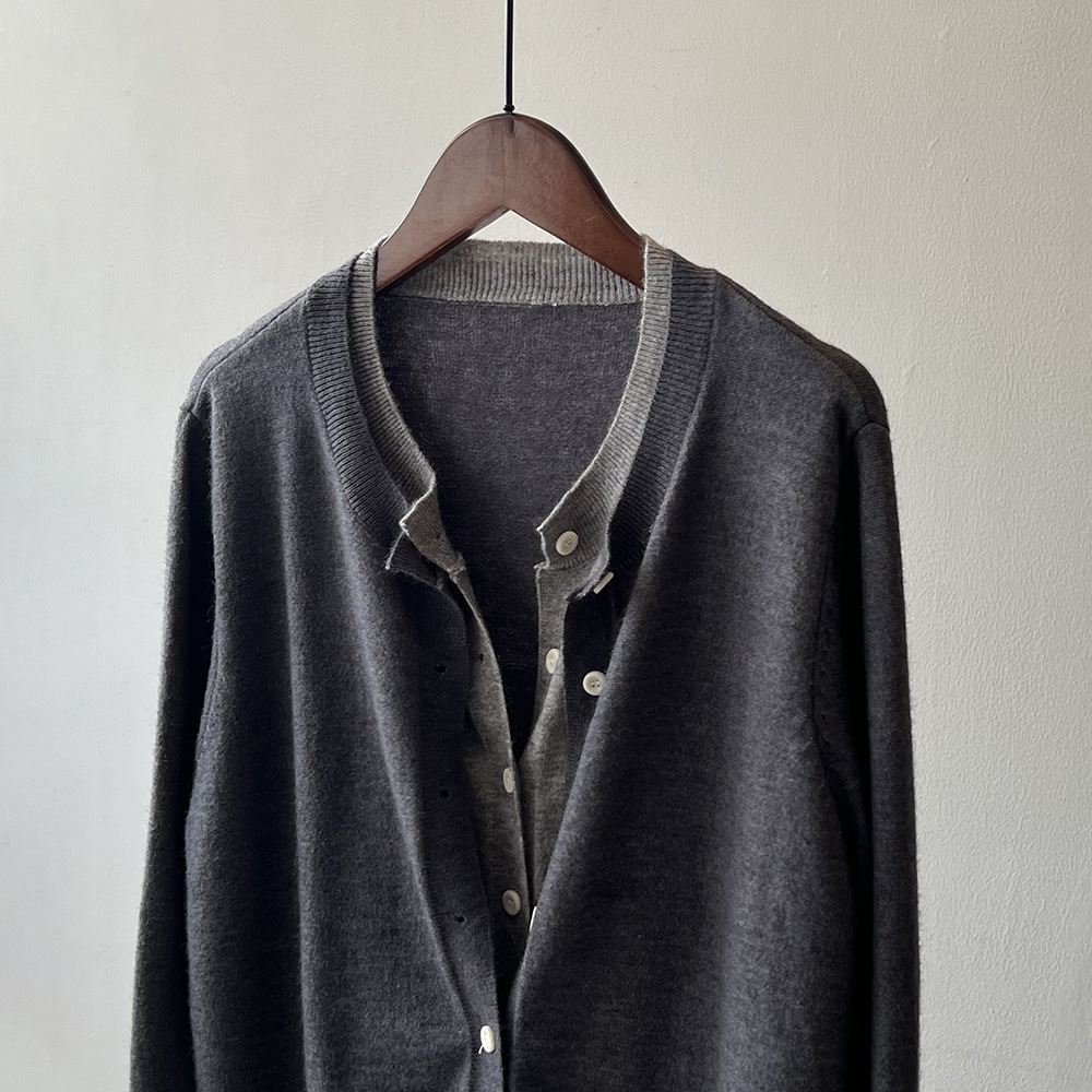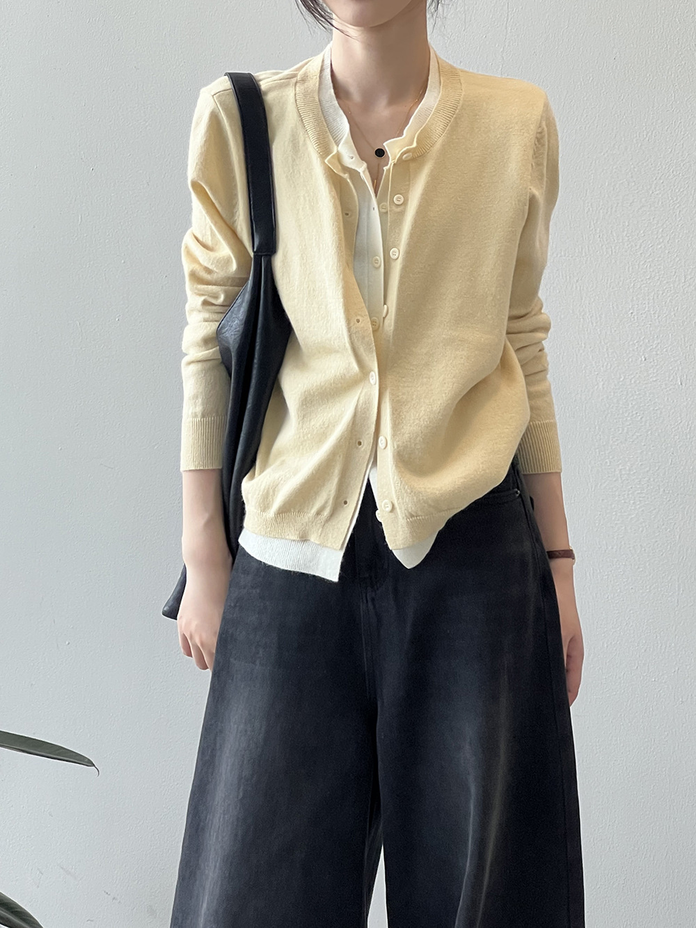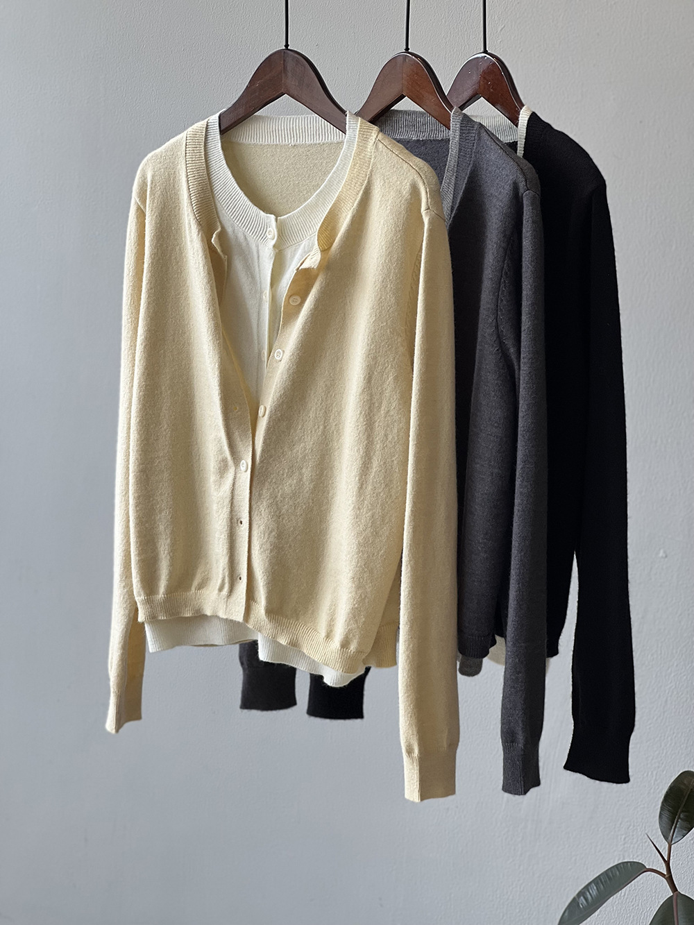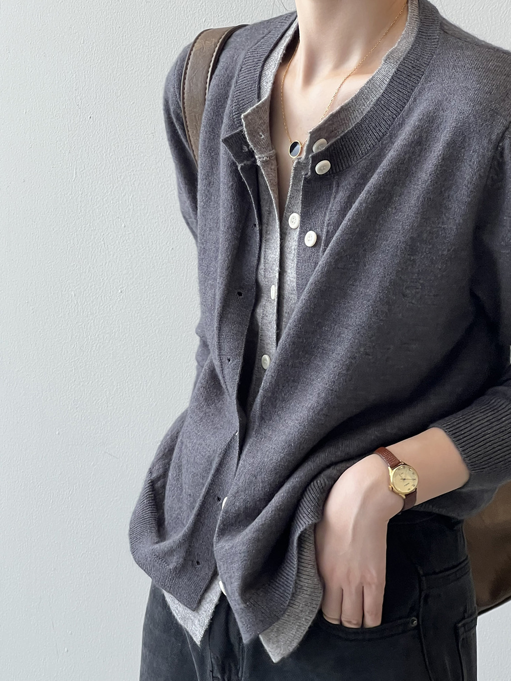 *o-ha-you*【FYS500603】拼色圓領假兩件針織開襟衫2024秋季顯瘦毛衣外套上衣-3色