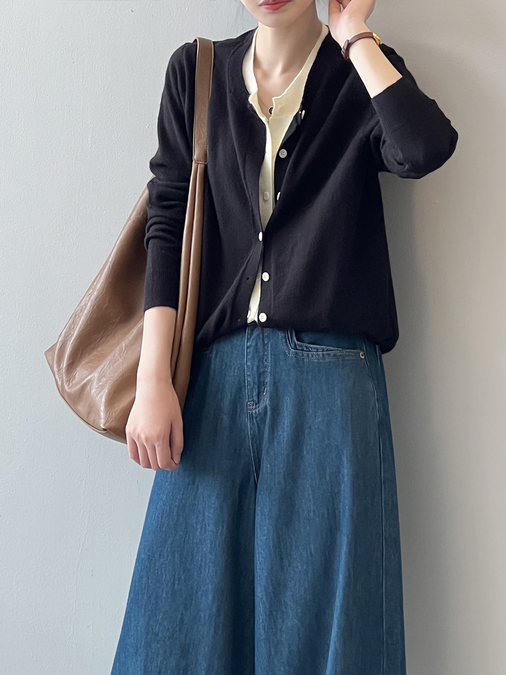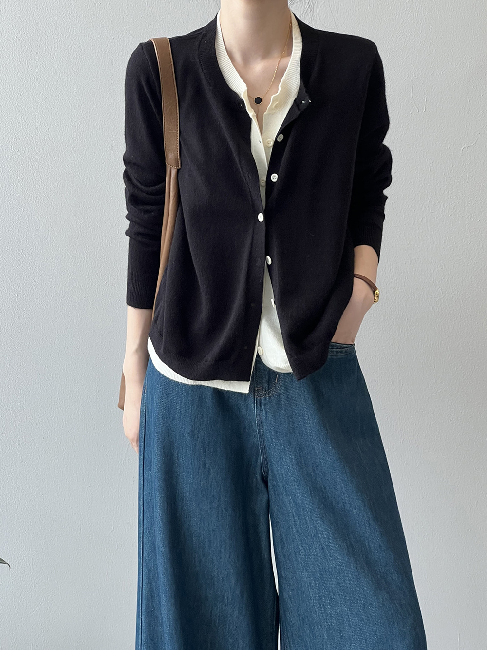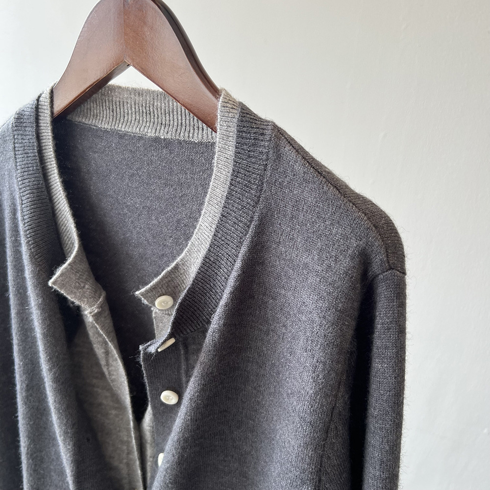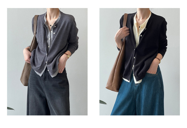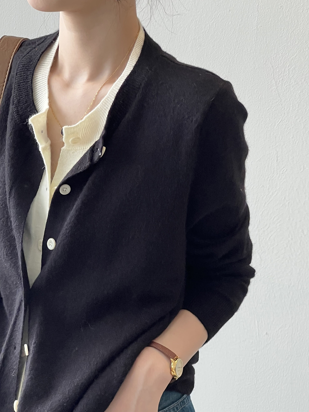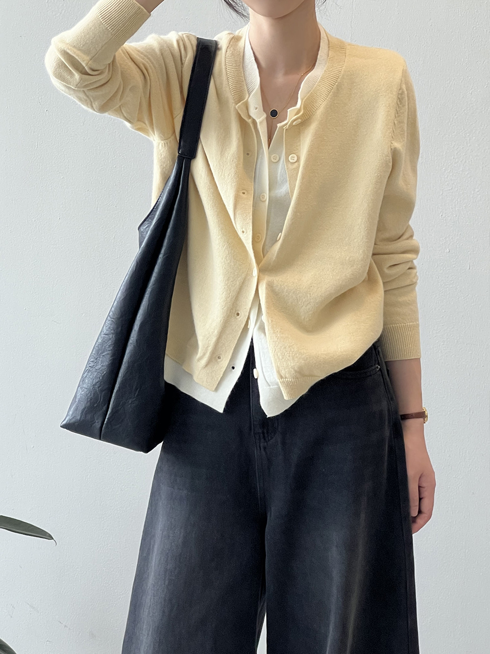 *o-ha-you*【FYS500603】拼色圓領假兩件針織開襟衫2024秋季顯瘦毛衣外套上衣-3色