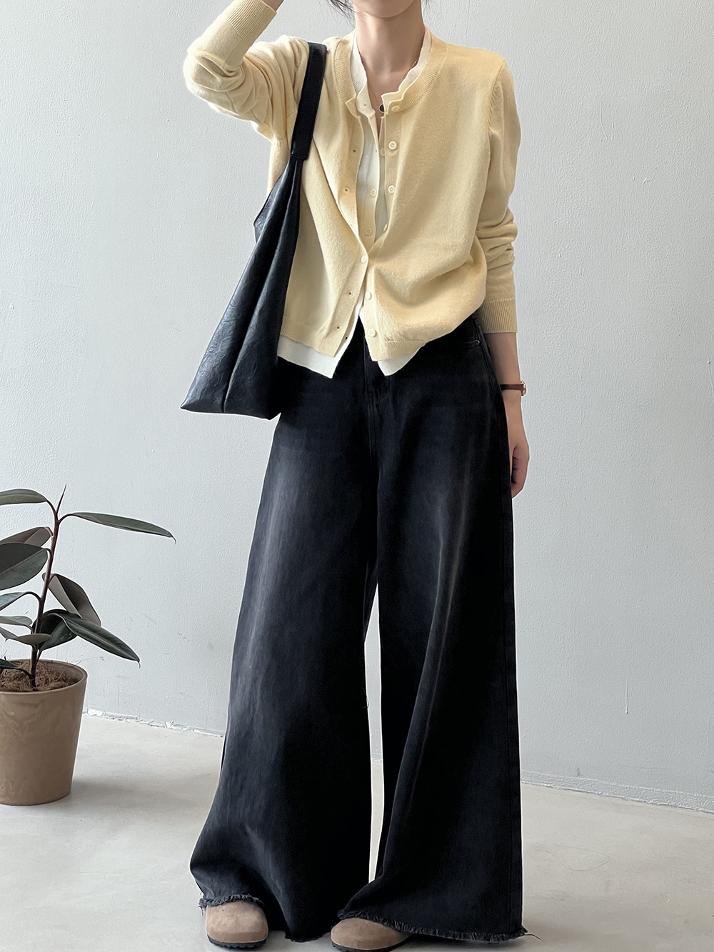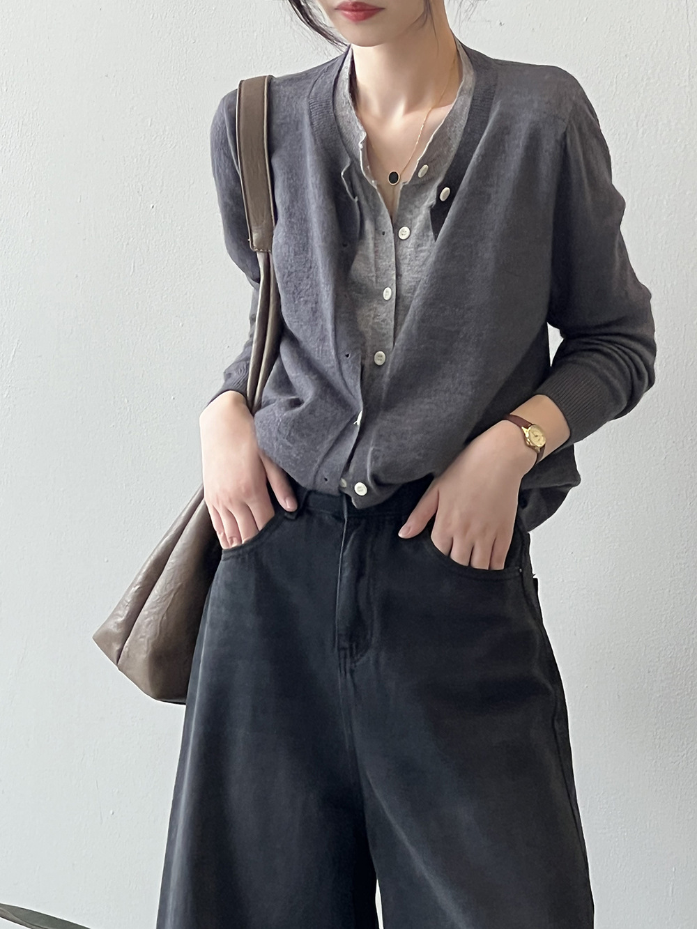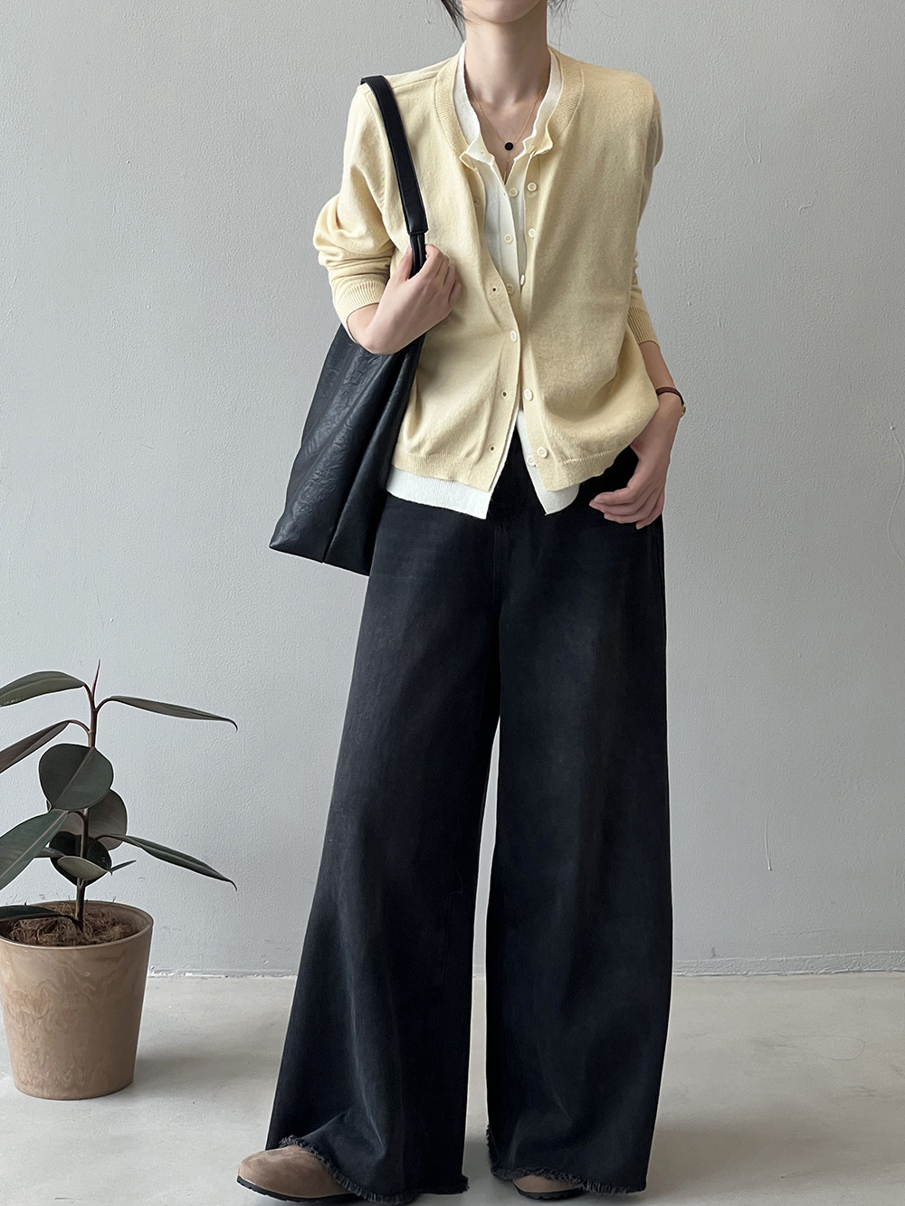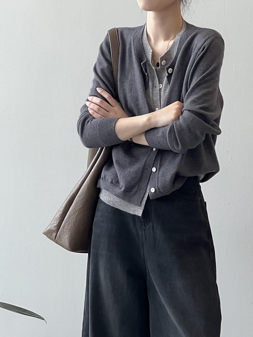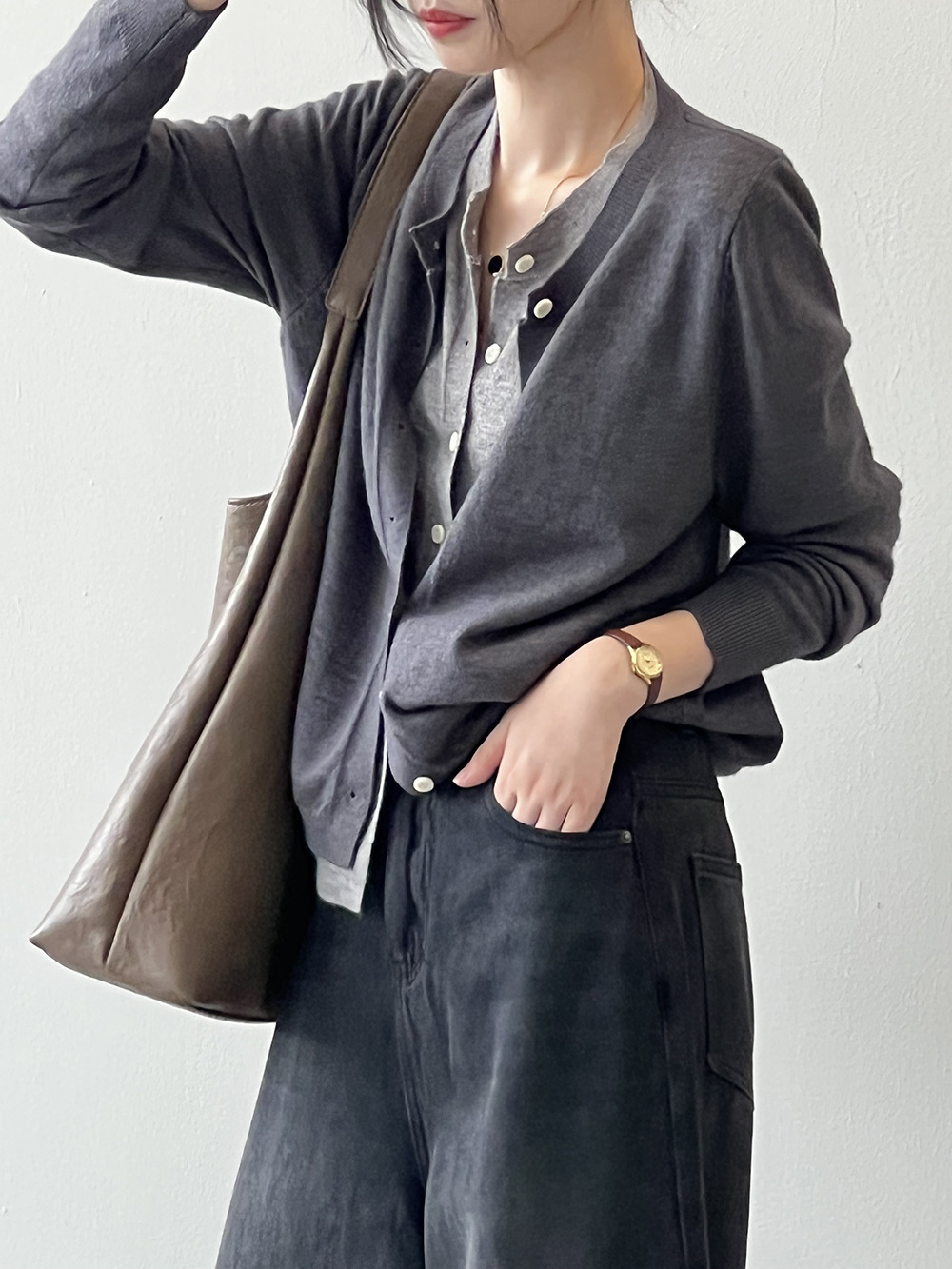 *o-ha-you*【FYS500603】拼色圓領假兩件針織開襟衫2024秋季顯瘦毛衣外套上衣-3色