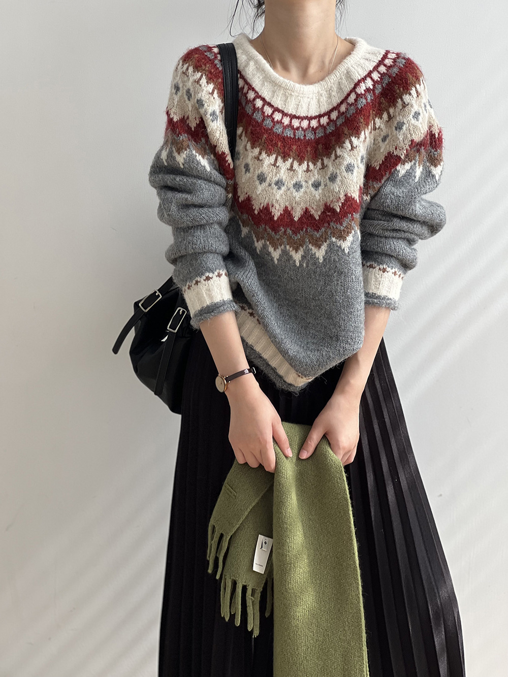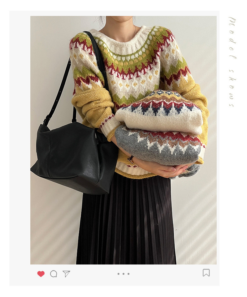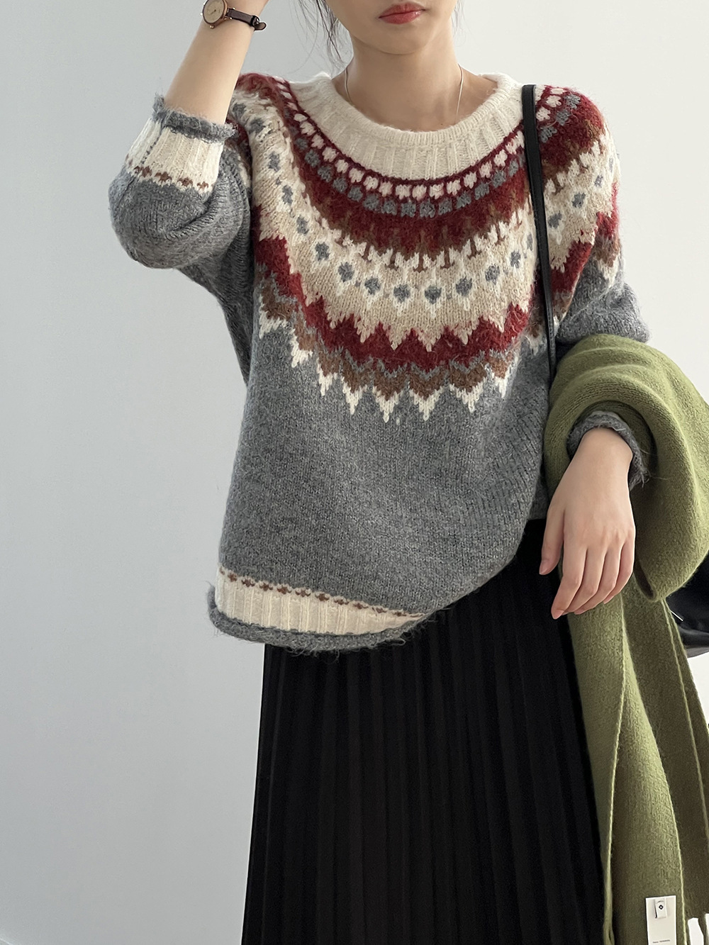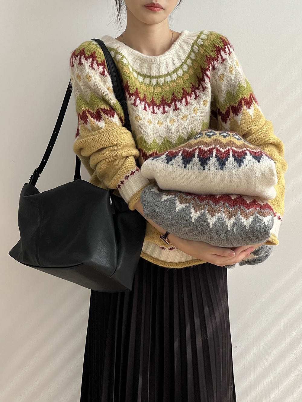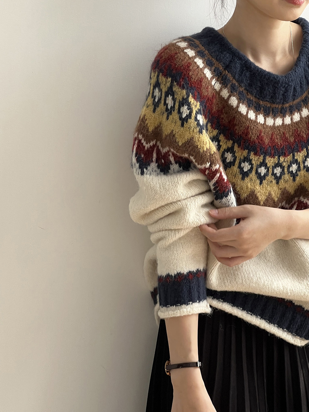 *o-ha-you*【FYS500823】復古費爾島軟糯套頭毛衣2024秋冬小眾氣質針織上衣-3色-如有需要請先諮詢