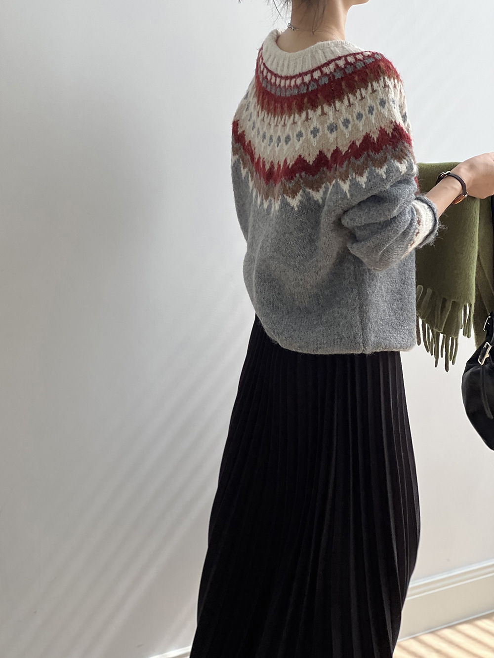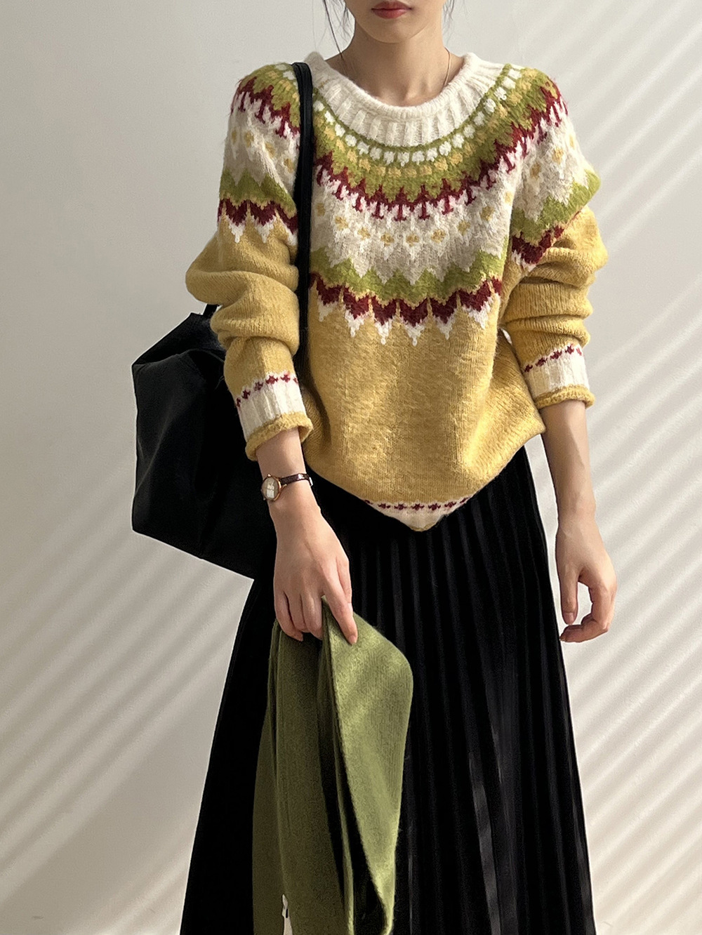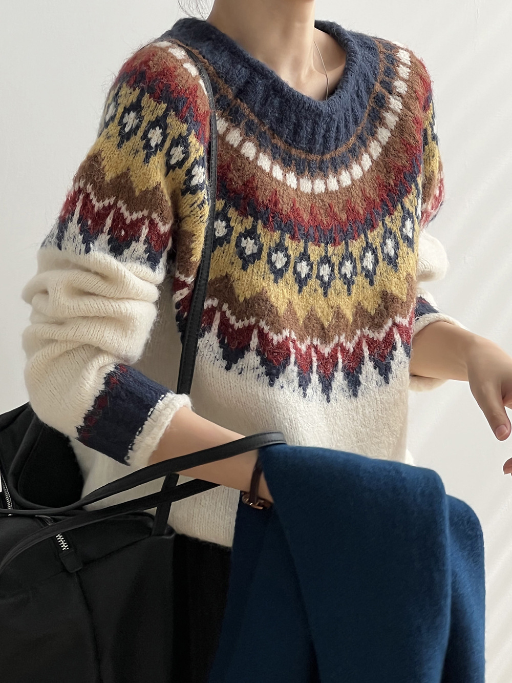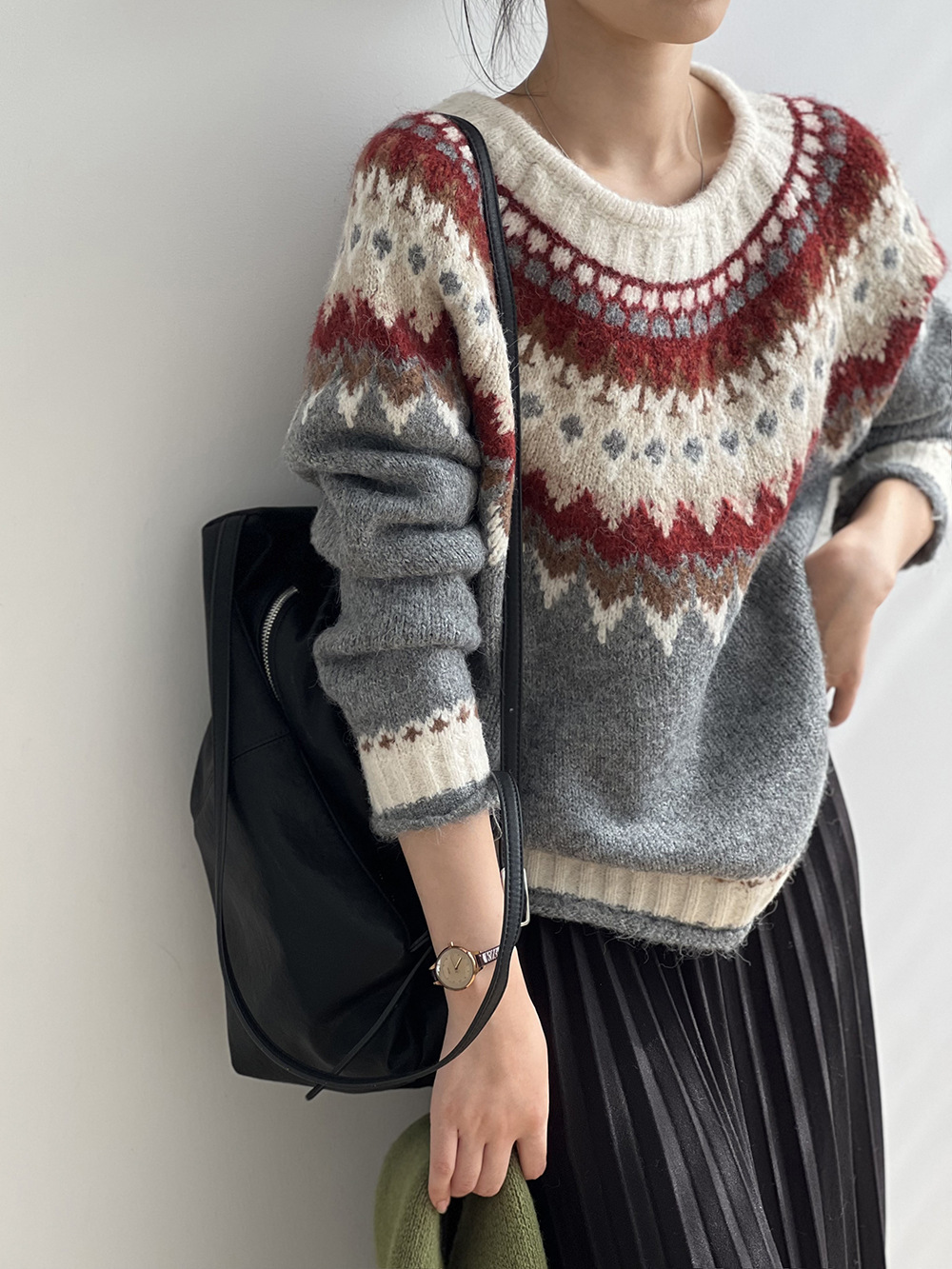*o-ha-you*【FYS500823】復古費爾島軟糯套頭毛衣2024秋冬小眾氣質針織上衣-3色-如有需要請先諮詢