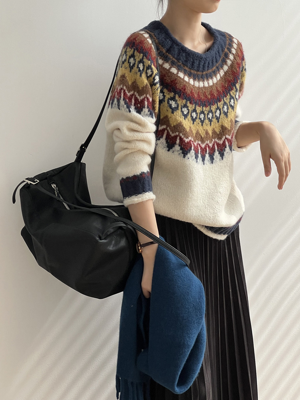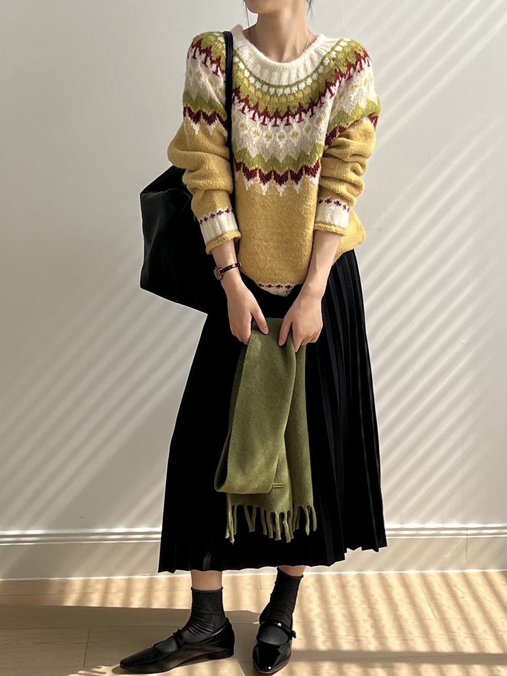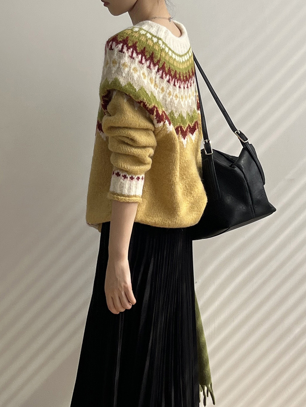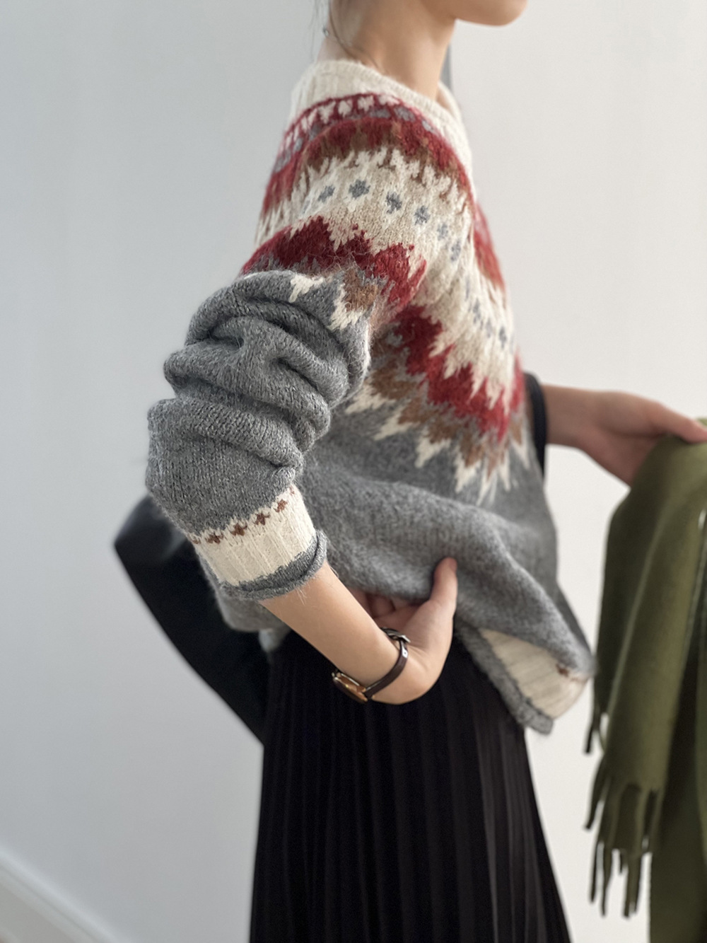 *o-ha-you*【FYS500823】復古費爾島軟糯套頭毛衣2024秋冬小眾氣質針織上衣-3色-如有需要請先諮詢