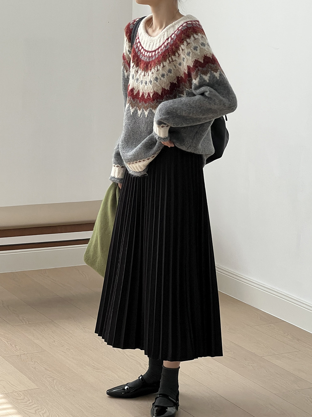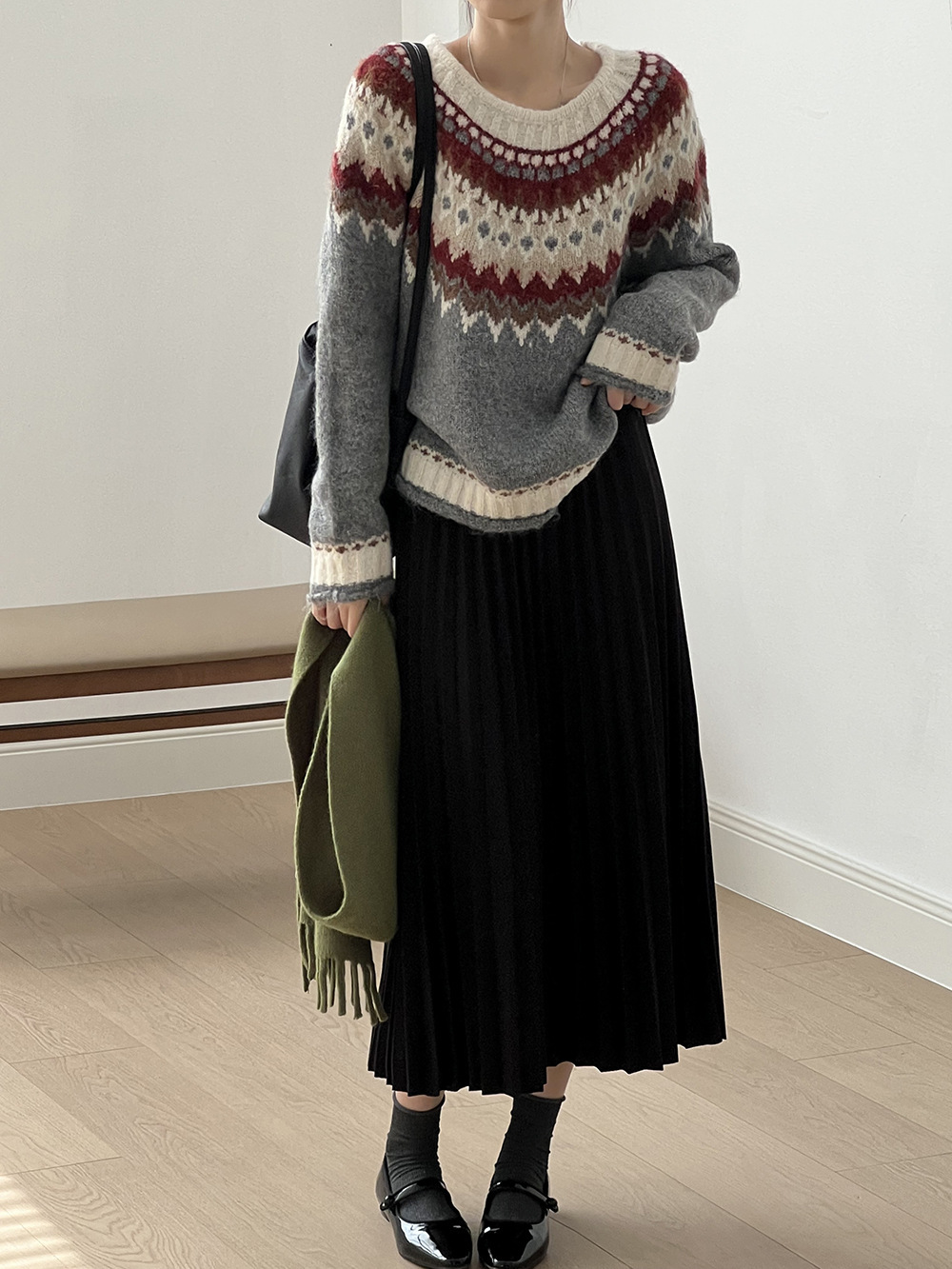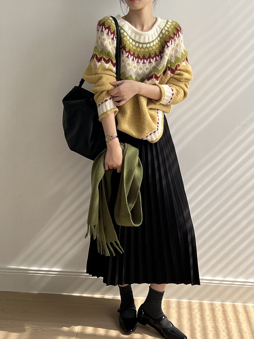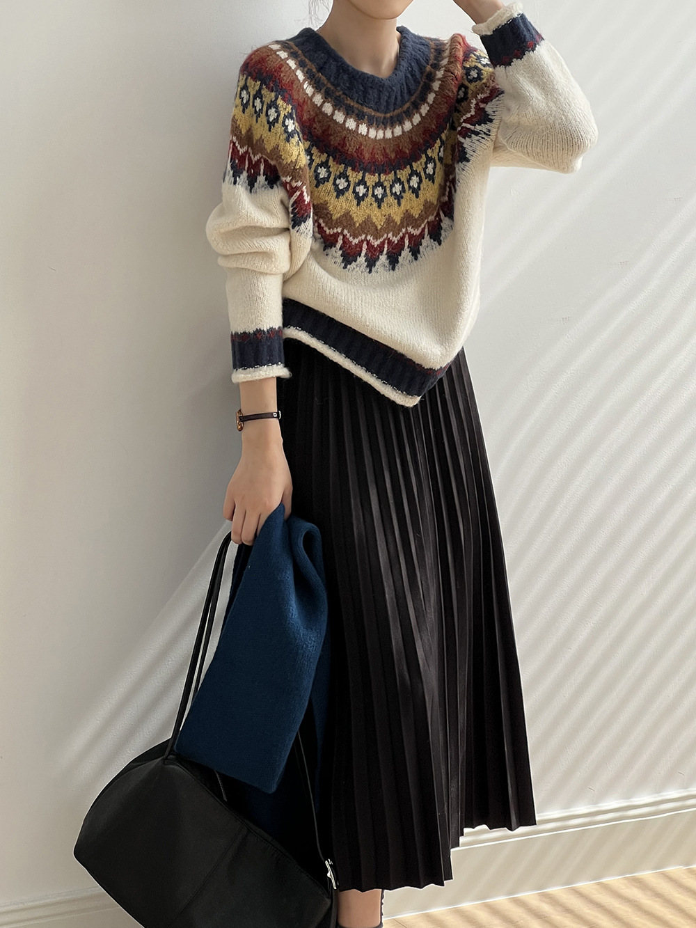 *o-ha-you*【FYS500823】復古費爾島軟糯套頭毛衣2024秋冬小眾氣質針織上衣-3色-如有需要請先諮詢
