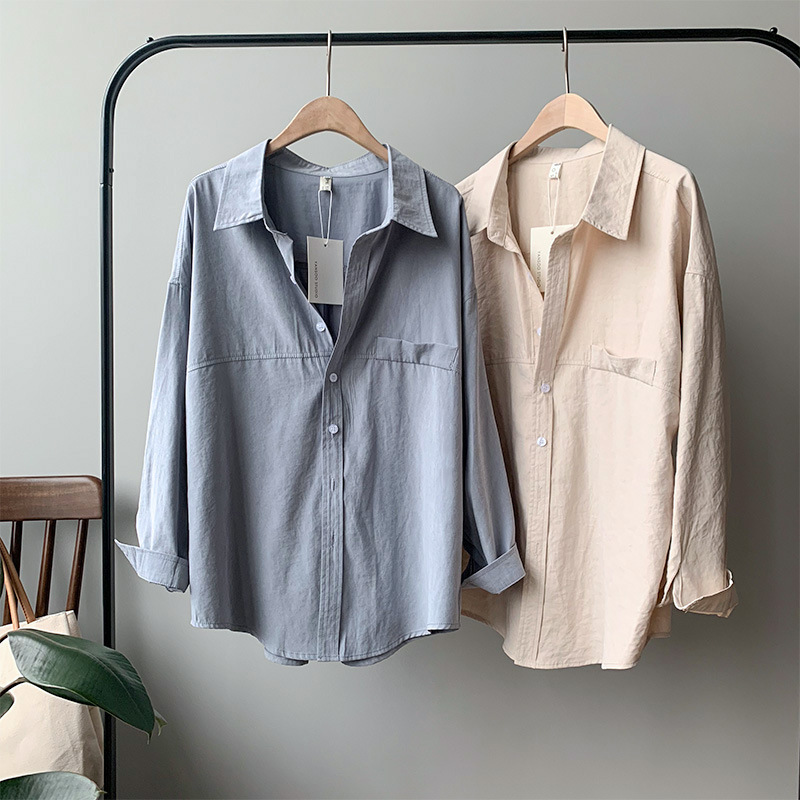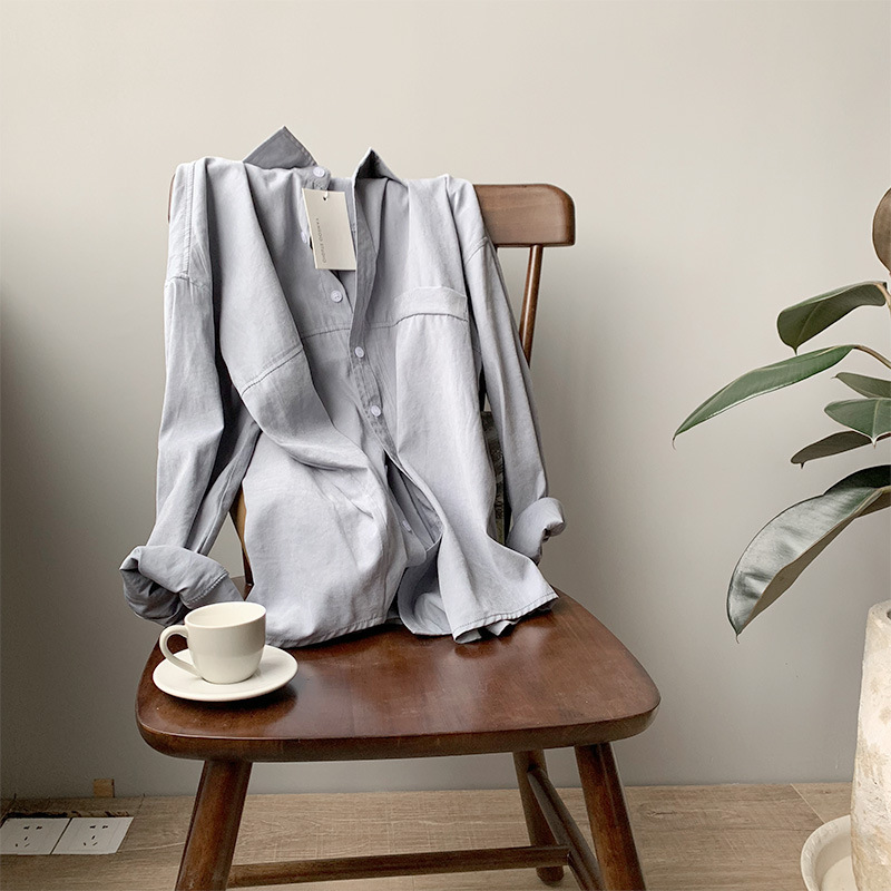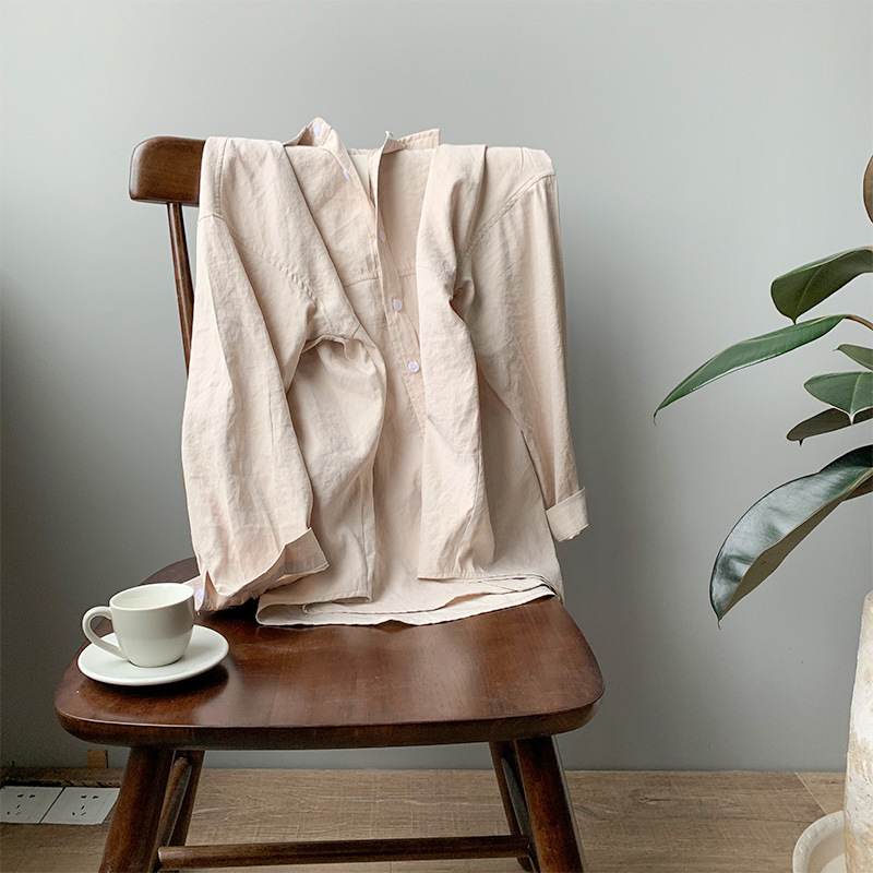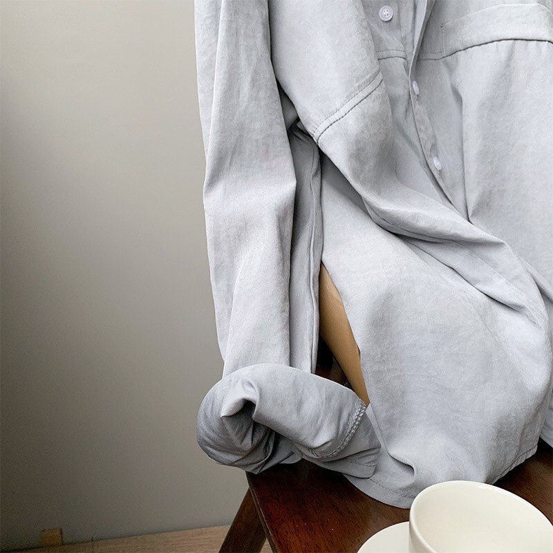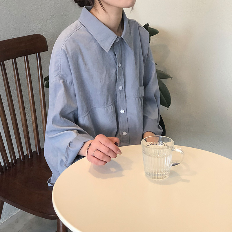 *o-ha-you*【FYS50623】襯衫棉感仿麂皮2024秋季新款輪廓長袖洋氣復古襯衣-3色