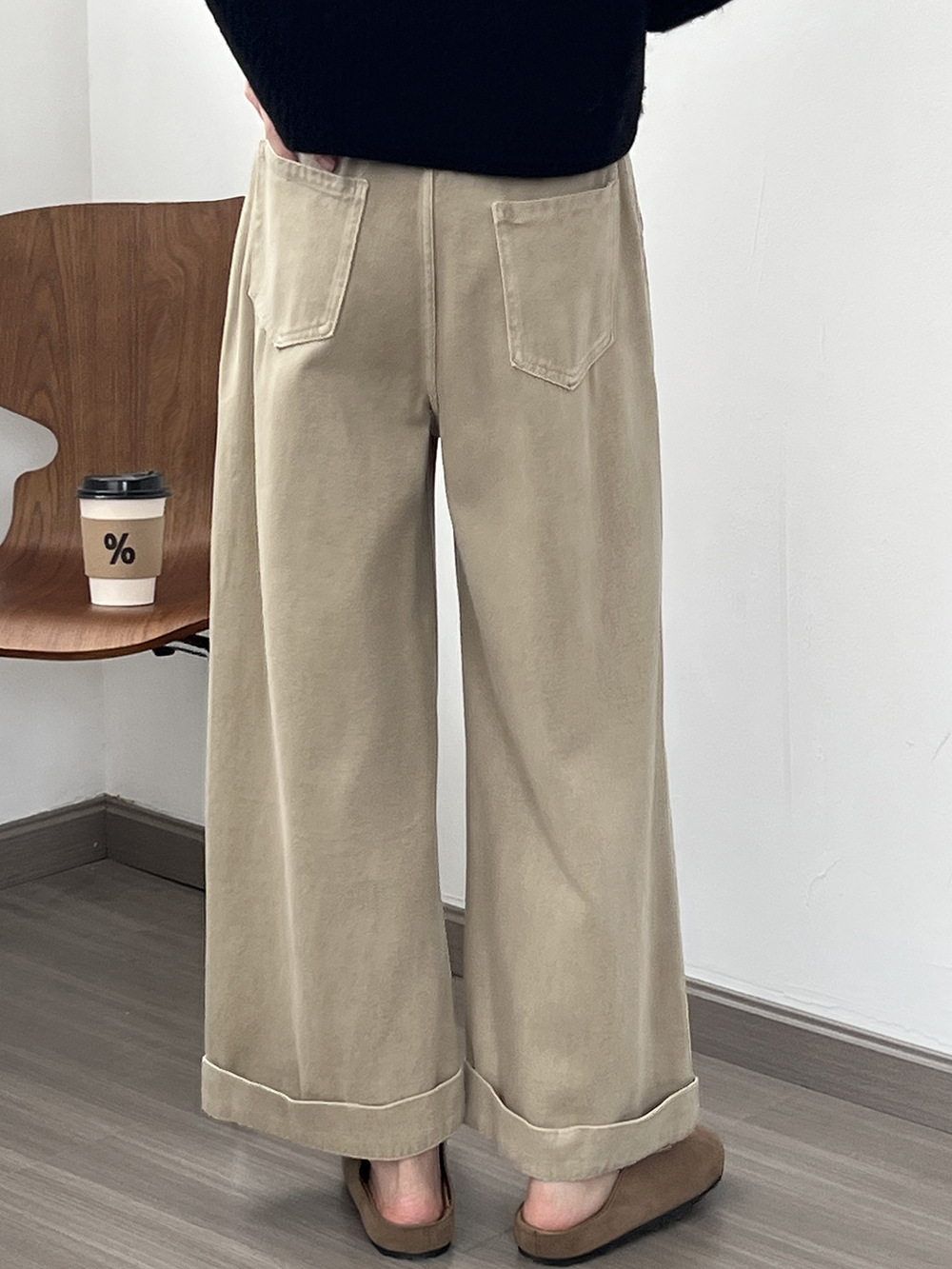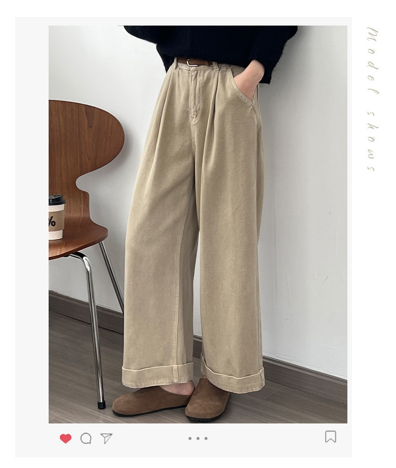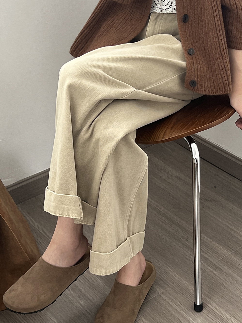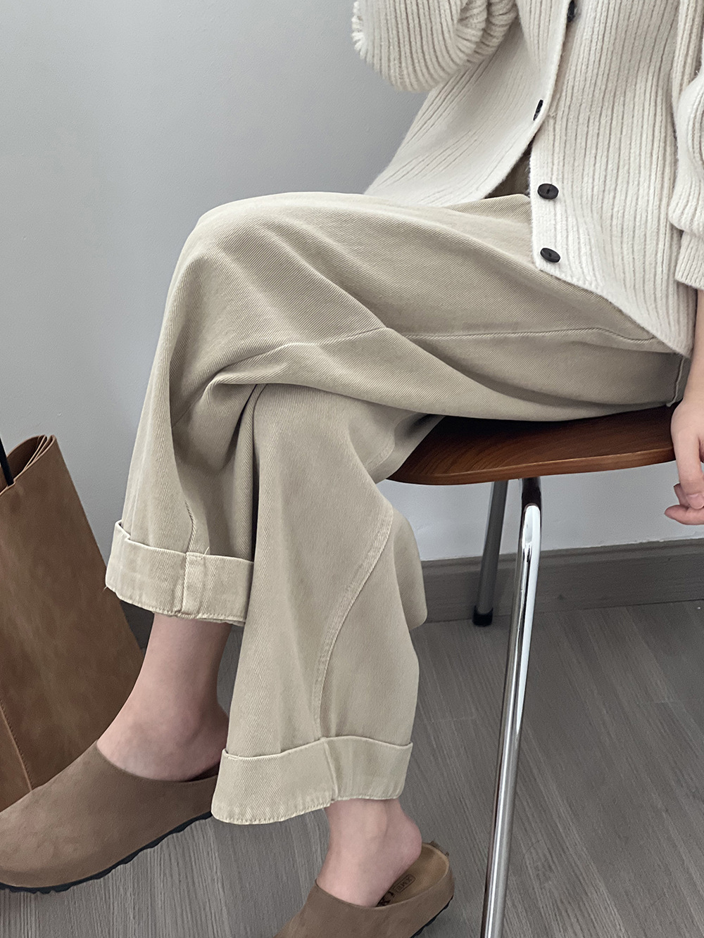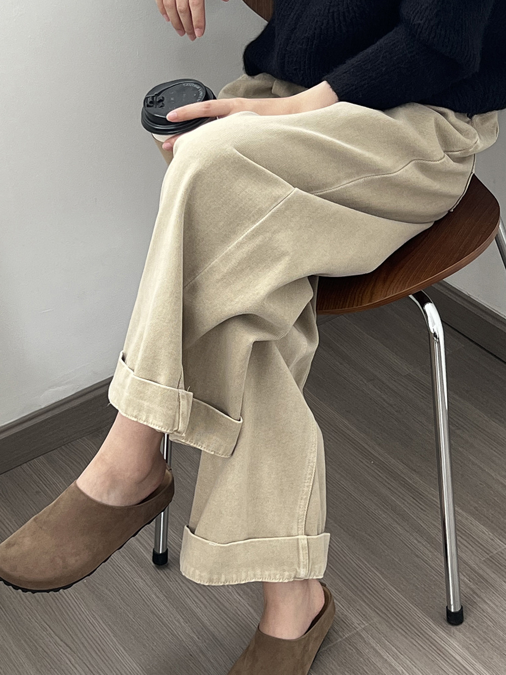*o-ha-you*【FYS608126】韓風簡約高腰捲邊牛仔褲2024秋季新款寬鬆直筒闊腿褲-2色-如有需要請先諮詢