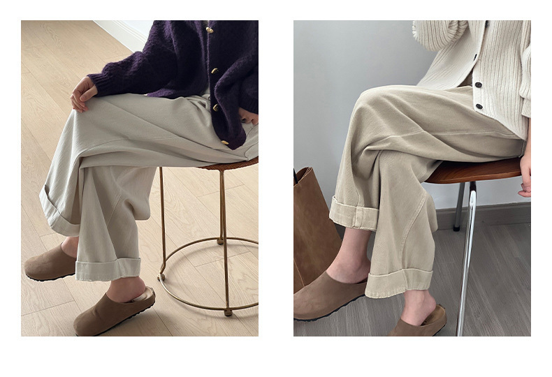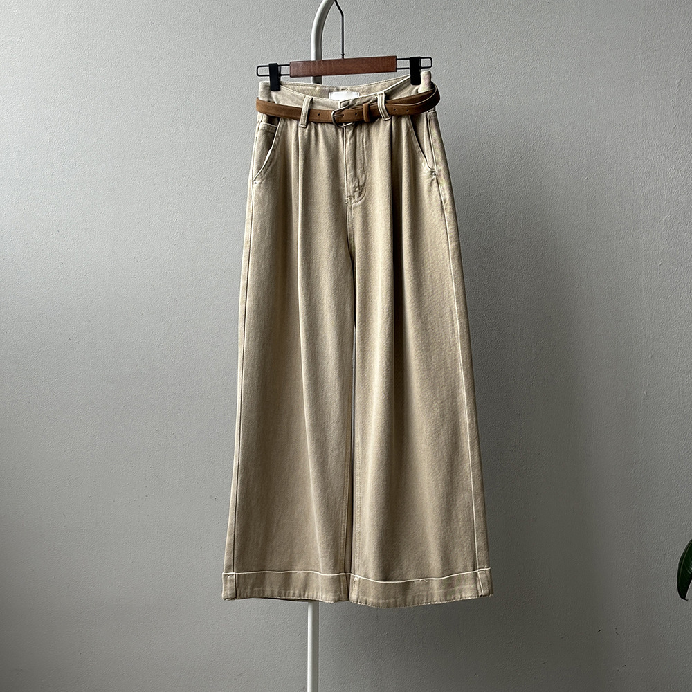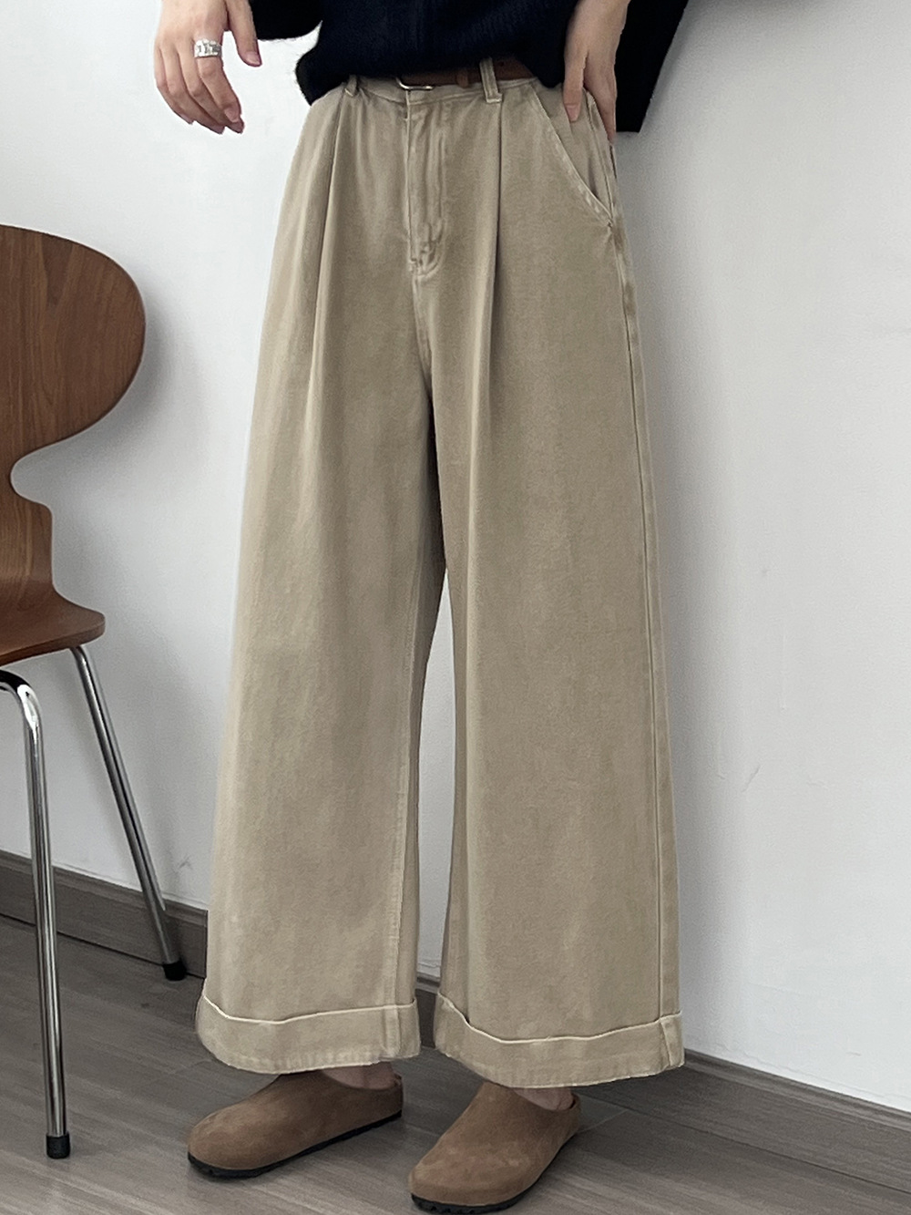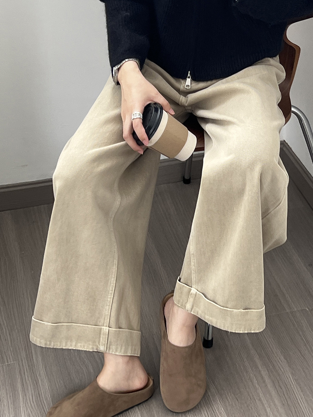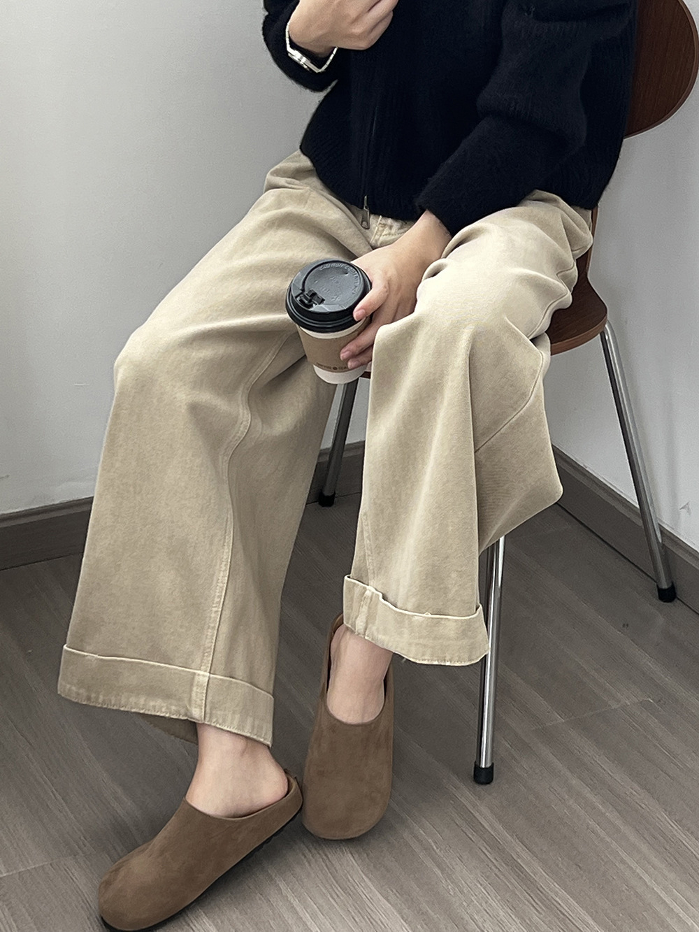 *o-ha-you*【FYS608126】韓風簡約高腰捲邊牛仔褲2024秋季新款寬鬆直筒闊腿褲-2色-如有需要請先諮詢