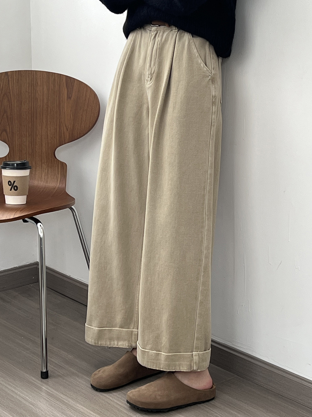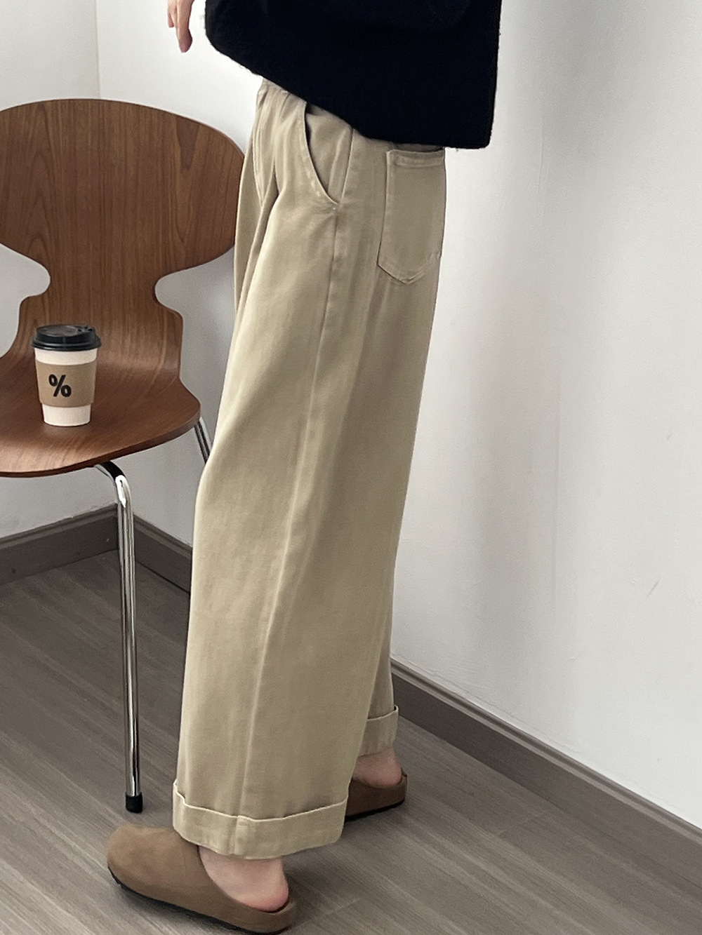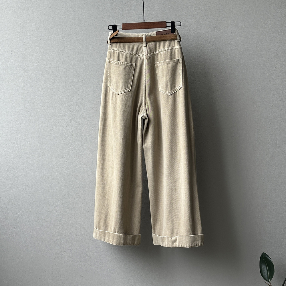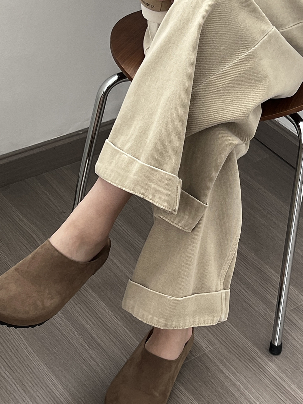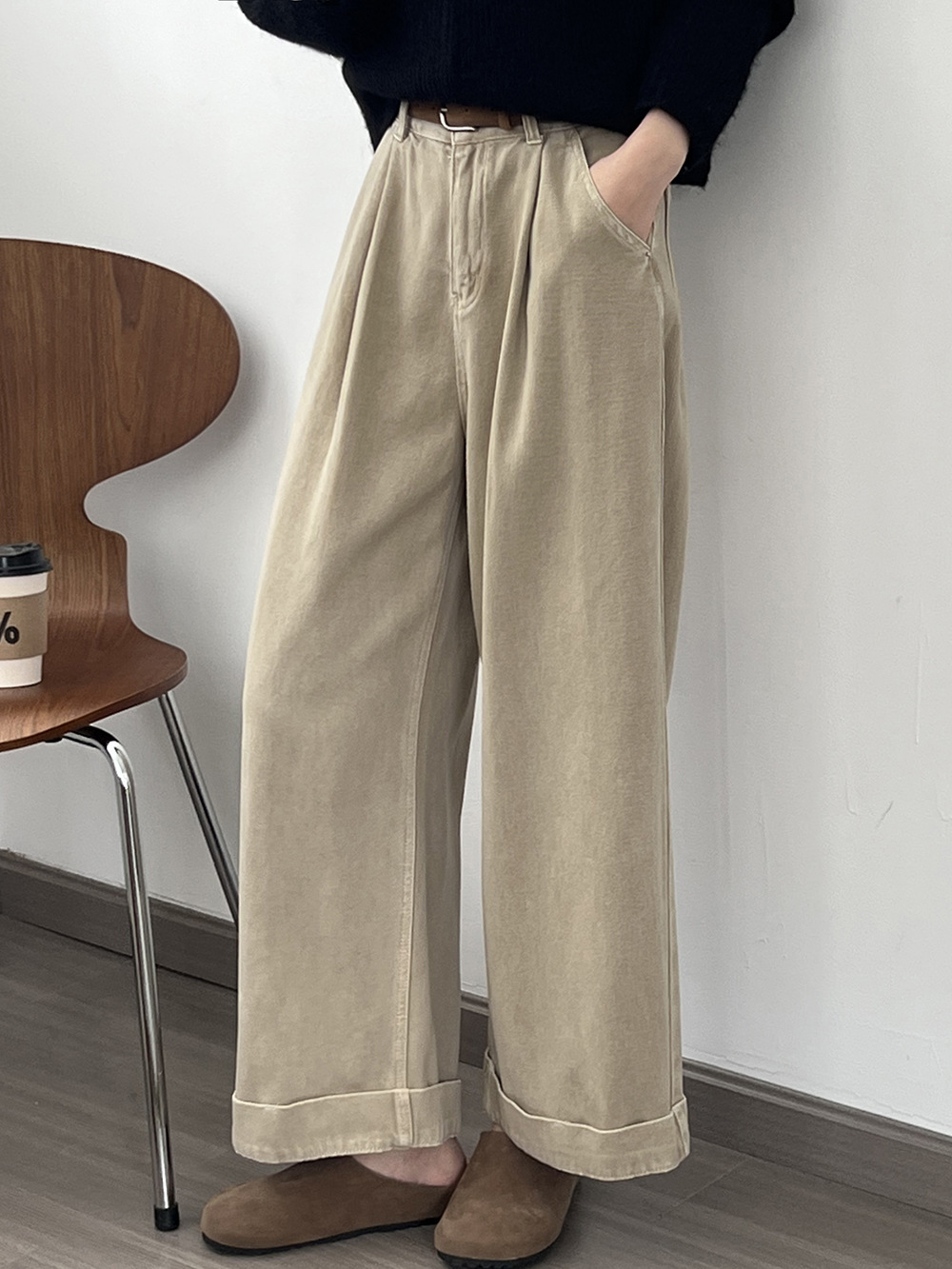 *o-ha-you*【FYS608126】韓風簡約高腰捲邊牛仔褲2024秋季新款寬鬆直筒闊腿褲-2色-如有需要請先諮詢