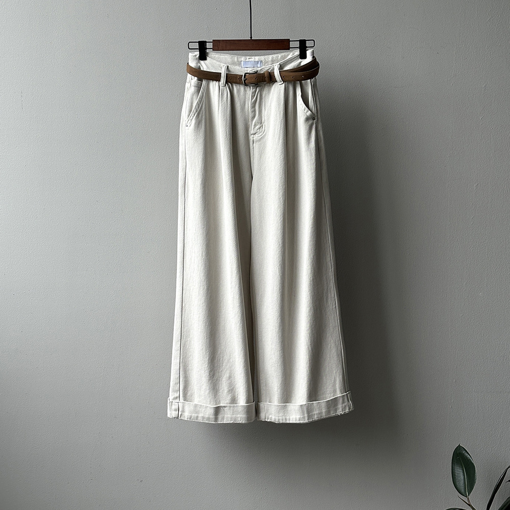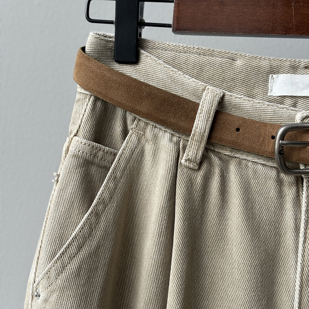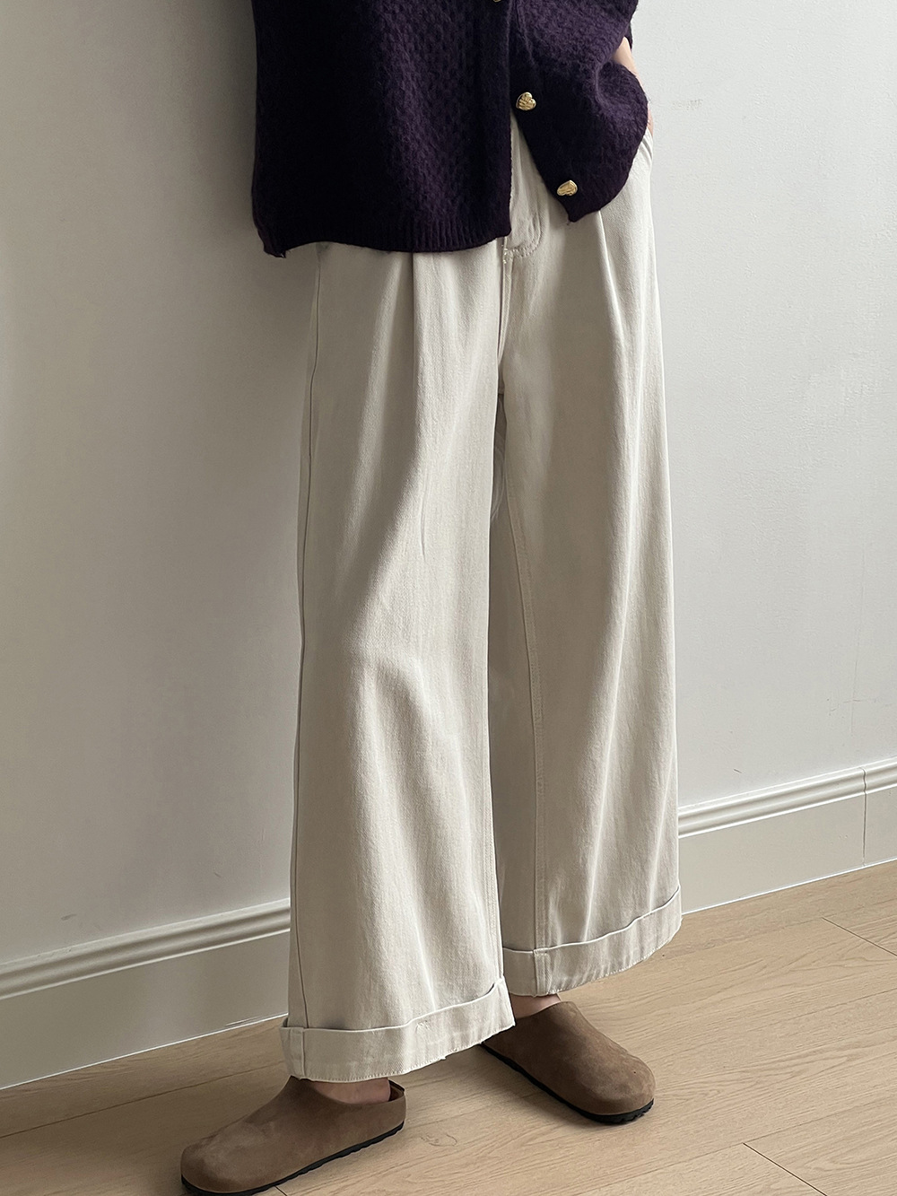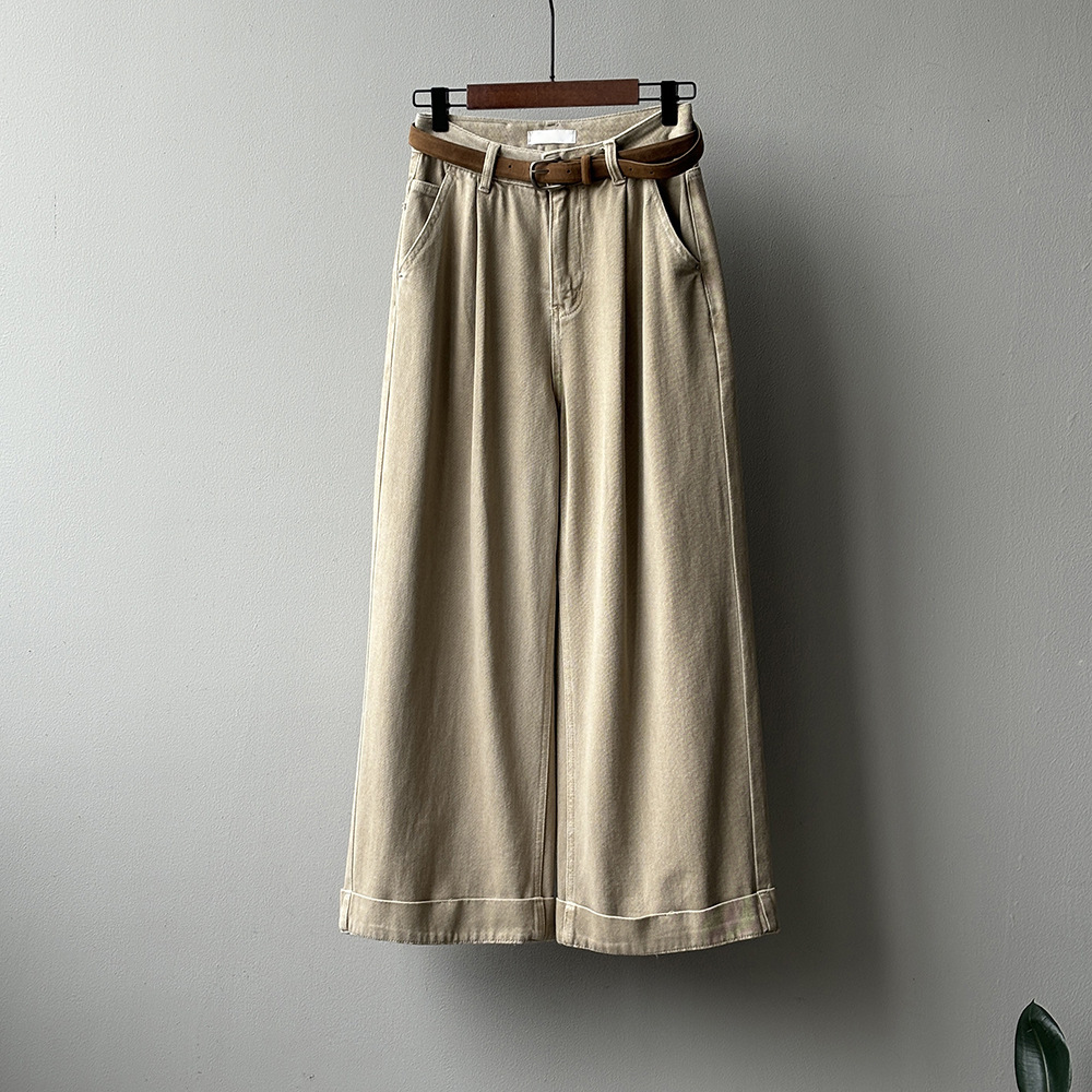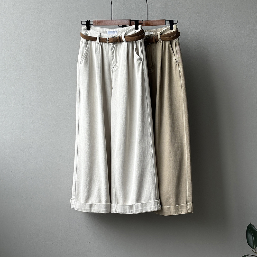 *o-ha-you*【FYS608126】韓風簡約高腰捲邊牛仔褲2024秋季新款寬鬆直筒闊腿褲-2色-如有需要請先諮詢