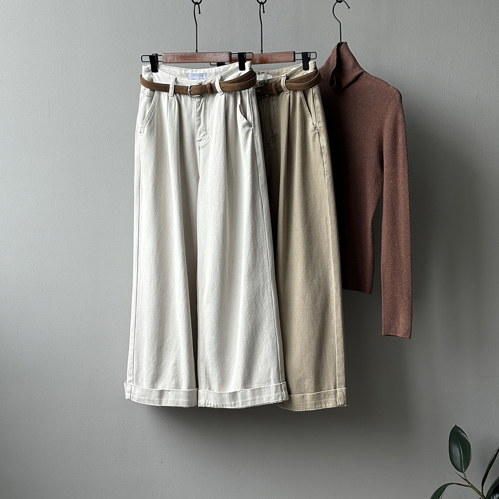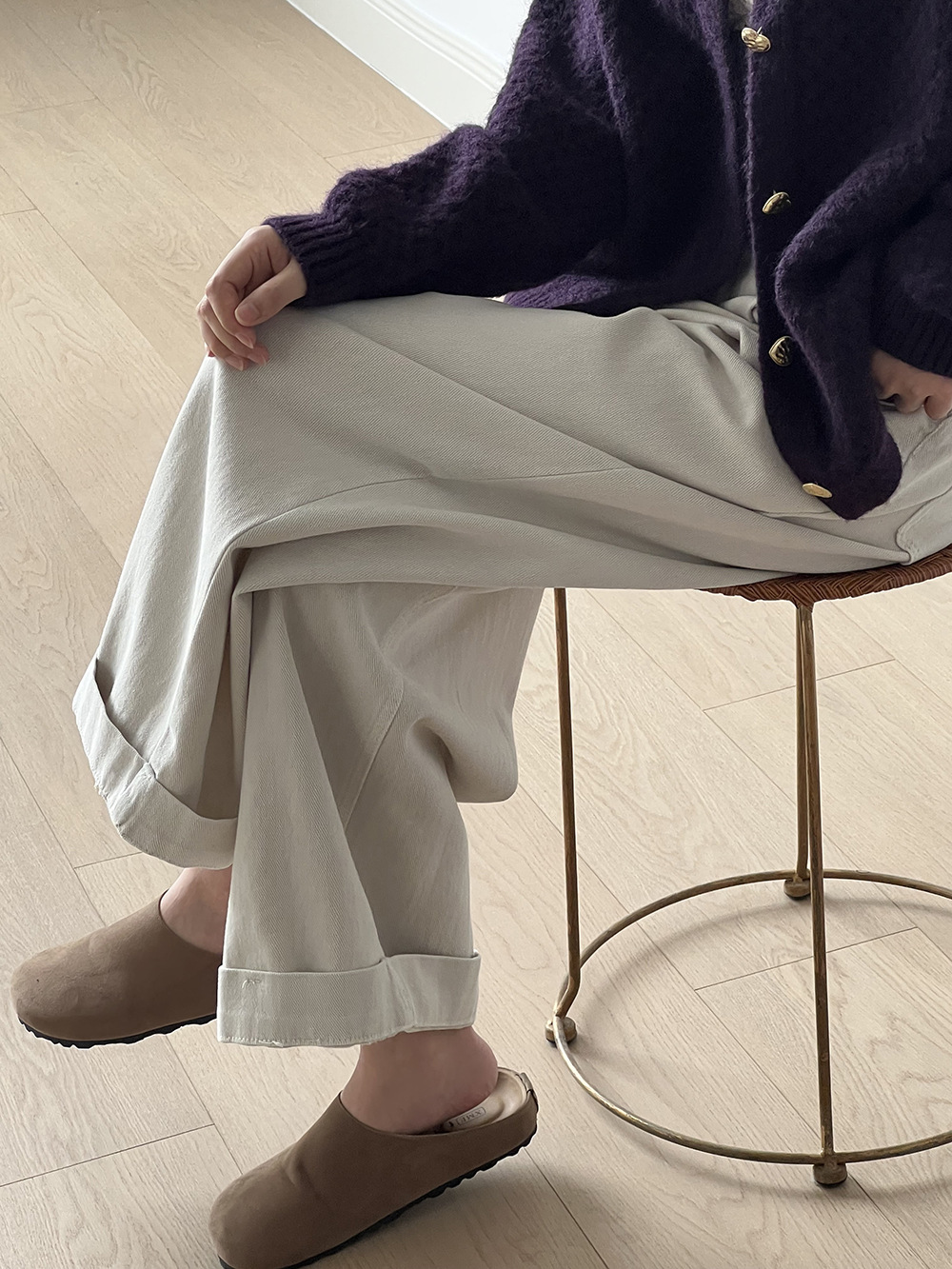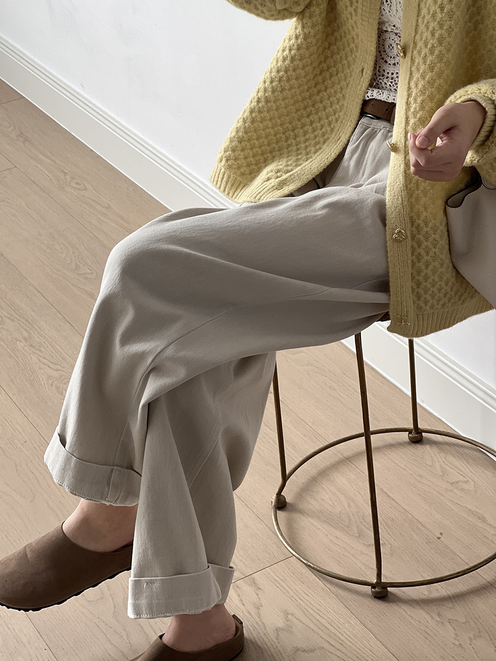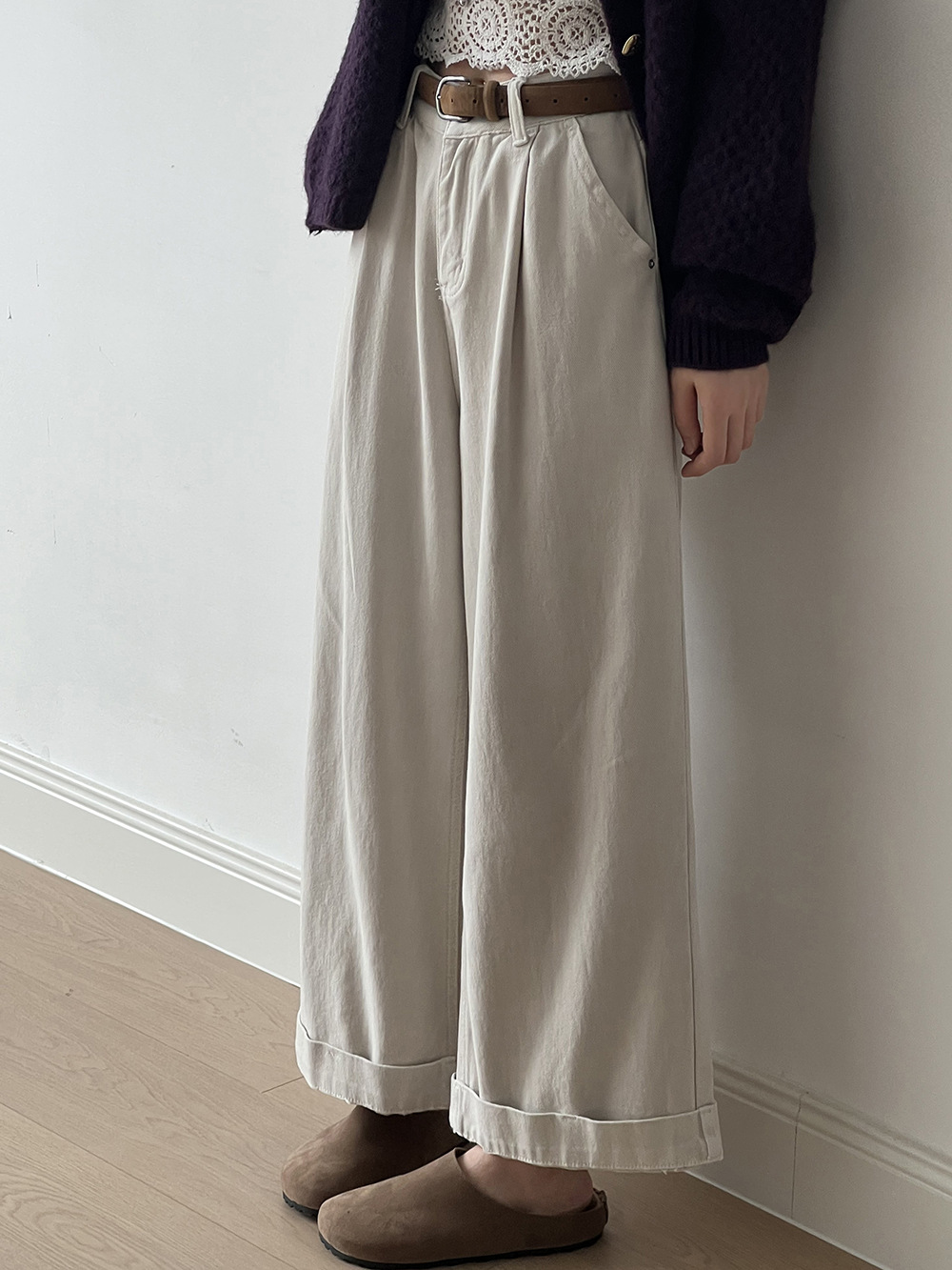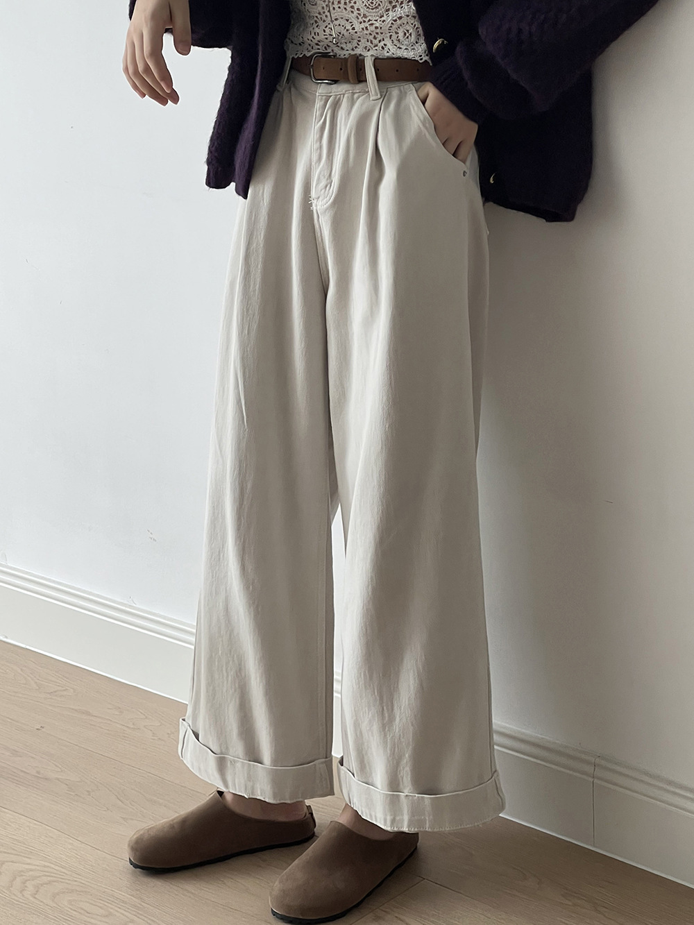 *o-ha-you*【FYS608126】韓風簡約高腰捲邊牛仔褲2024秋季新款寬鬆直筒闊腿褲-2色-如有需要請先諮詢