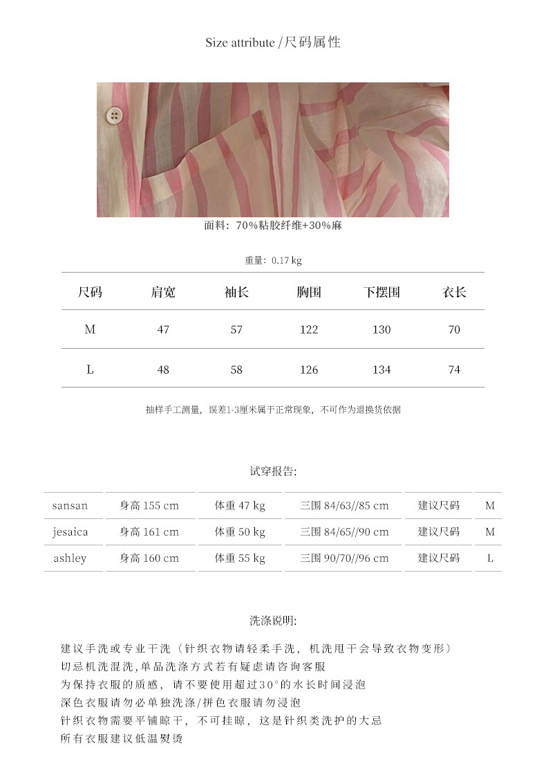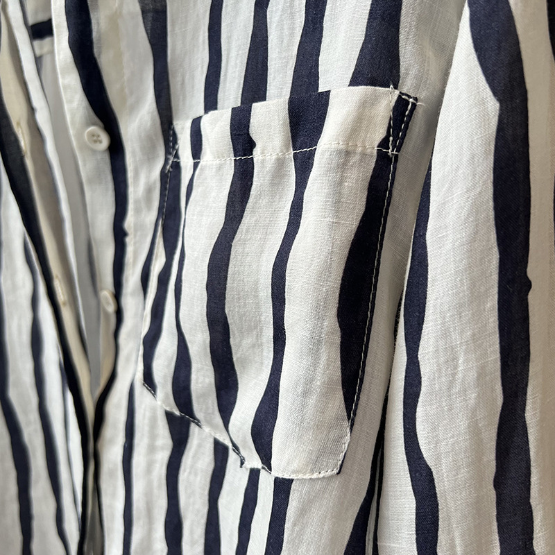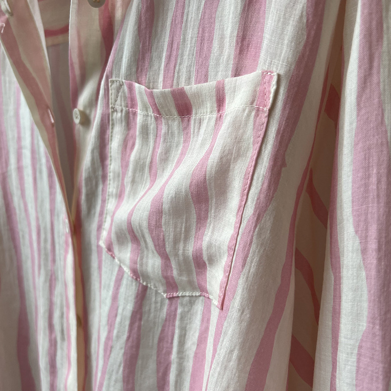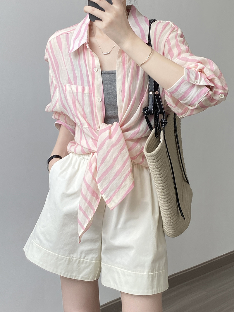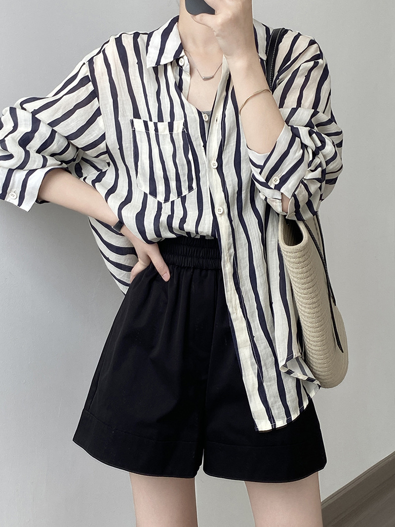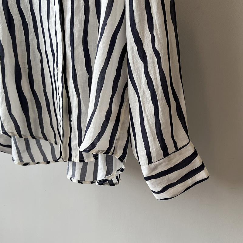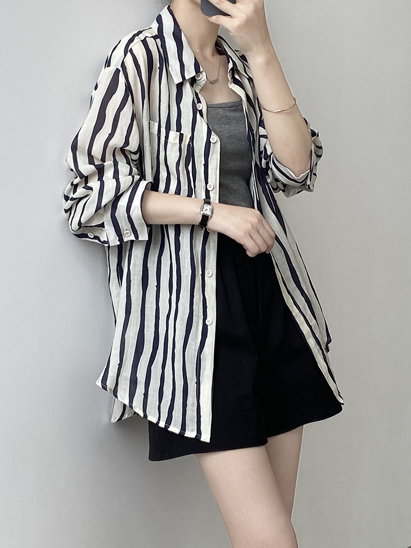 *o-ha-you*【FYS800823】麻料港味豎條紋長袖襯衫2024夏季新款輕薄襯衣防曬上衣-2色