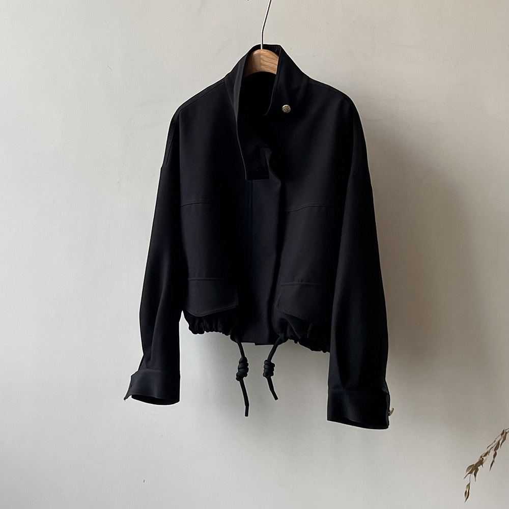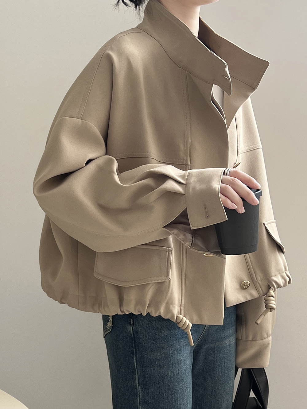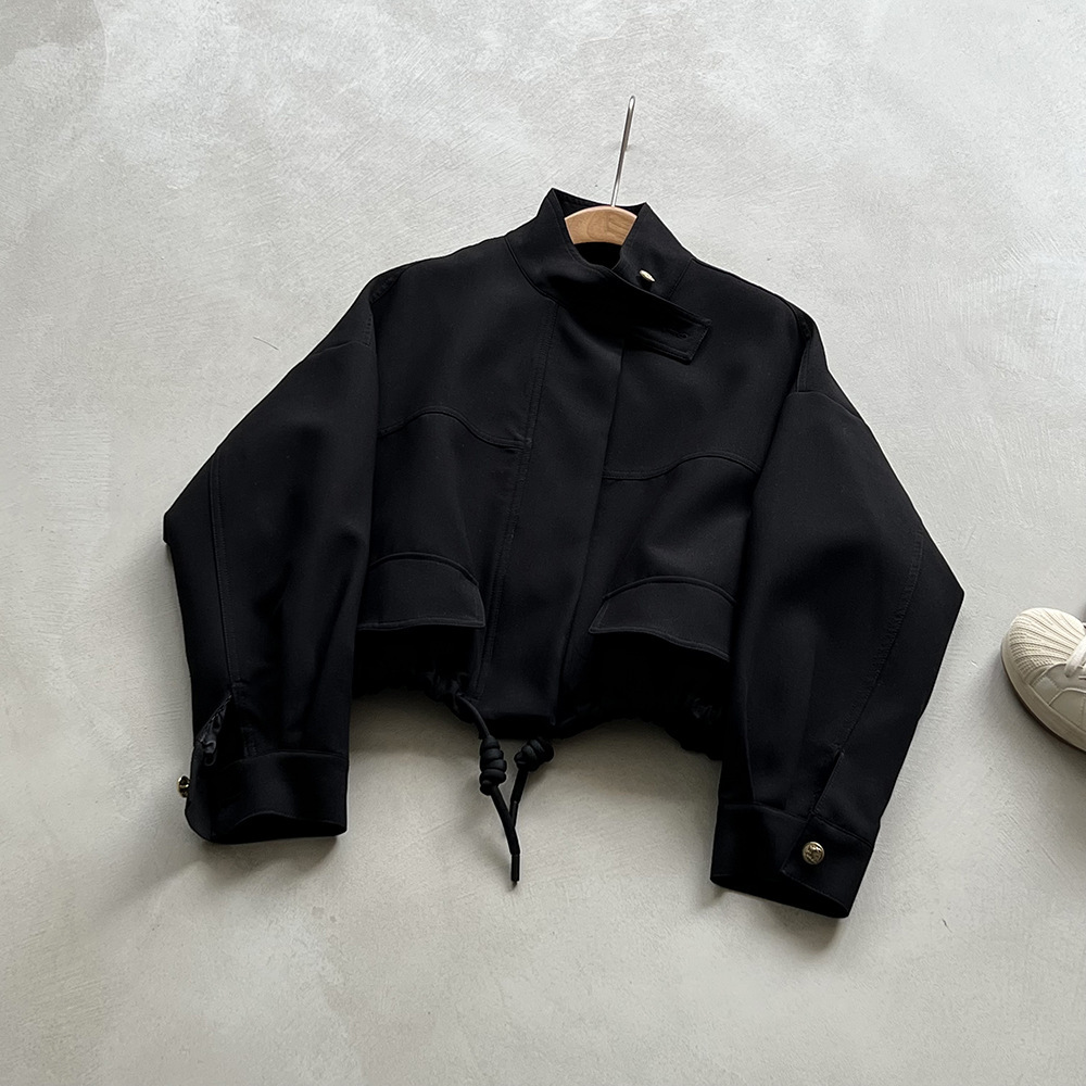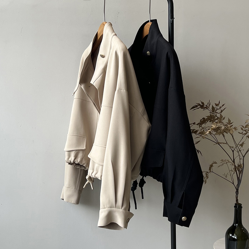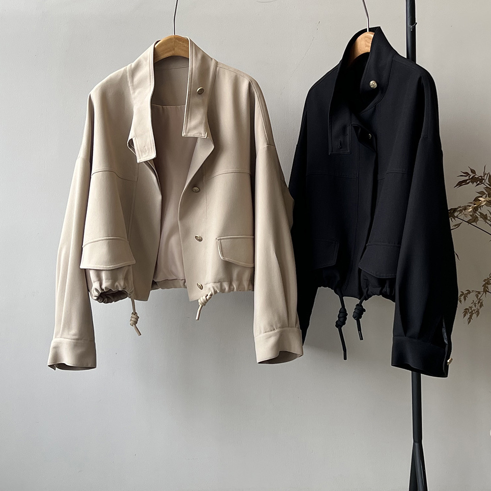 *o-ha-you*【FYS800858】韓版立領外套開襟衫2024春季新款寬鬆下擺抽繩短外套-2色