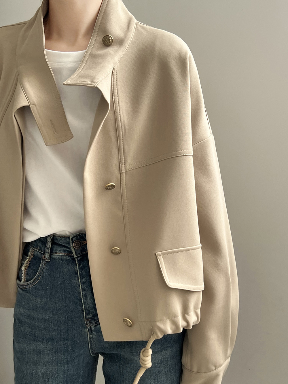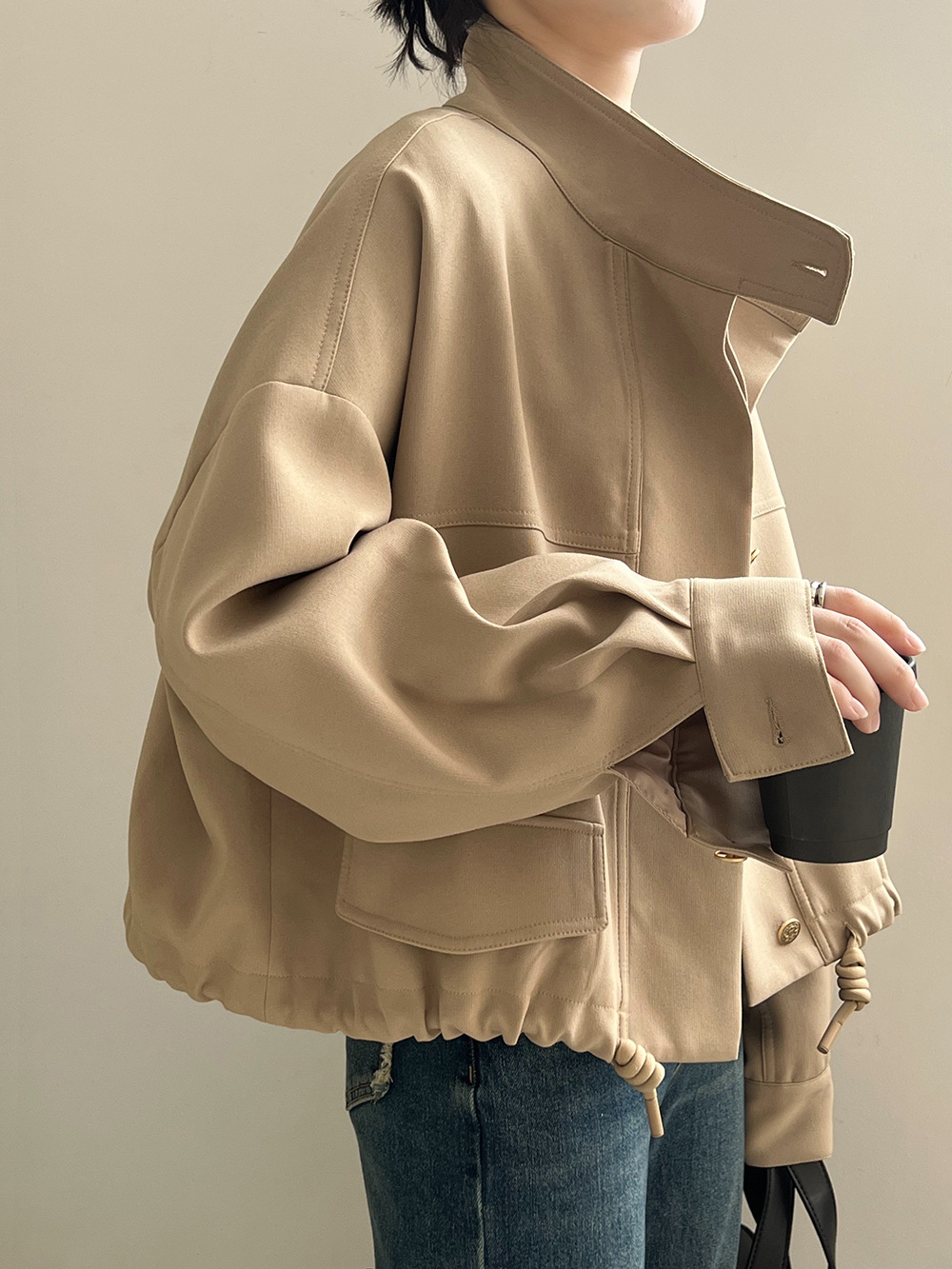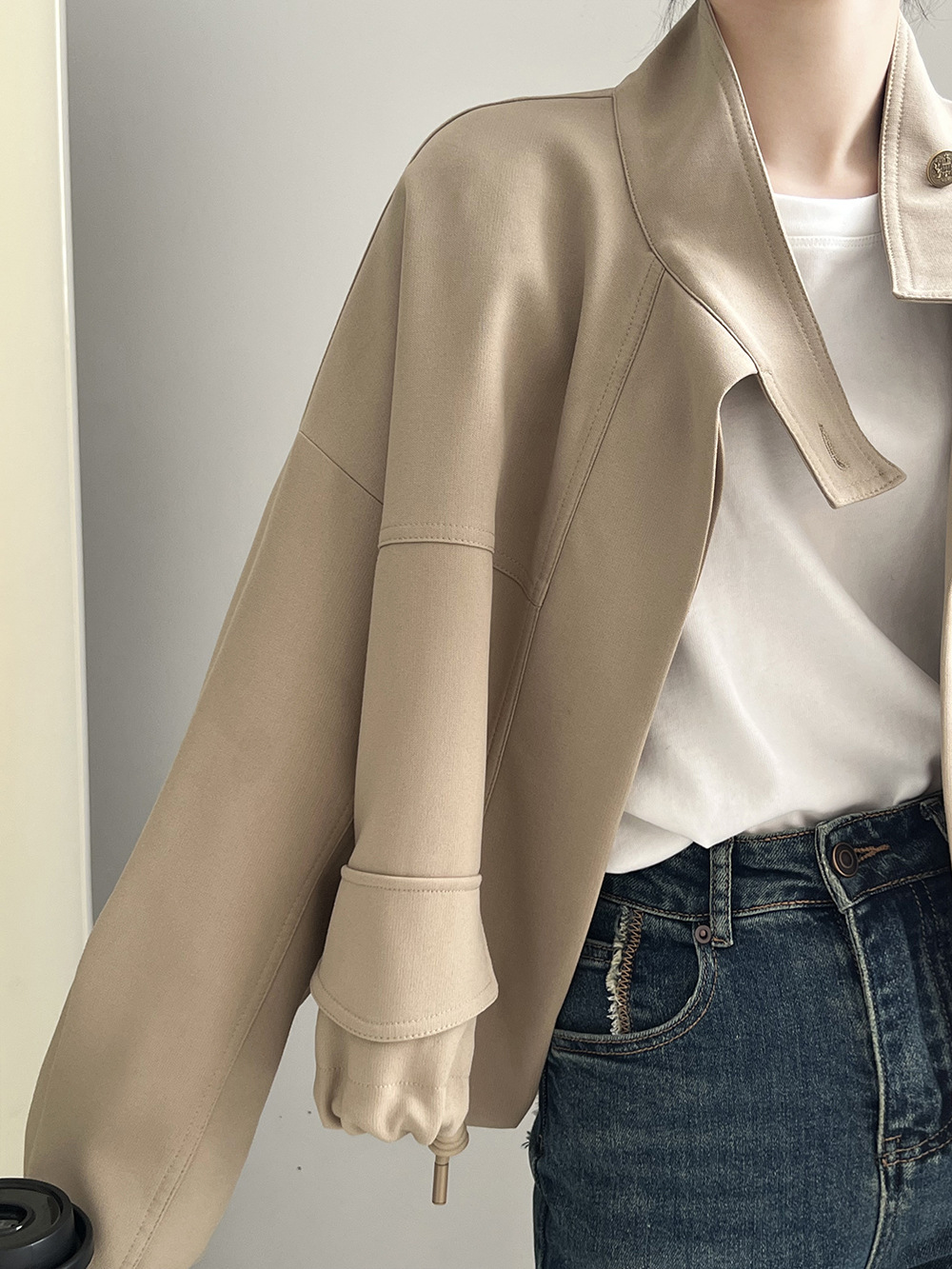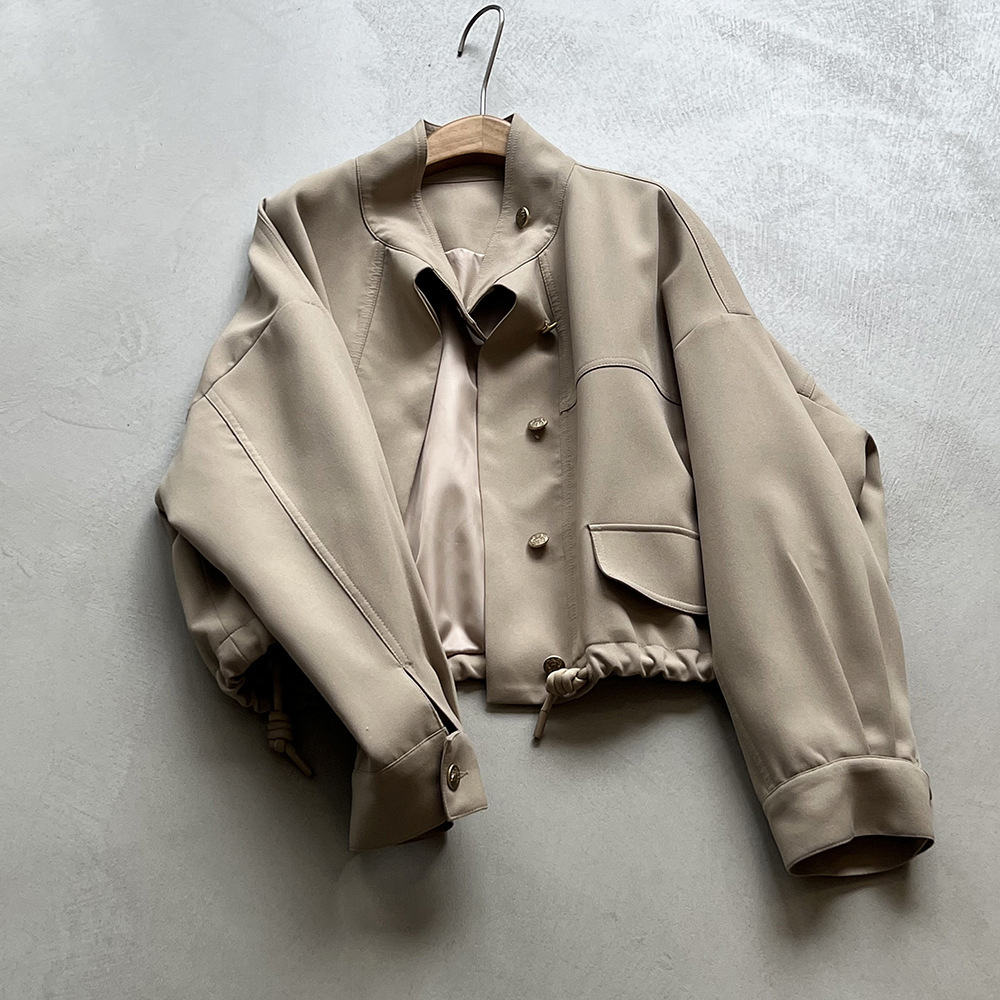 *o-ha-you*【FYS800858】韓版立領外套開襟衫2024春季新款寬鬆下擺抽繩短外套-2色