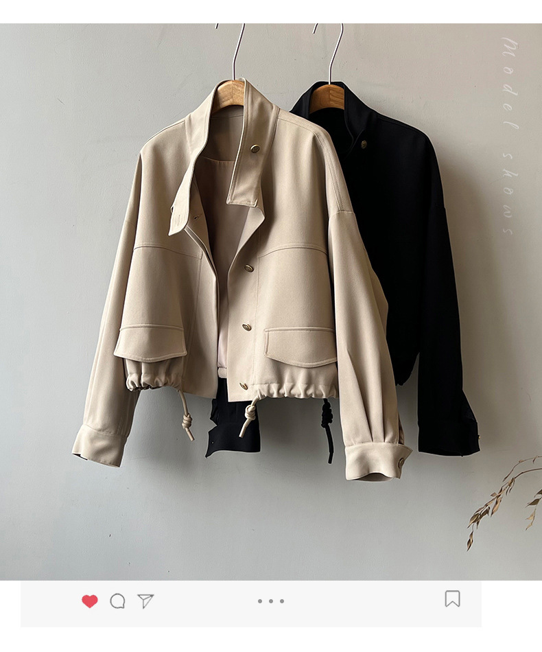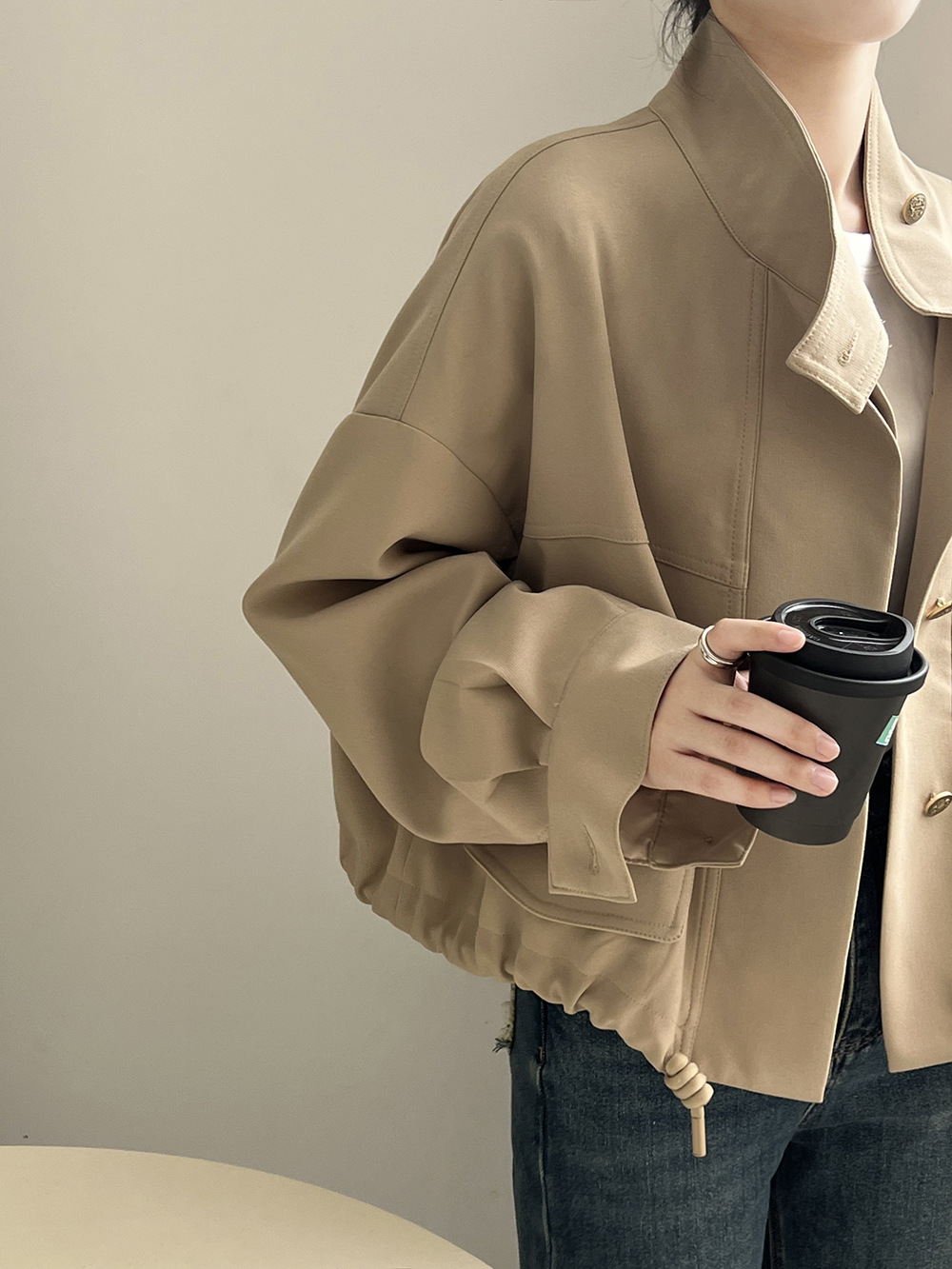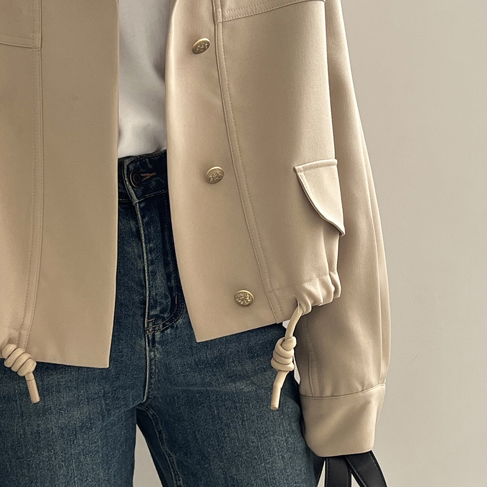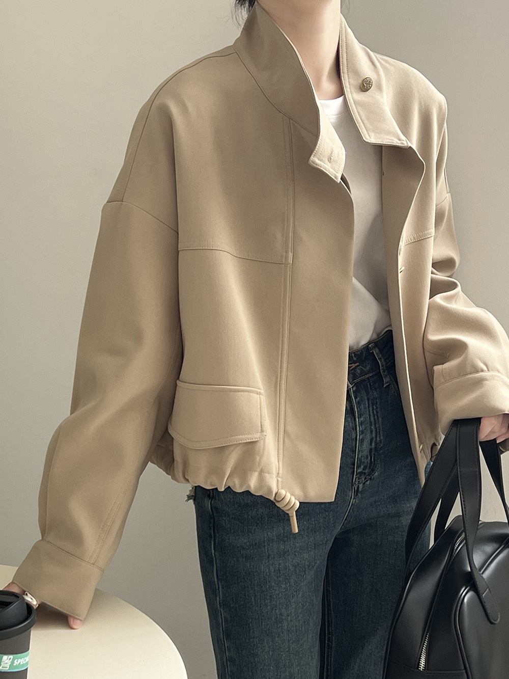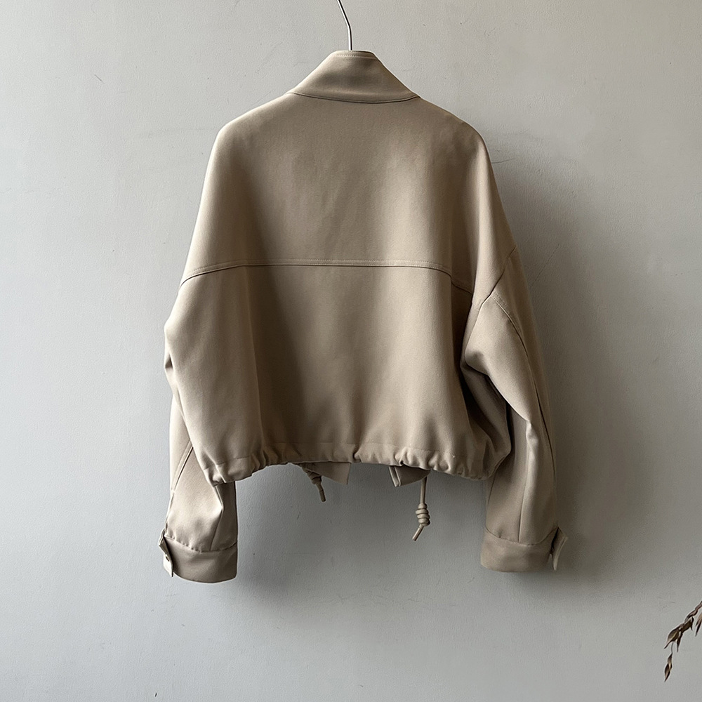 *o-ha-you*【FYS800858】韓版立領外套開襟衫2024春季新款寬鬆下擺抽繩短外套-2色