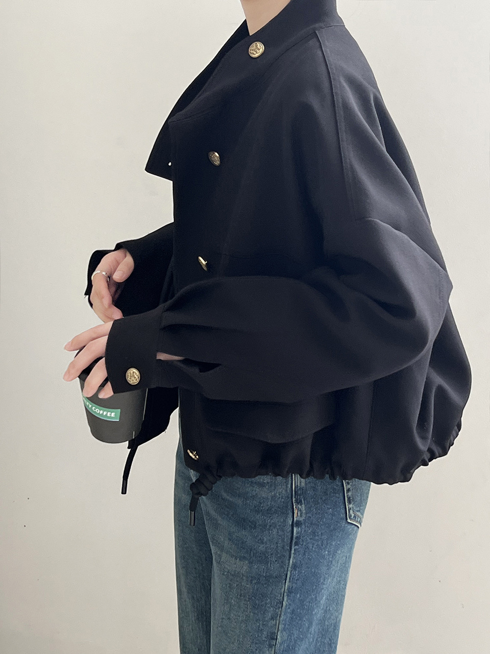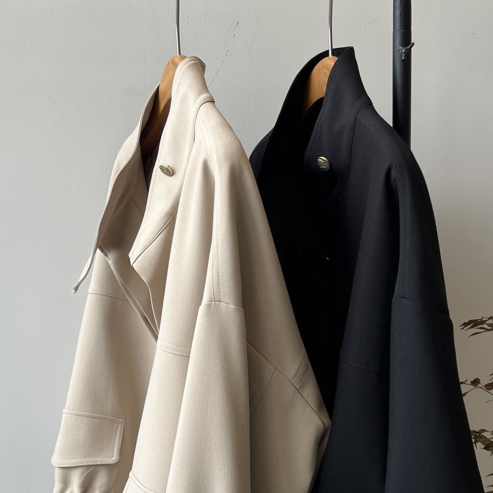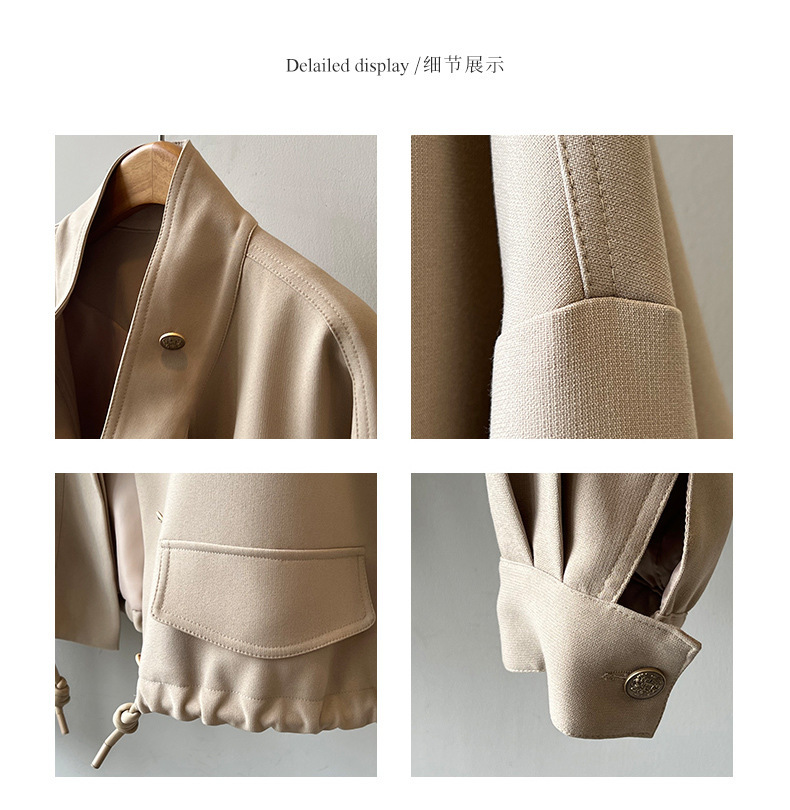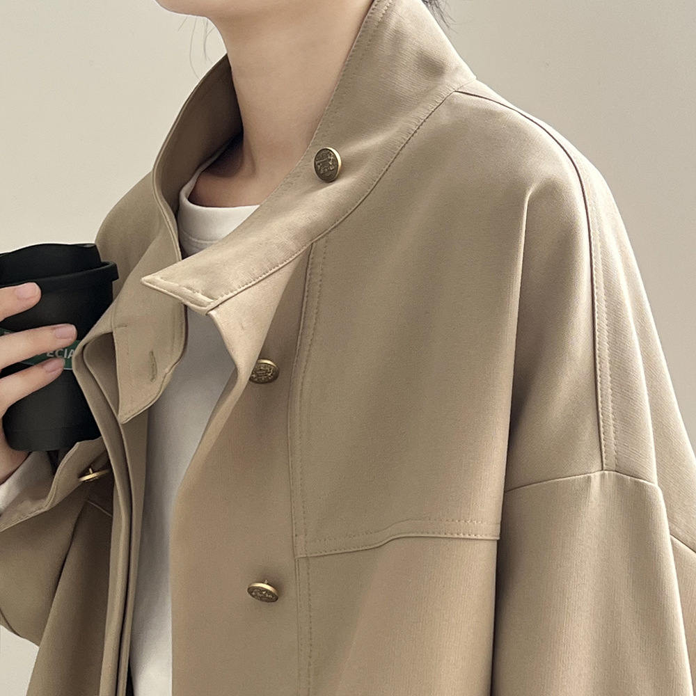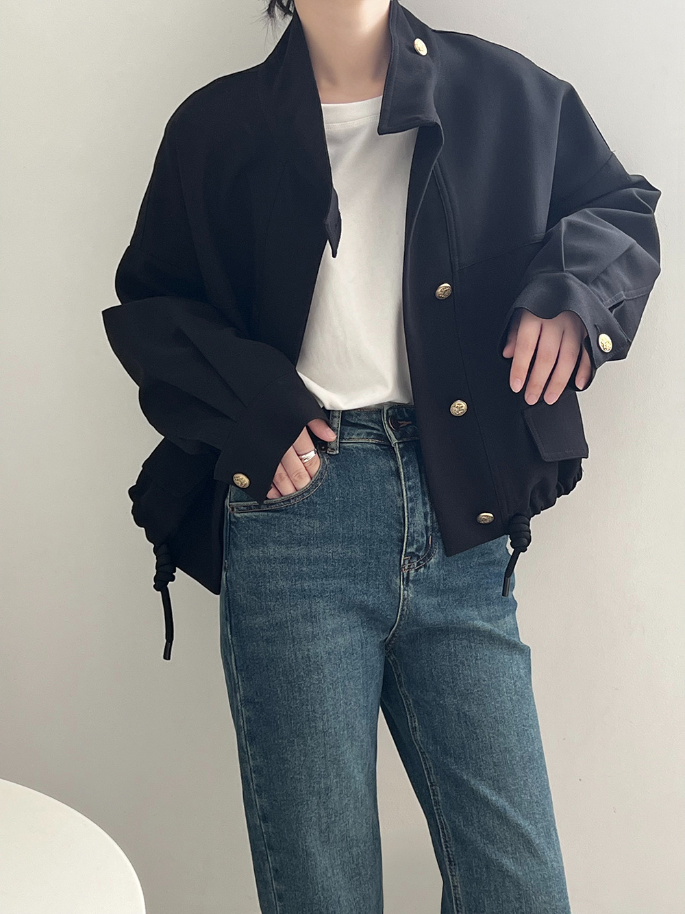 *o-ha-you*【FYS800858】韓版立領外套開襟衫2024春季新款寬鬆下擺抽繩短外套-2色