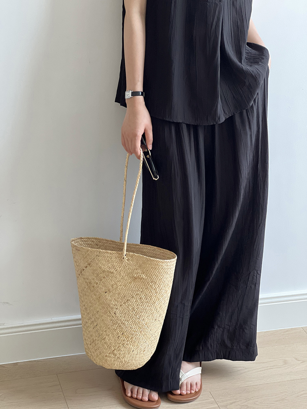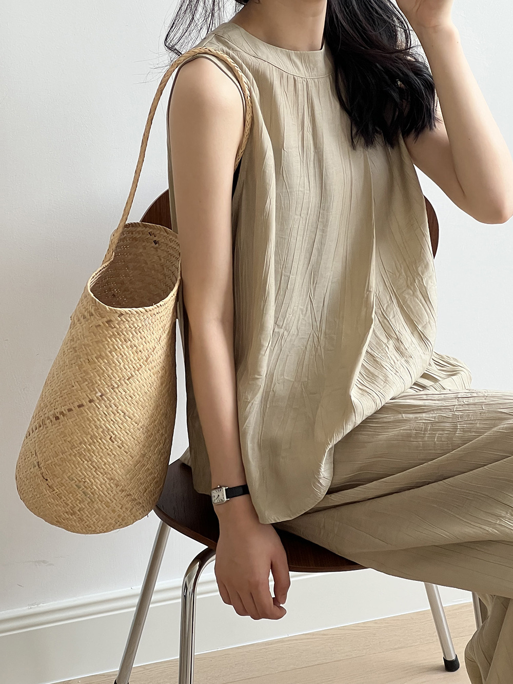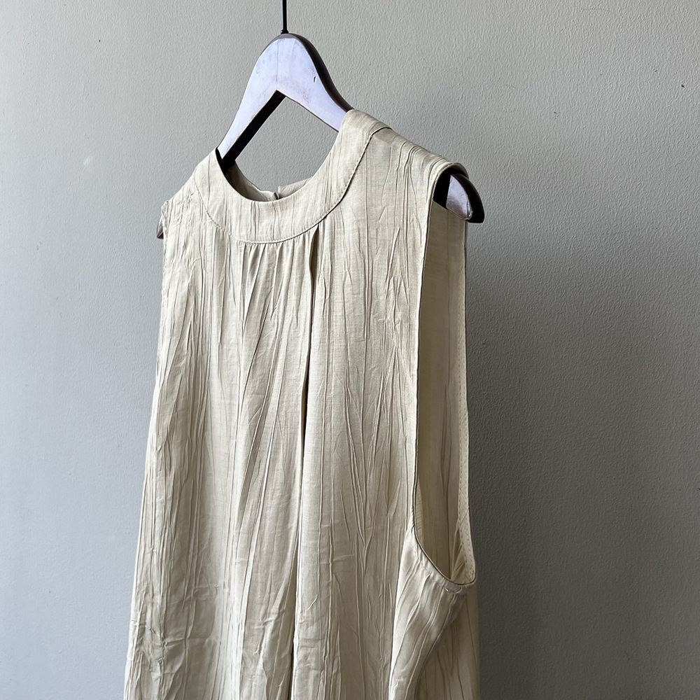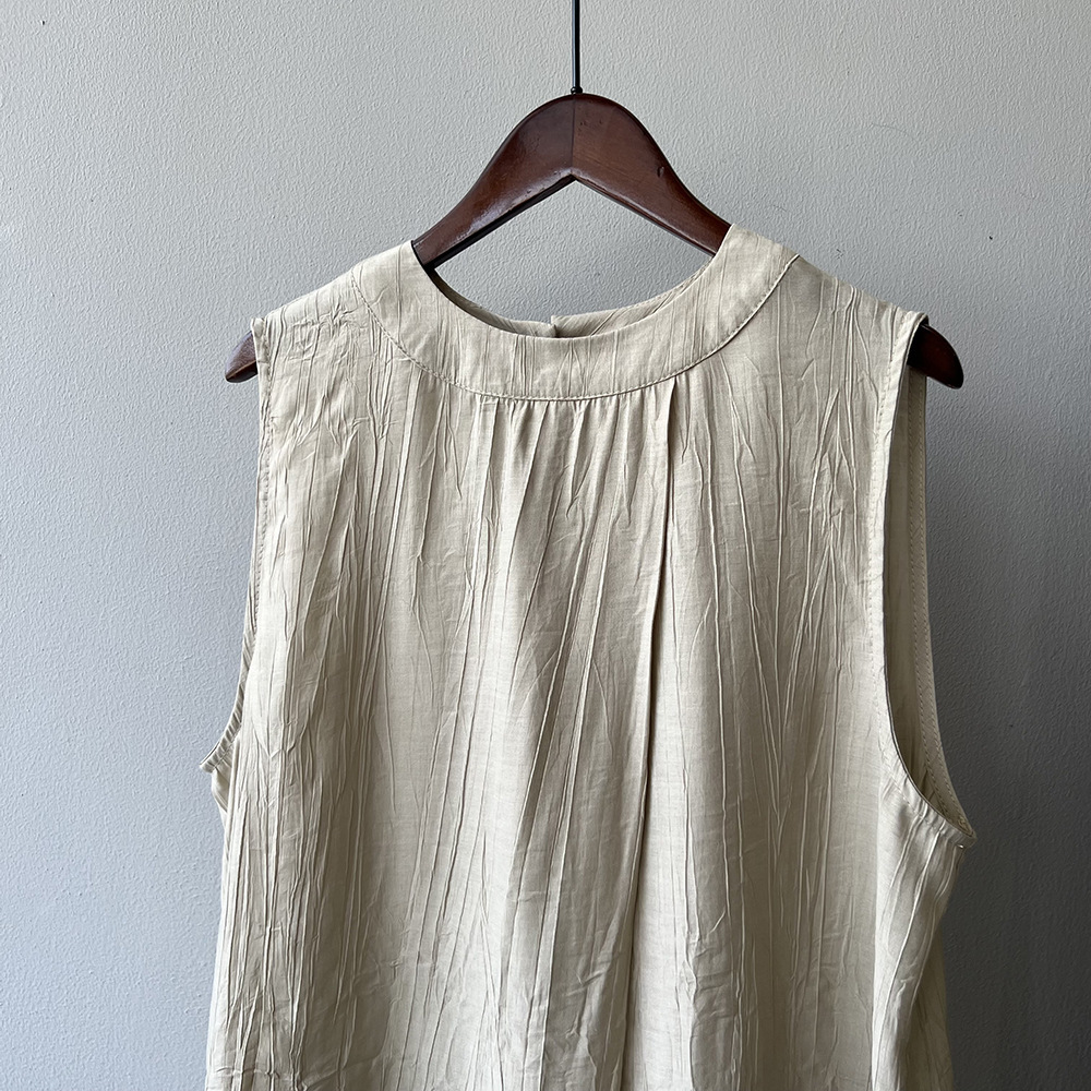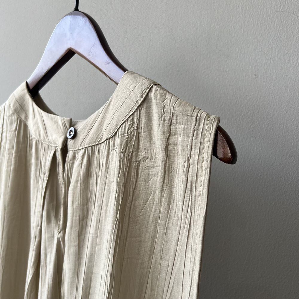 *o-ha-you*【FYS802059】氣質薄款無袖背心套裝2024夏季褶皺襯衫闊腿褲兩件套-2色