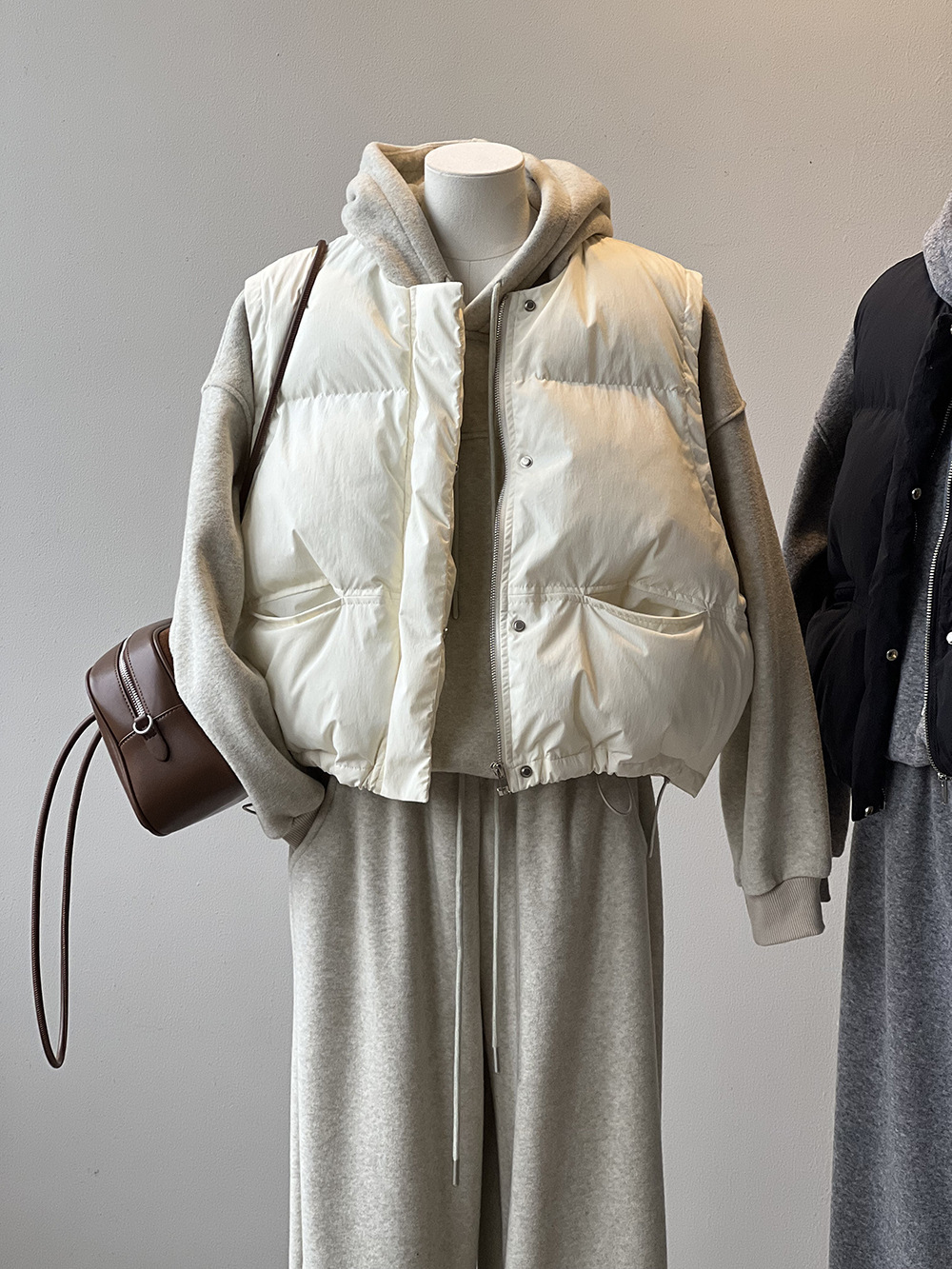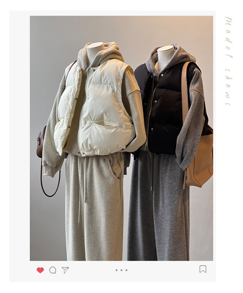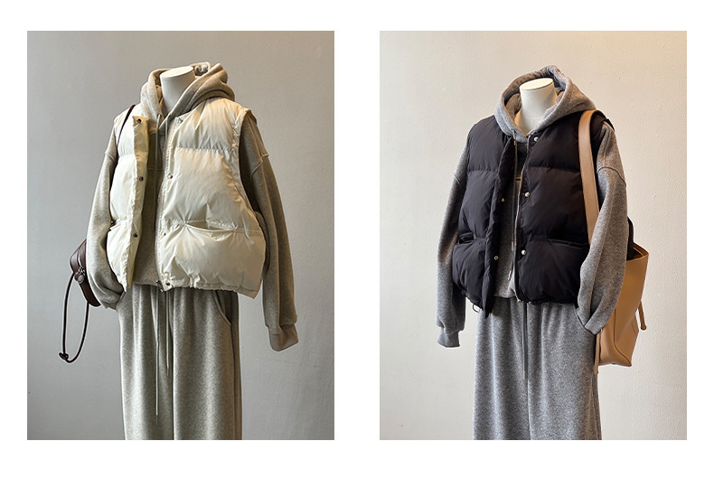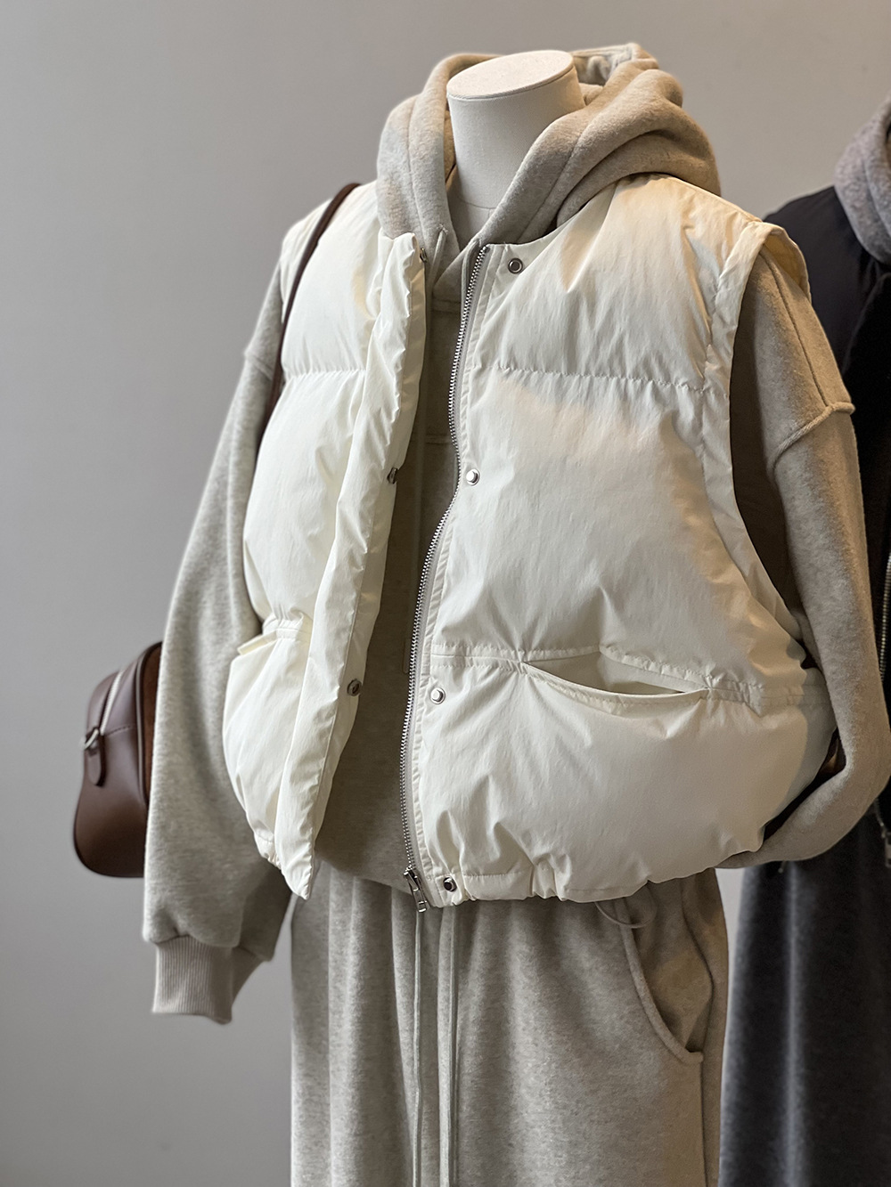 *o-ha-you*【FYS802157】圓領短版棉馬甲2024秋冬寬鬆外搭時尚坎肩背心棉服外套-2色-如有需要請先諮詢