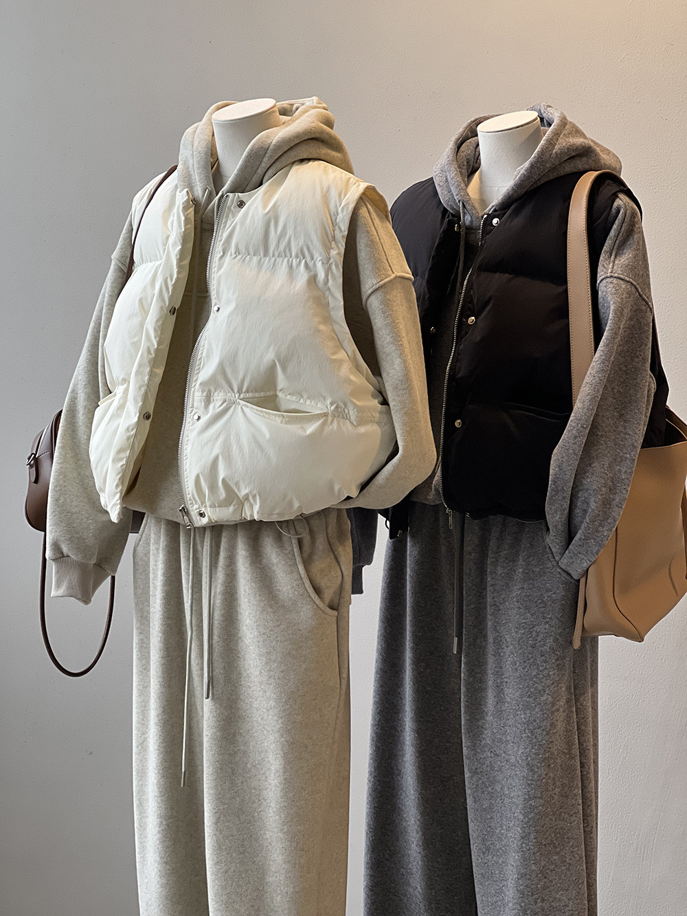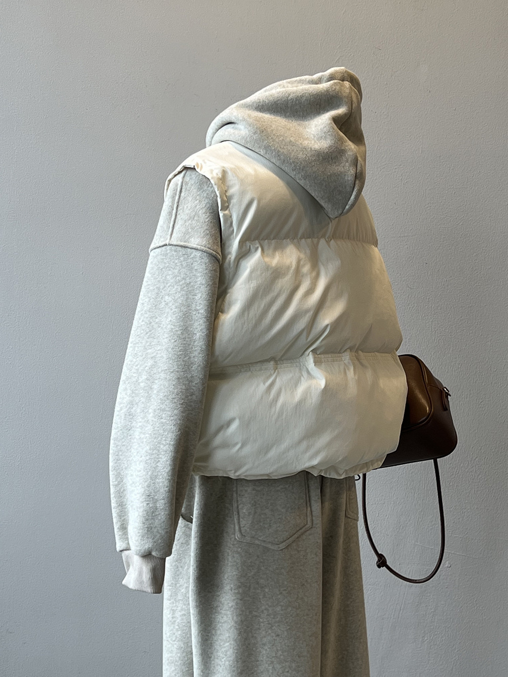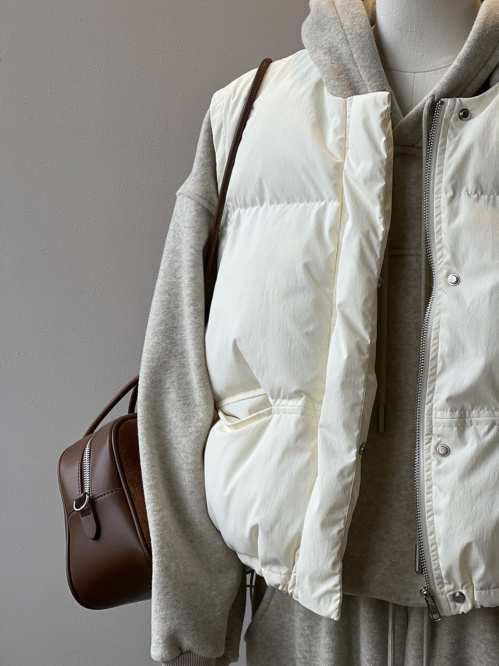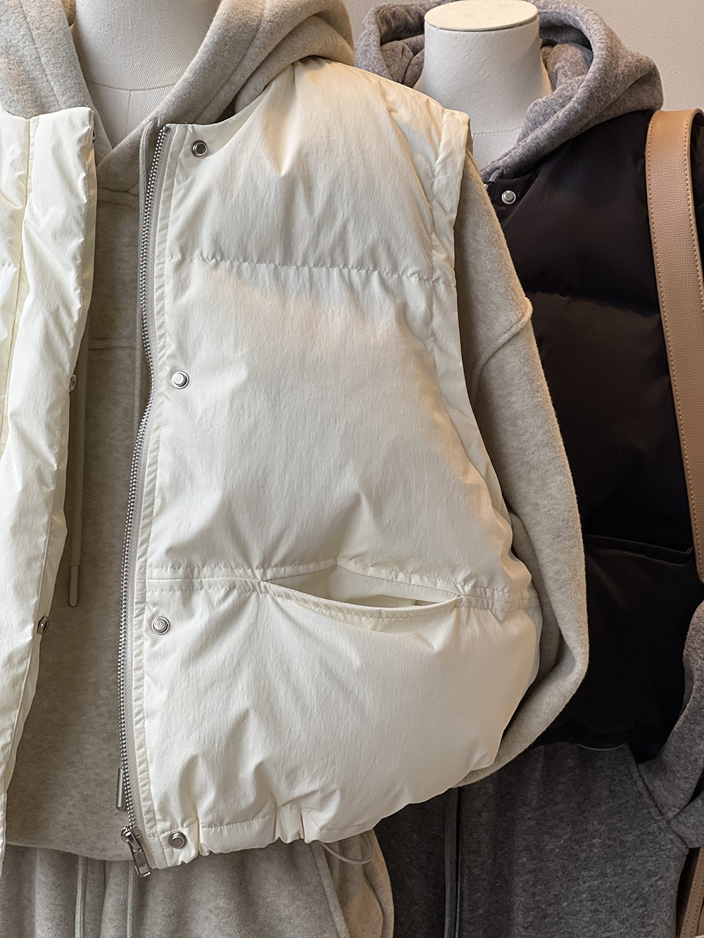 *o-ha-you*【FYS802157】圓領短版棉馬甲2024秋冬寬鬆外搭時尚坎肩背心棉服外套-2色-如有需要請先諮詢