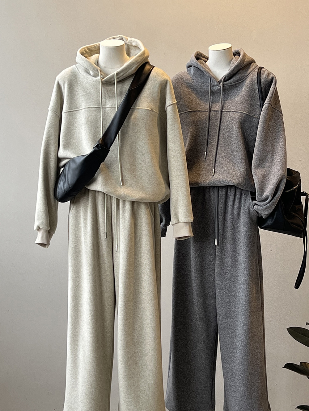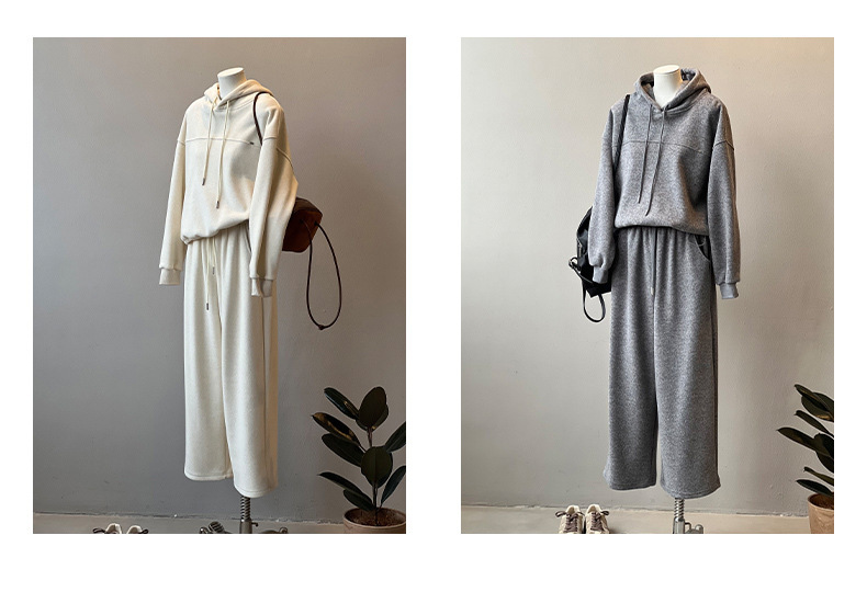 *o-ha-you*【FYS802178】休閒加絨衛衣套裝2024秋冬連帽長袖衛衣闊腿褲兩件套-3色-如有需要請先諮詢