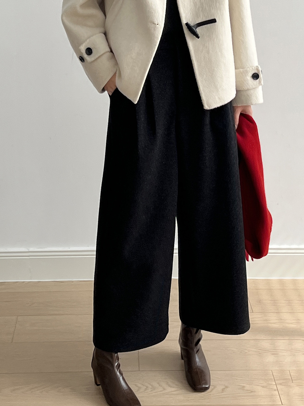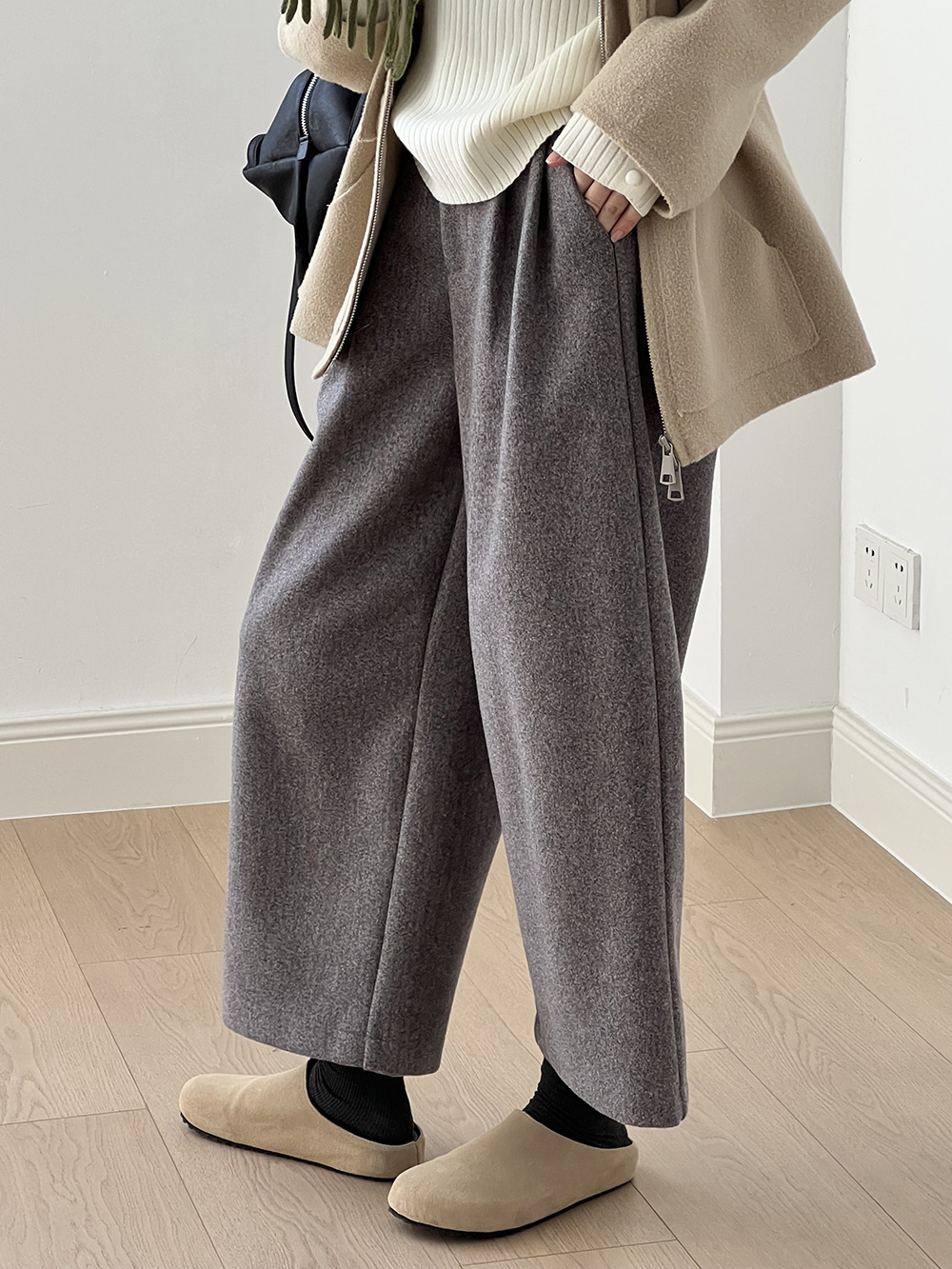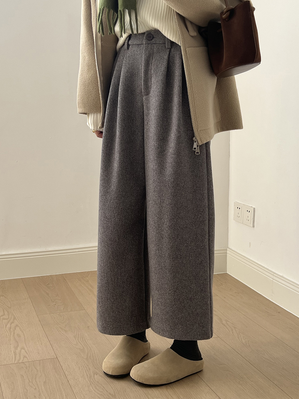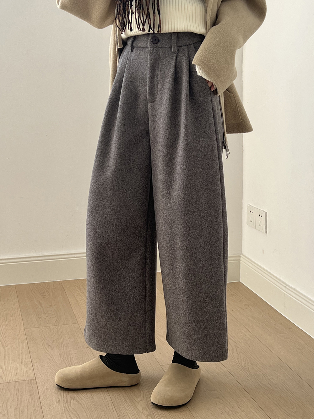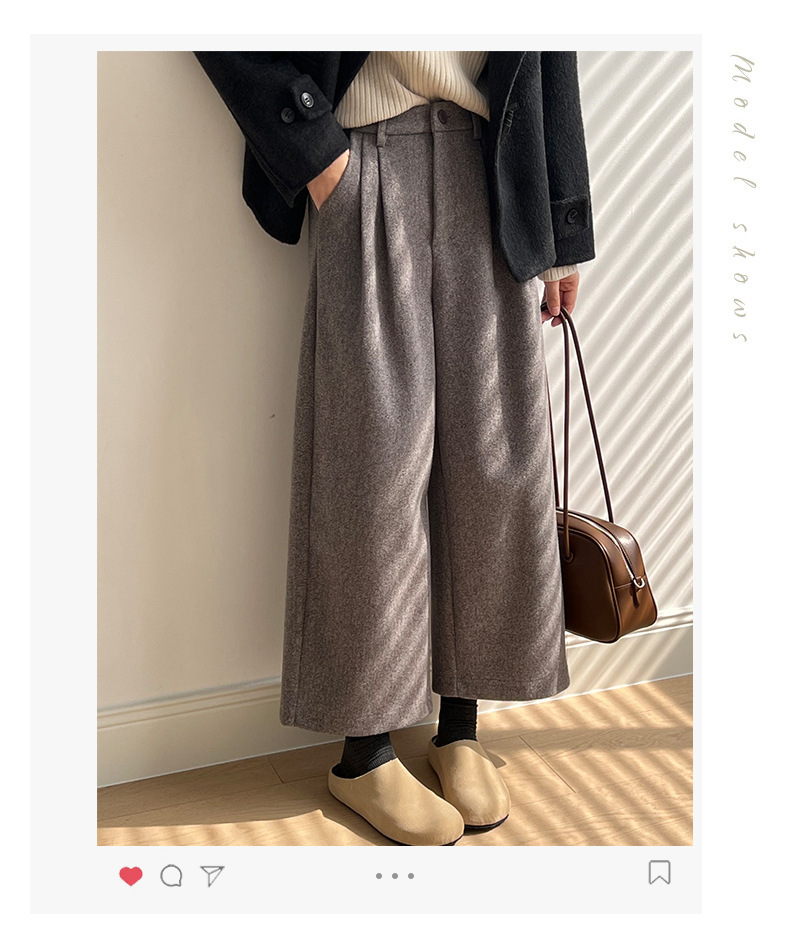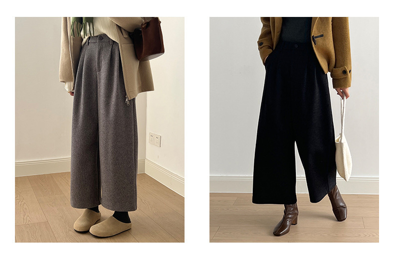 *o-ha-you*【FYS802181】高腰毛呢闊腿褲2024秋冬韓系百搭寬鬆直筒長褲九分褲-2色-如有需要請先諮詢