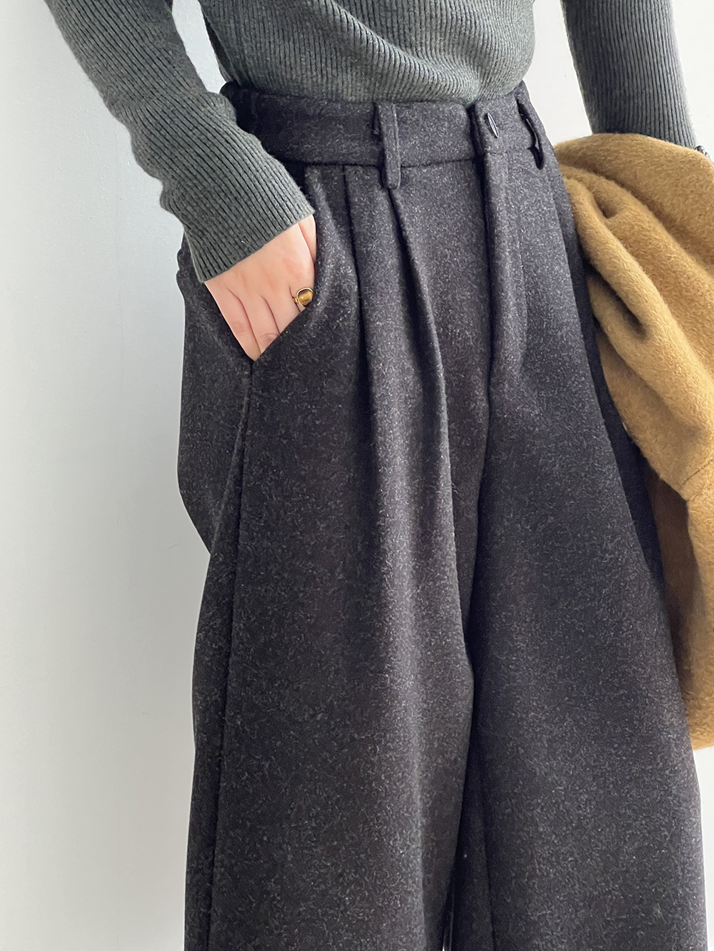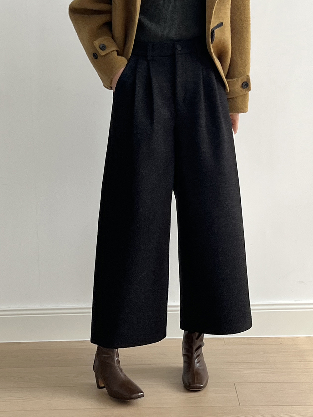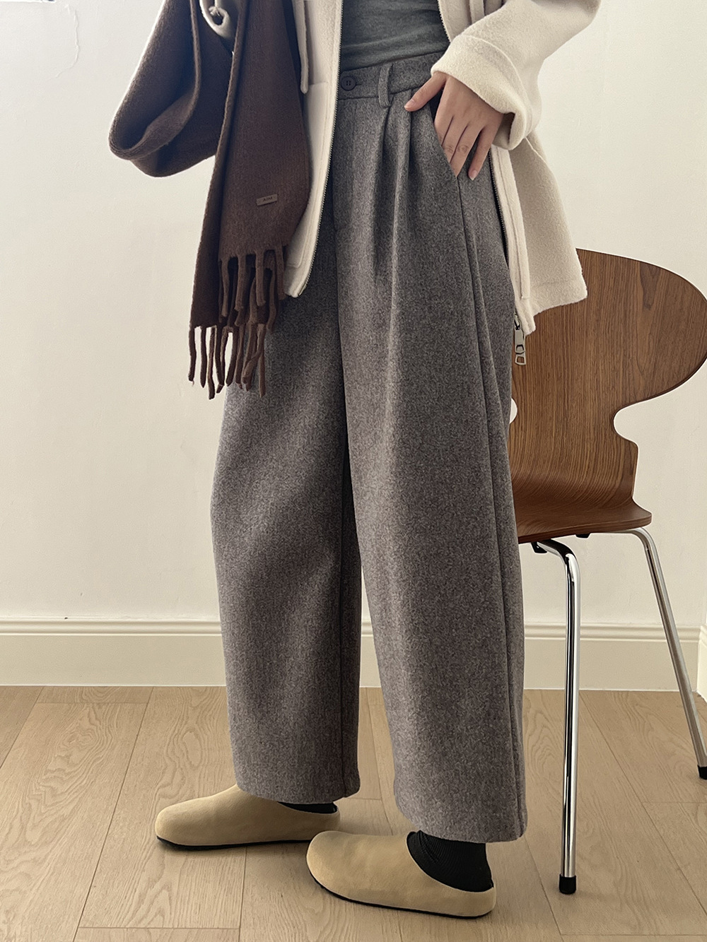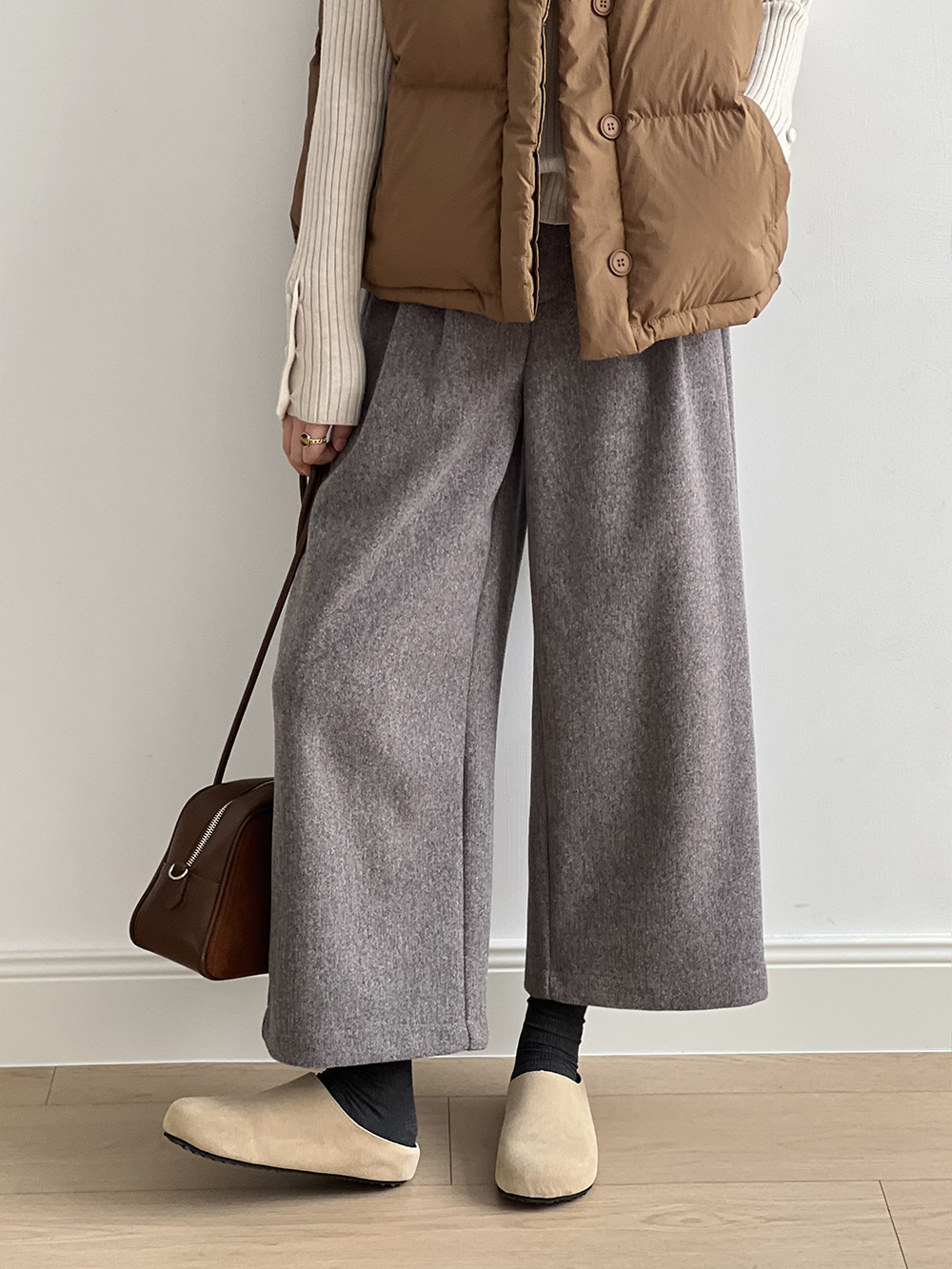 *o-ha-you*【FYS802181】高腰毛呢闊腿褲2024秋冬韓系百搭寬鬆直筒長褲九分褲-2色-如有需要請先諮詢