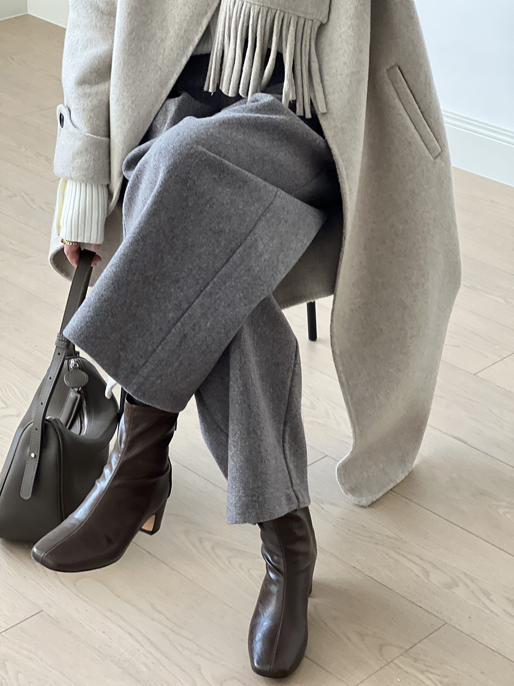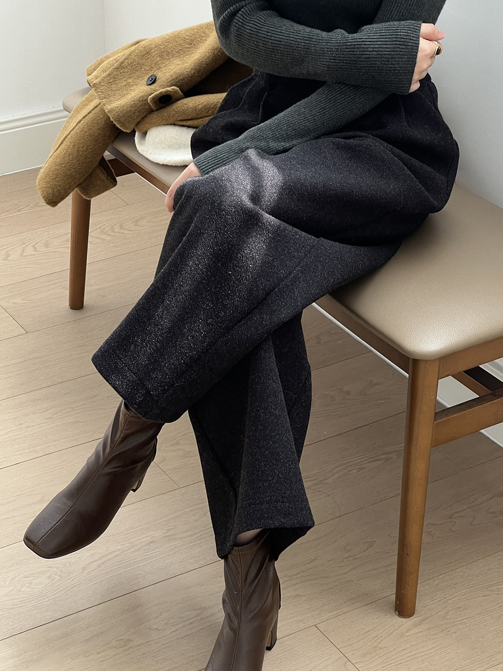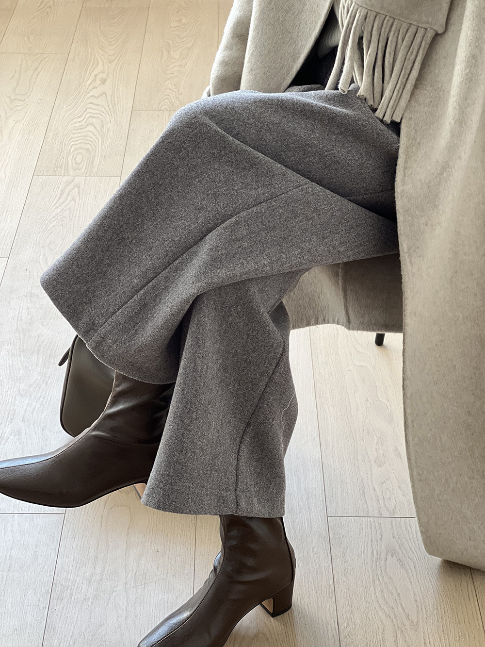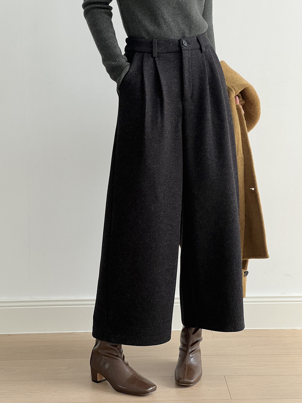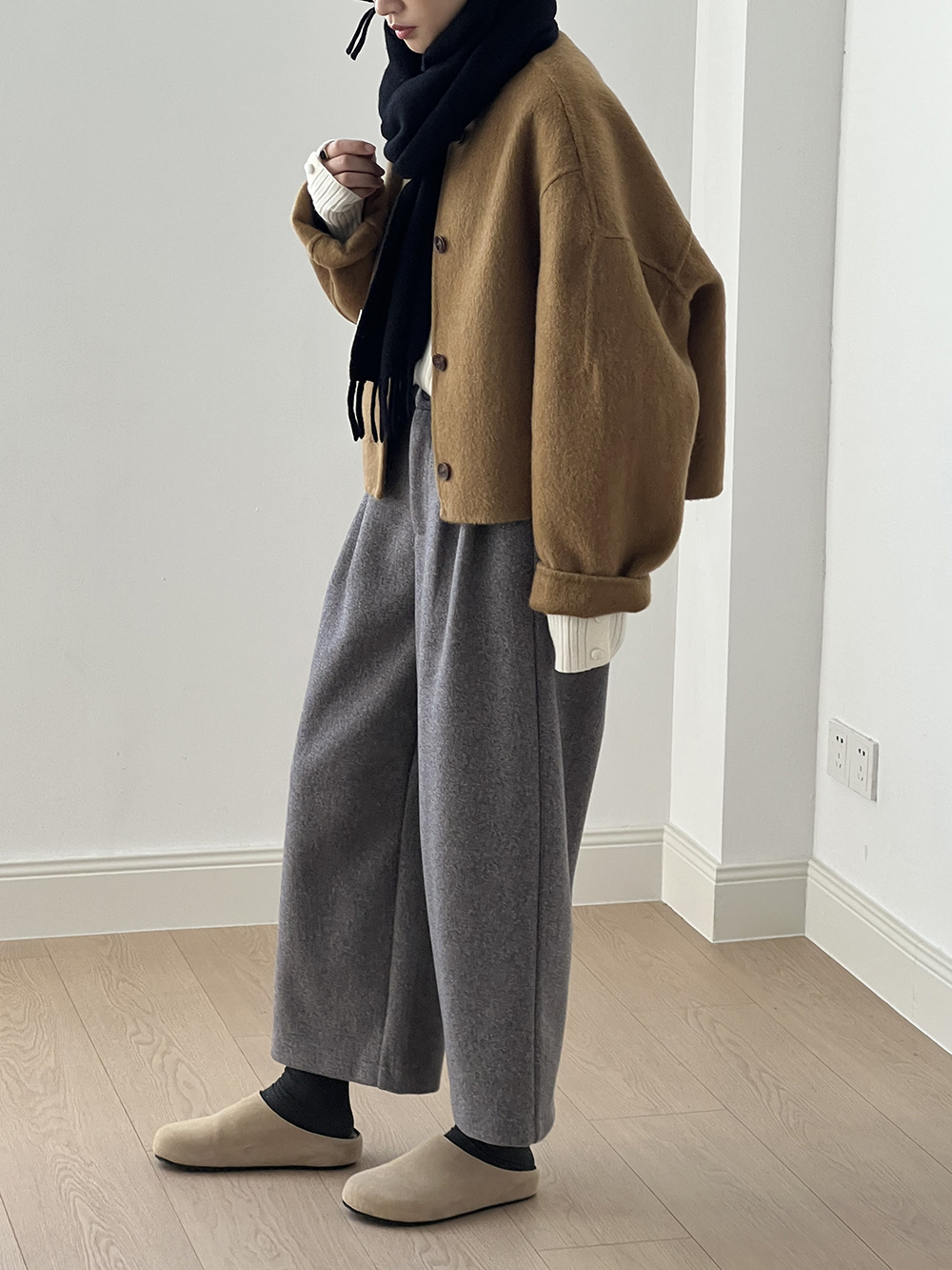*o-ha-you*【FYS802181】高腰毛呢闊腿褲2024秋冬韓系百搭寬鬆直筒長褲九分褲-2色-如有需要請先諮詢