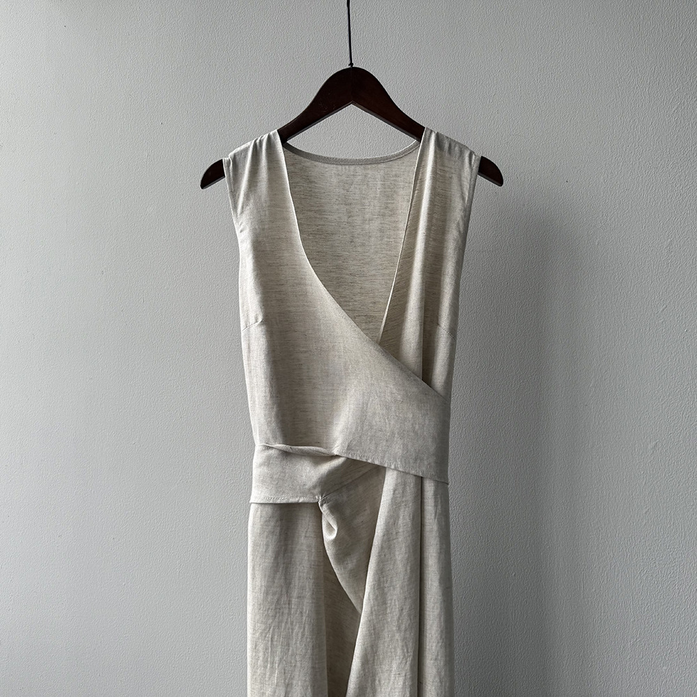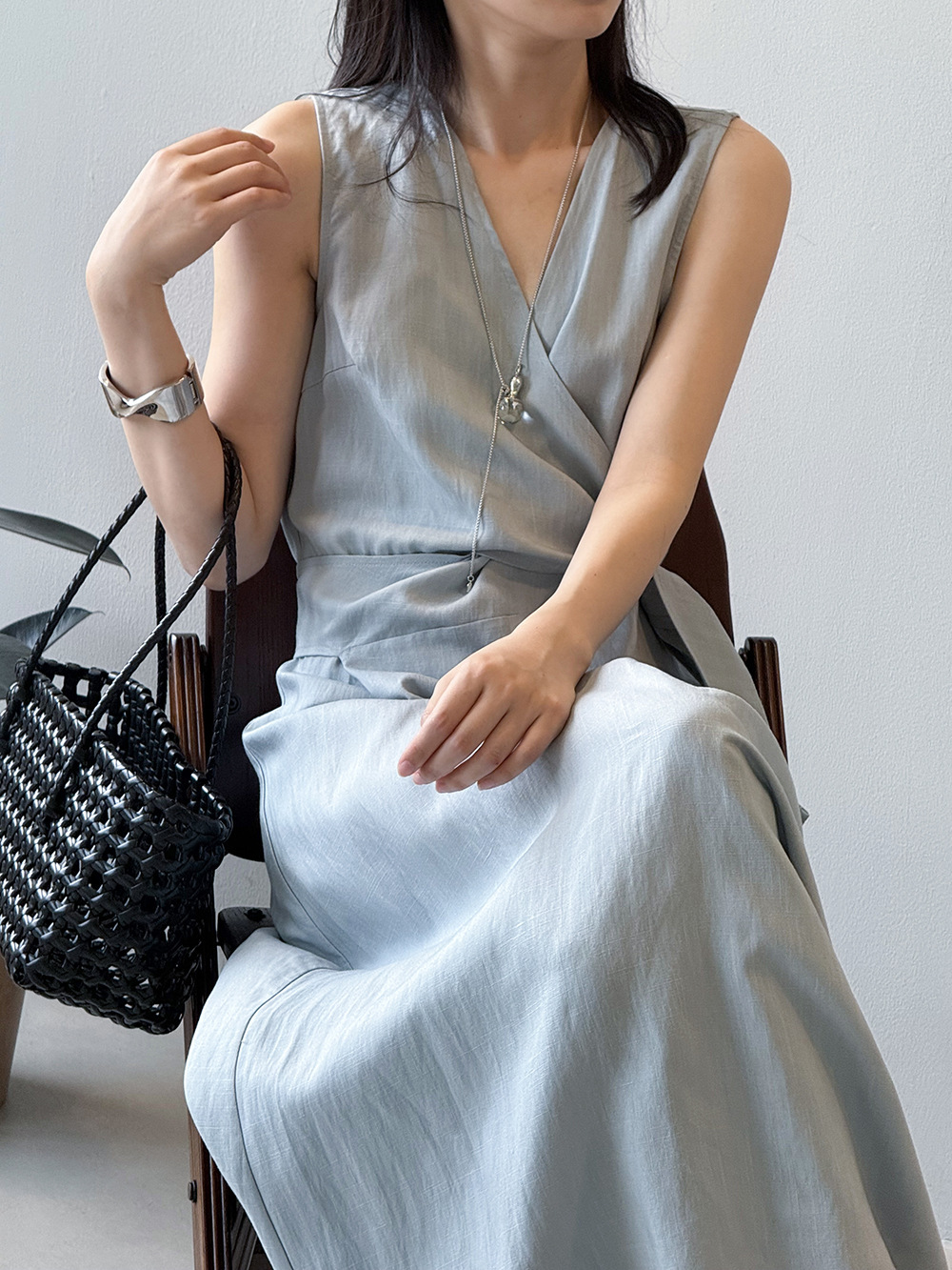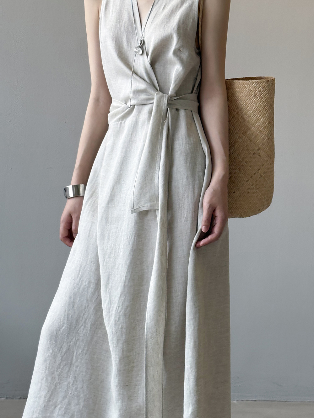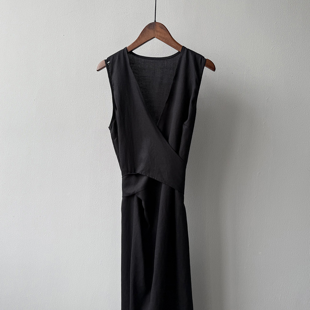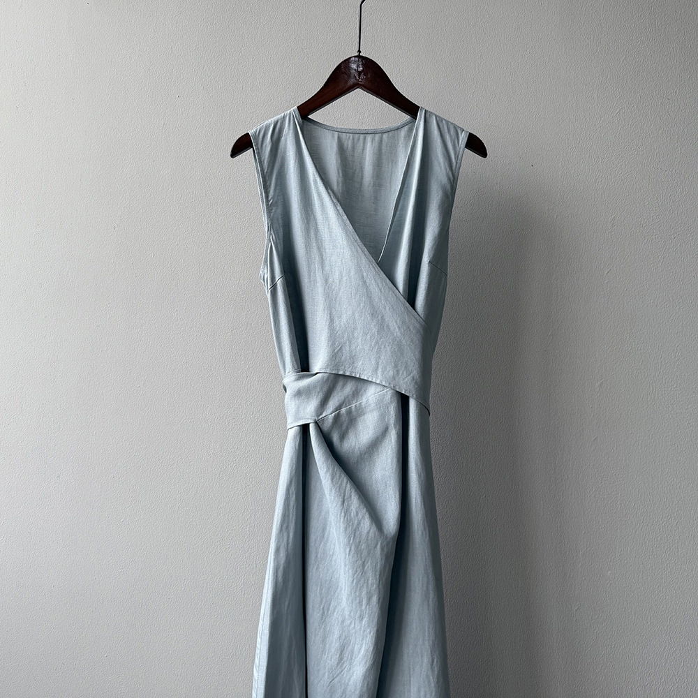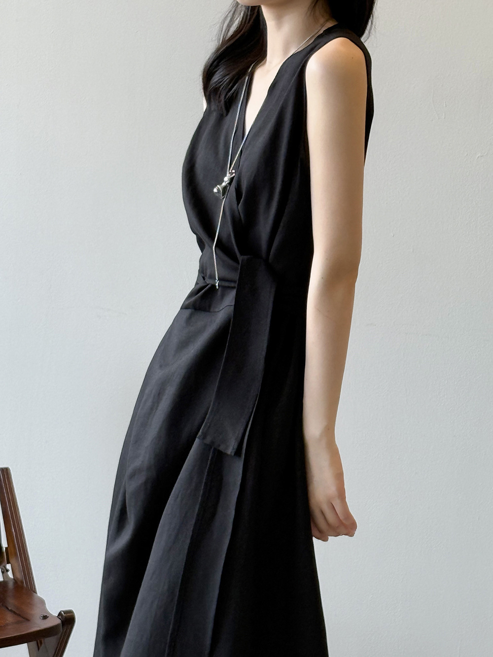 *o-ha-you*【FYS802313】法式天絲亞麻無袖背心V領連衣裙夏季韓版時尚百搭裙子洋裝-3色-麻本色M有現貨