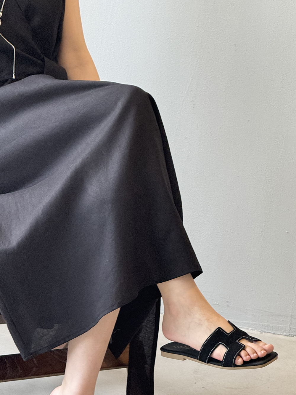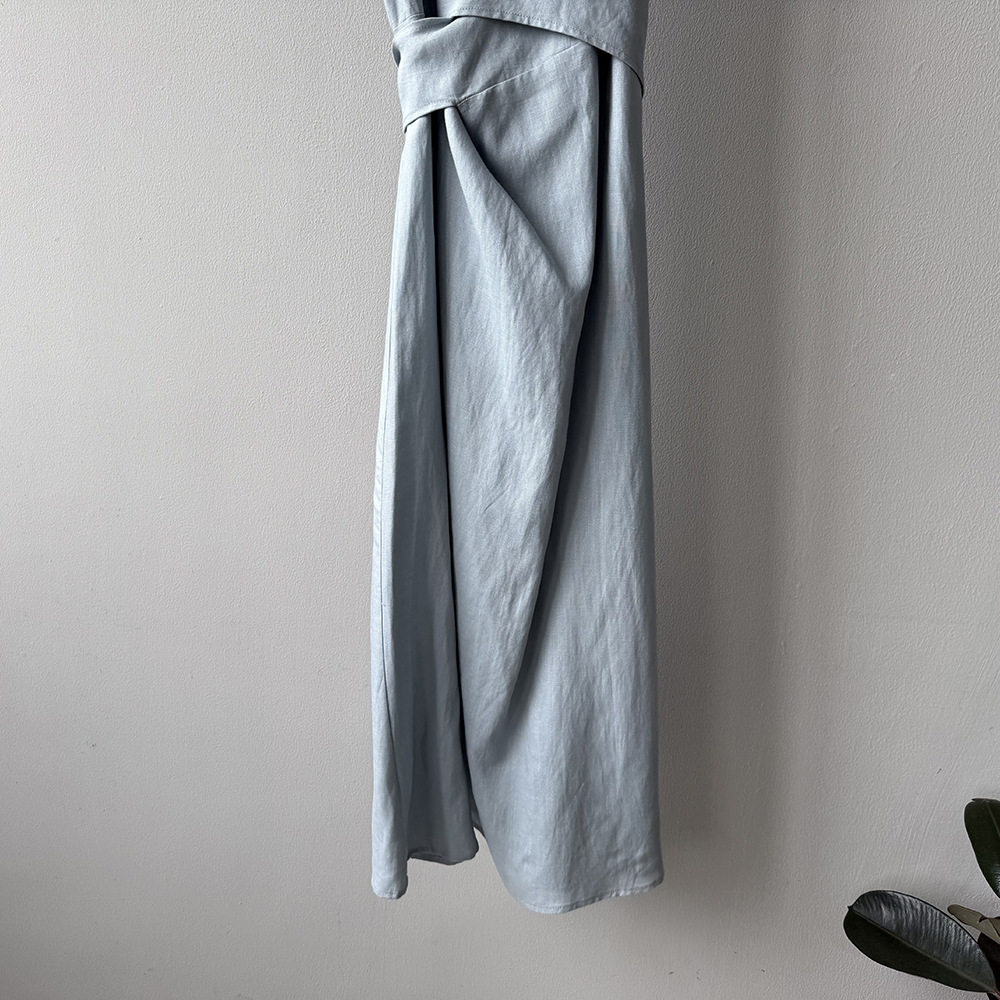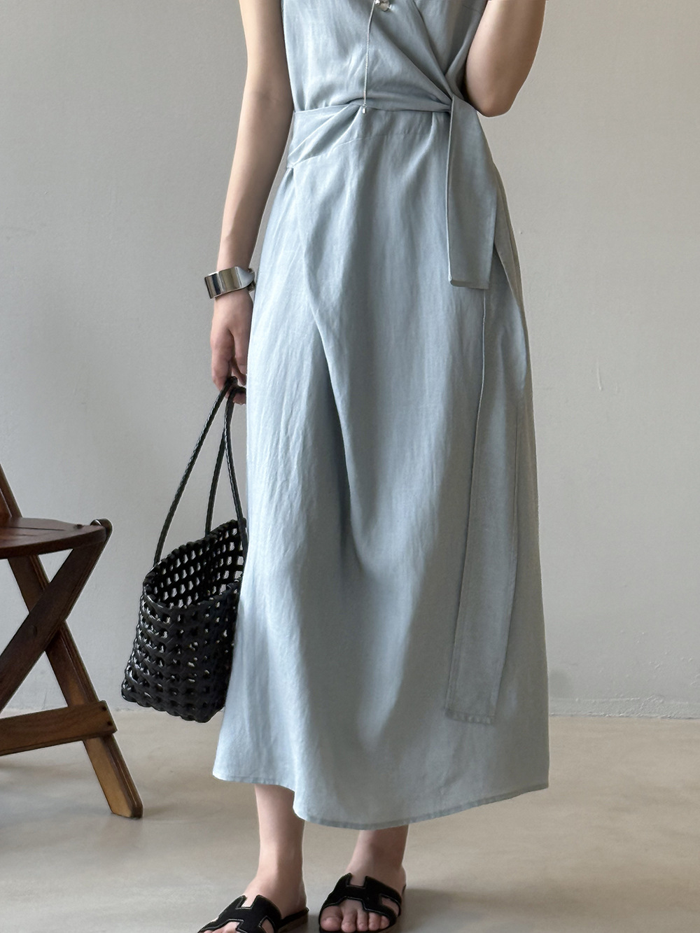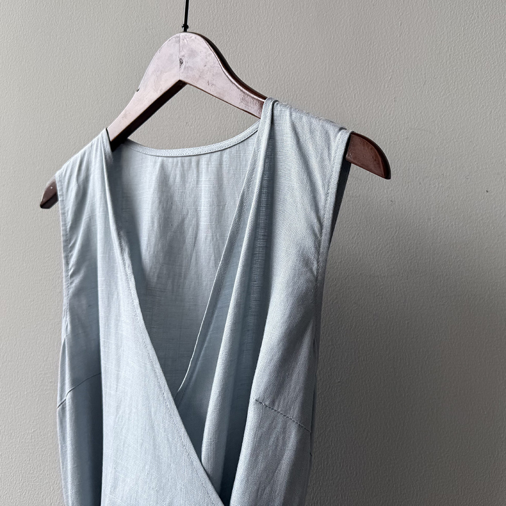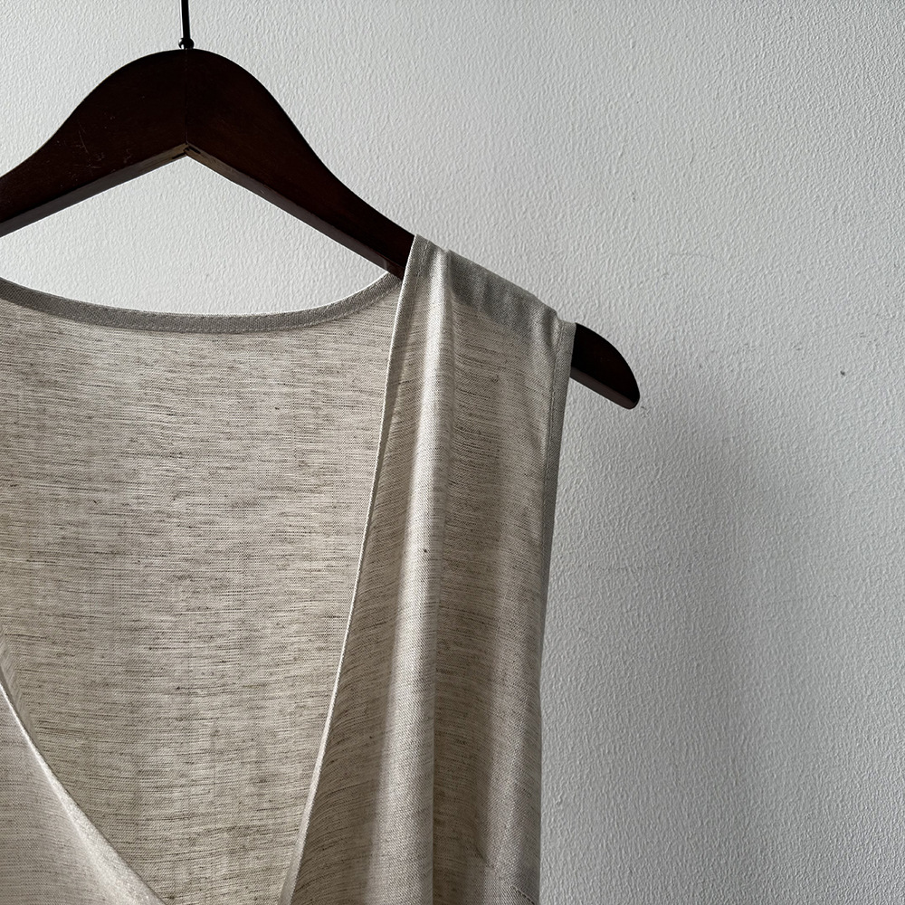 *o-ha-you*【FYS802313】法式天絲亞麻無袖背心V領連衣裙夏季韓版時尚百搭裙子洋裝-3色-麻本色M有現貨