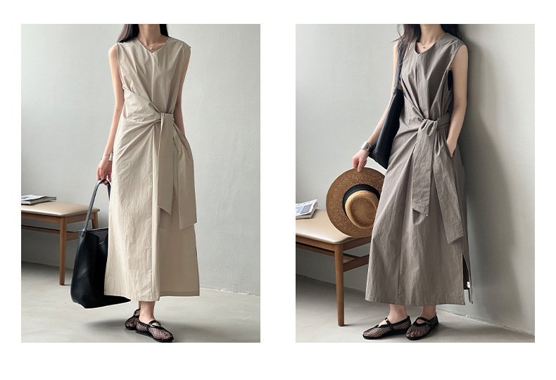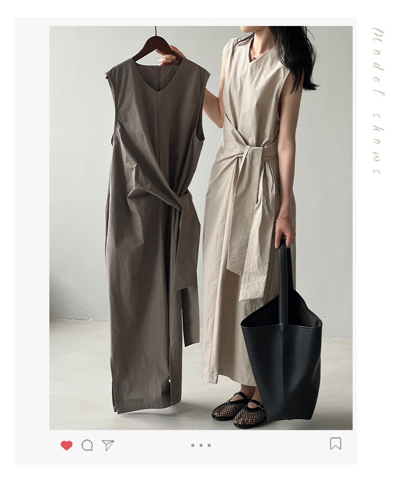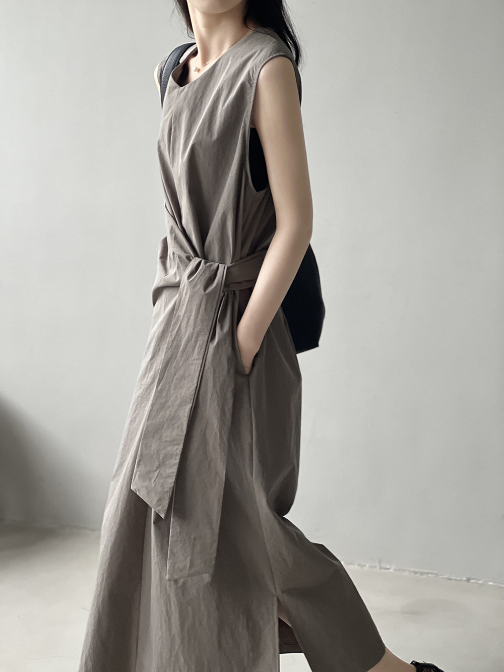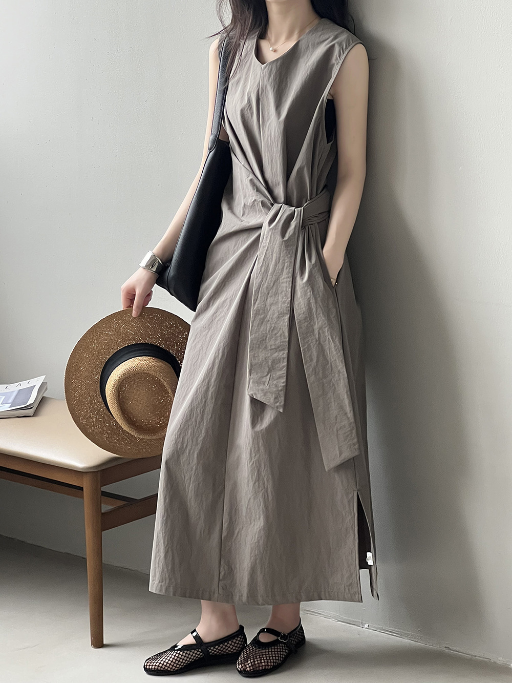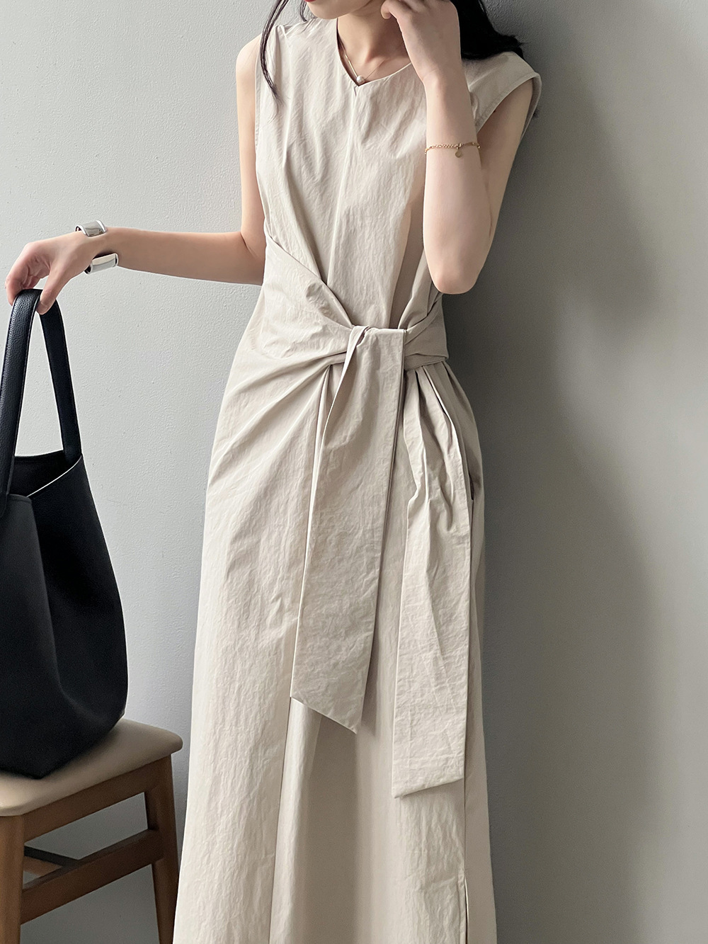 *o-ha-you*【FYS90098】收腰綁帶無袖連衣裙2024夏季新款設計感茶歇法式A字長裙洋裝-2色