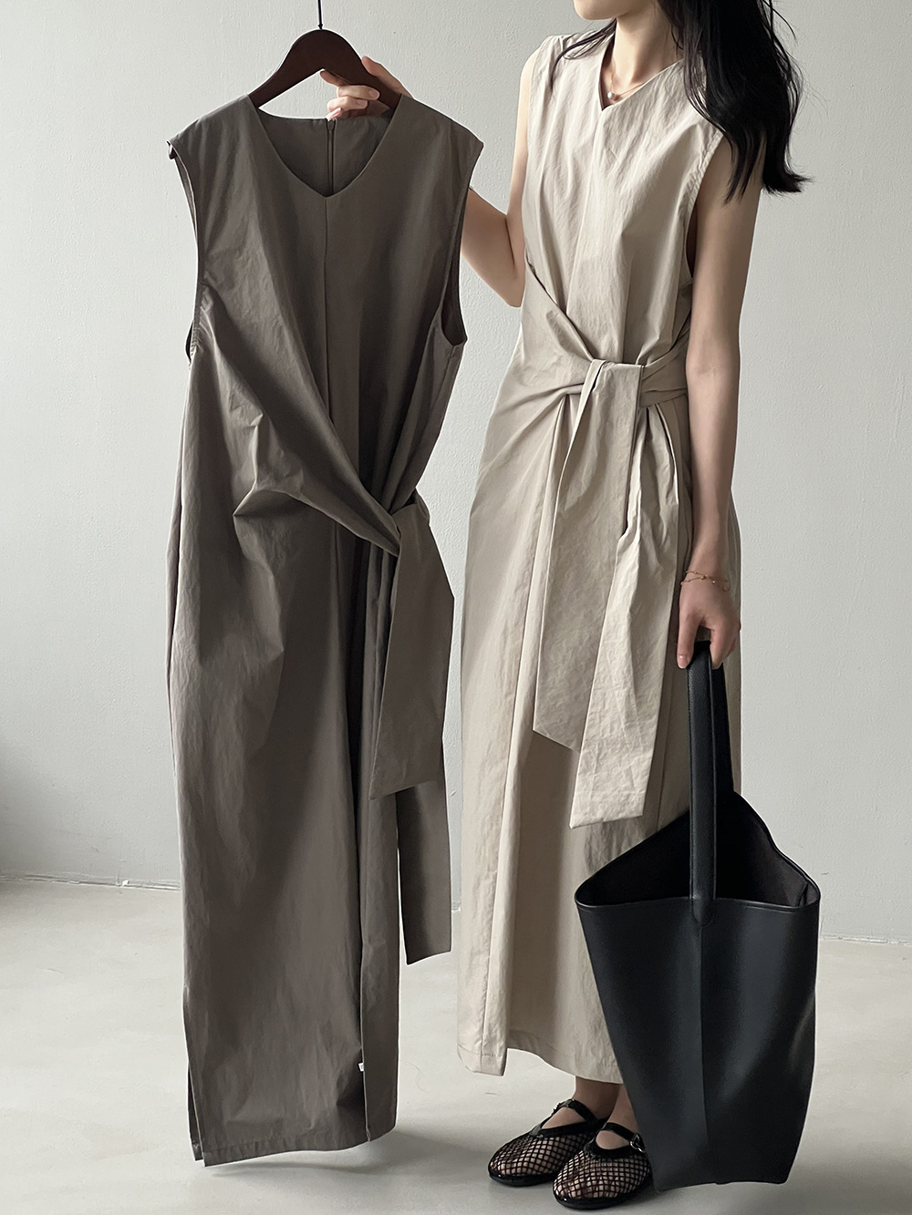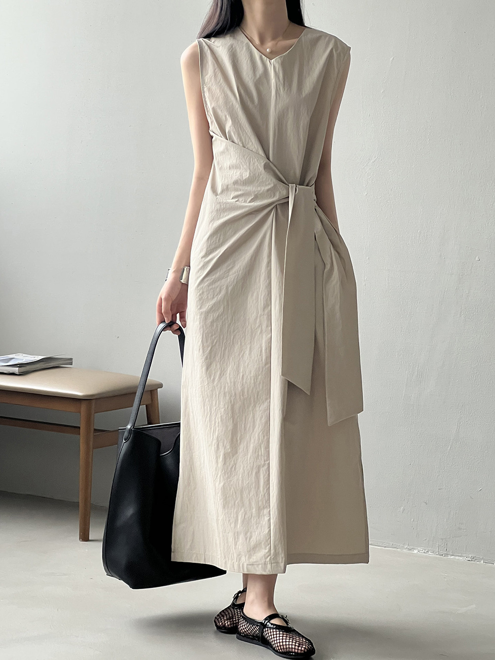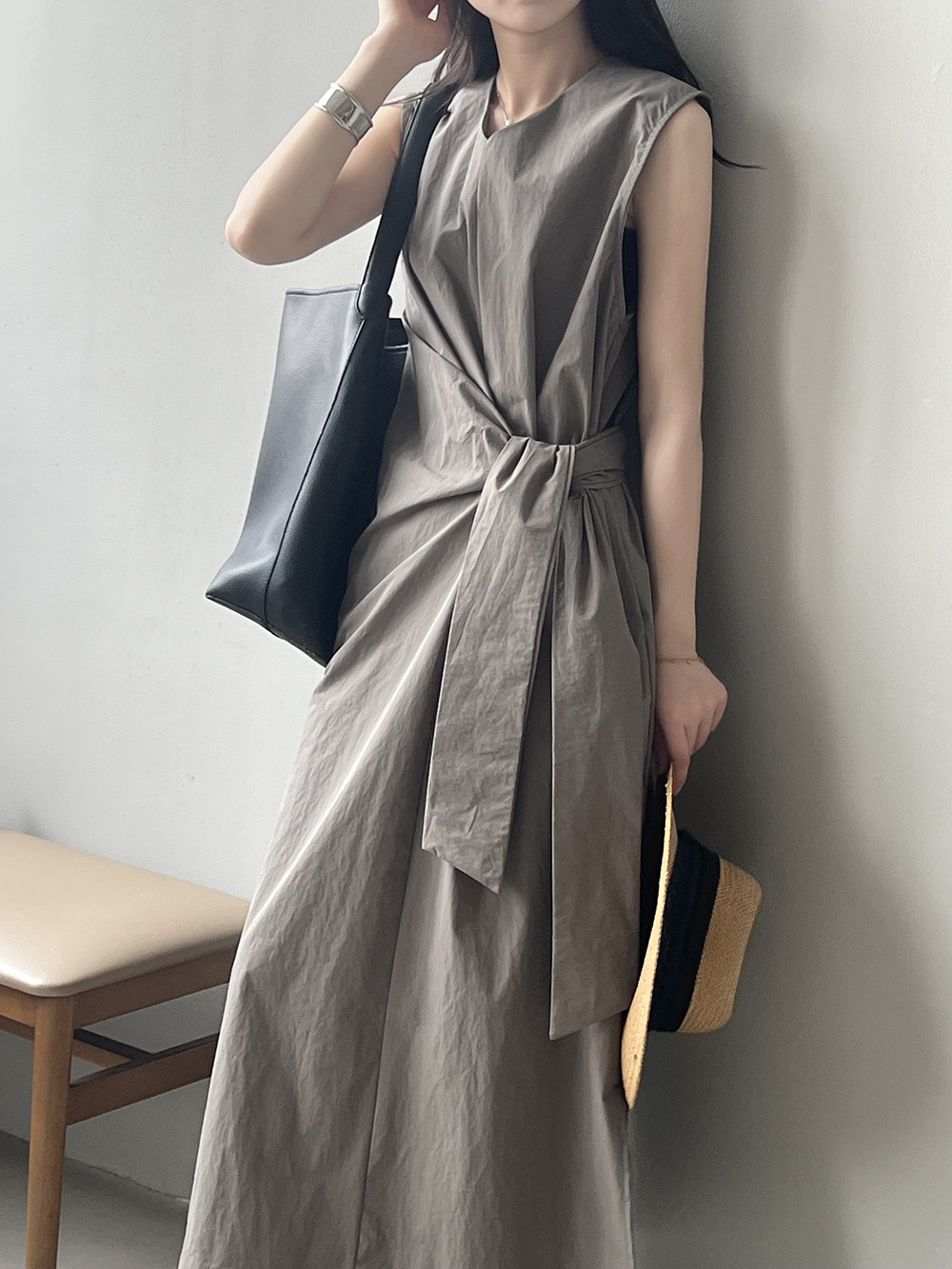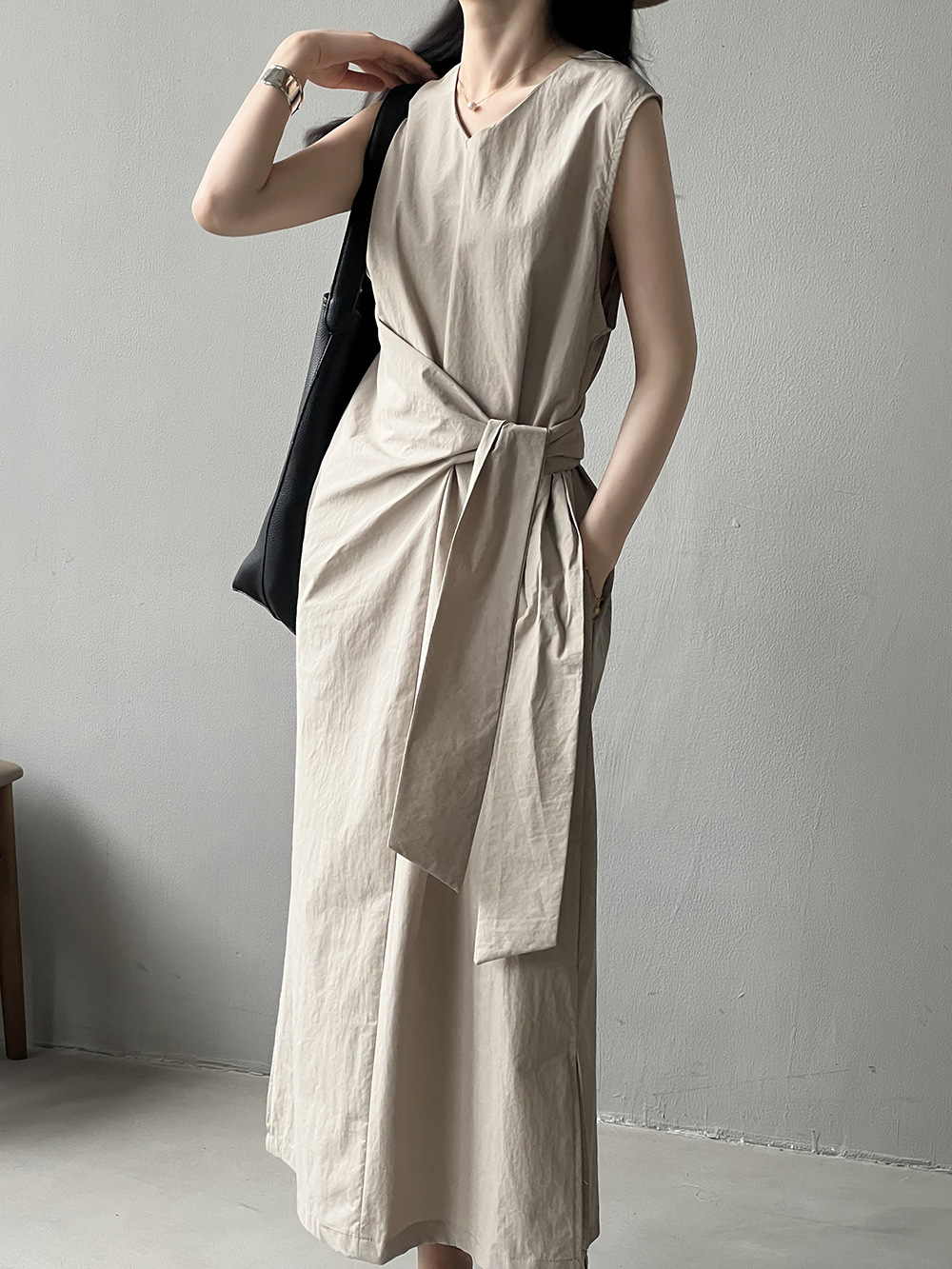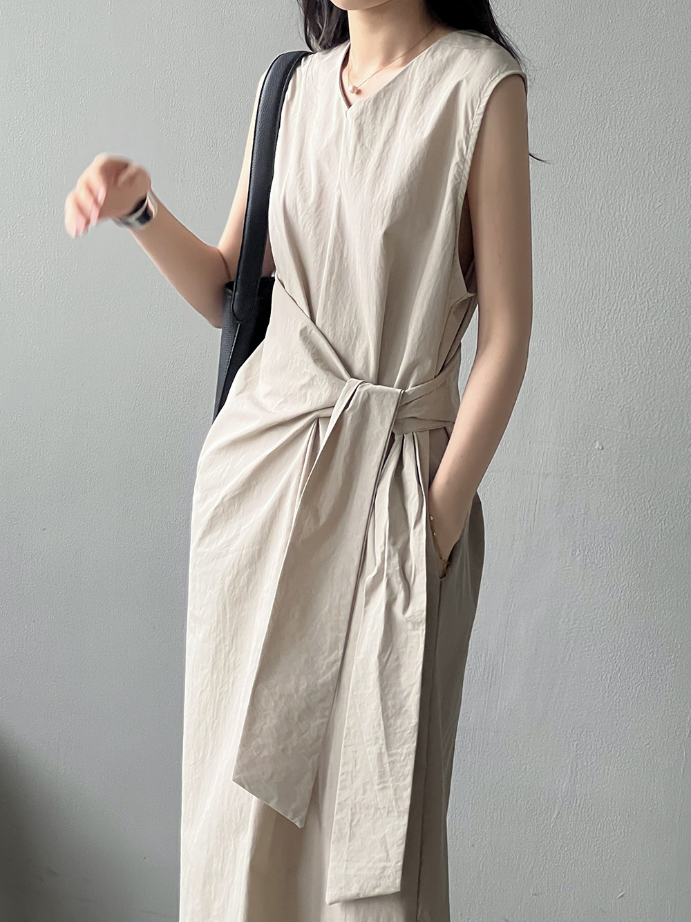 *o-ha-you*【FYS90098】收腰綁帶無袖連衣裙2024夏季新款設計感茶歇法式A字長裙洋裝-2色