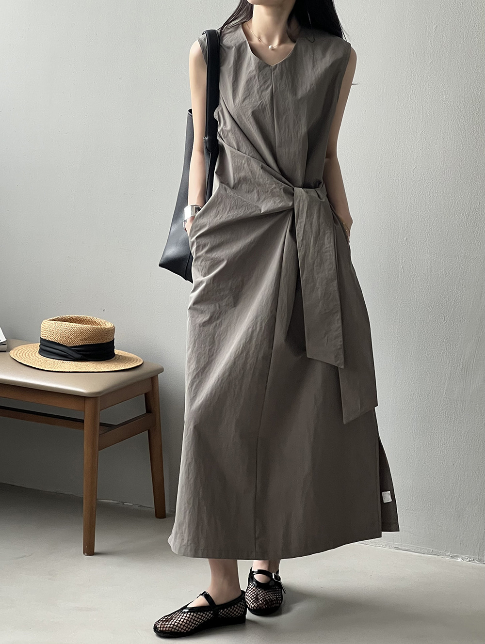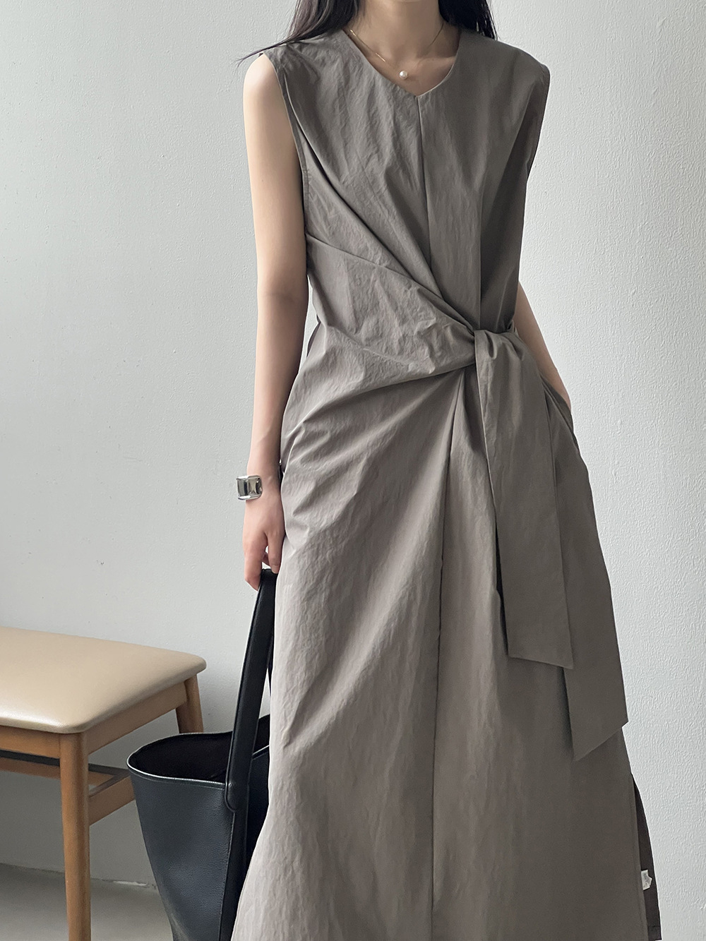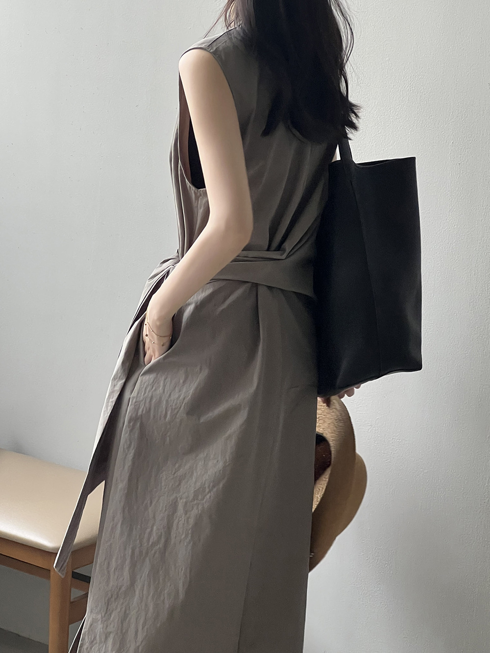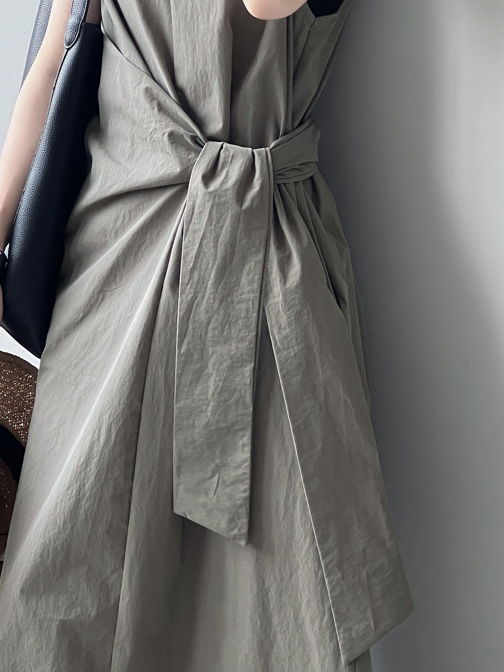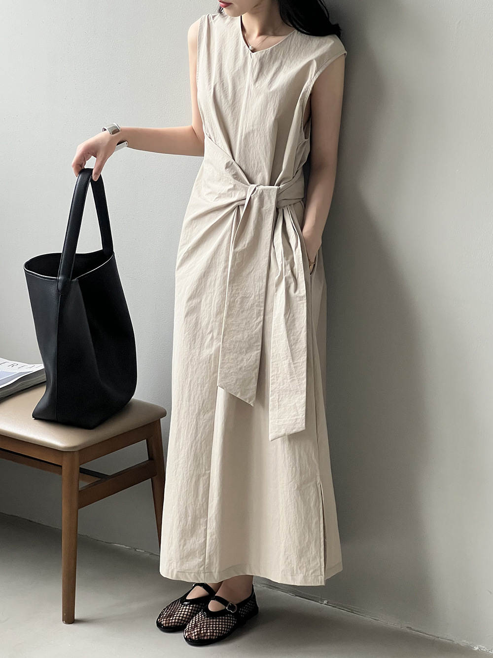 *o-ha-you*【FYS90098】收腰綁帶無袖連衣裙2024夏季新款設計感茶歇法式A字長裙洋裝-2色