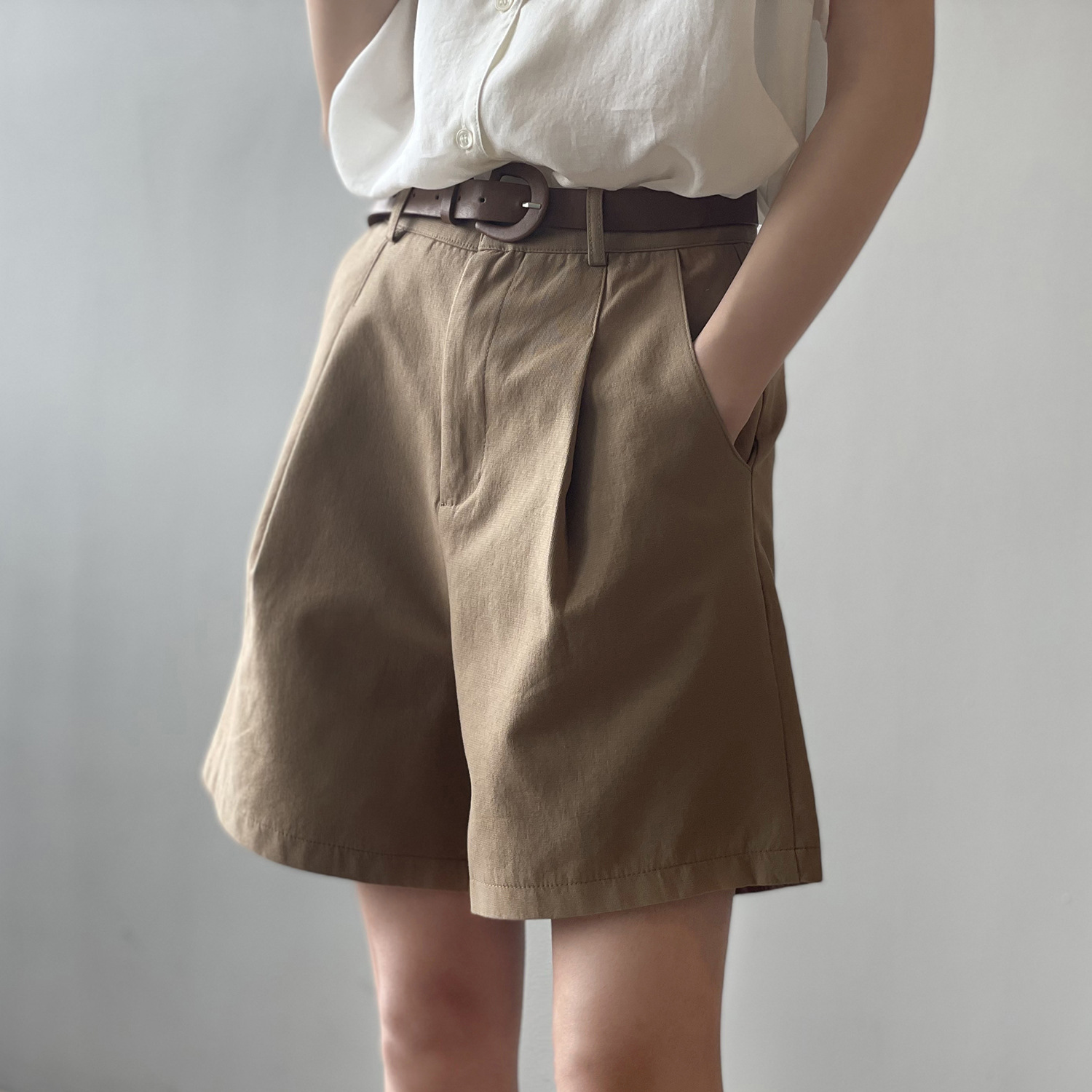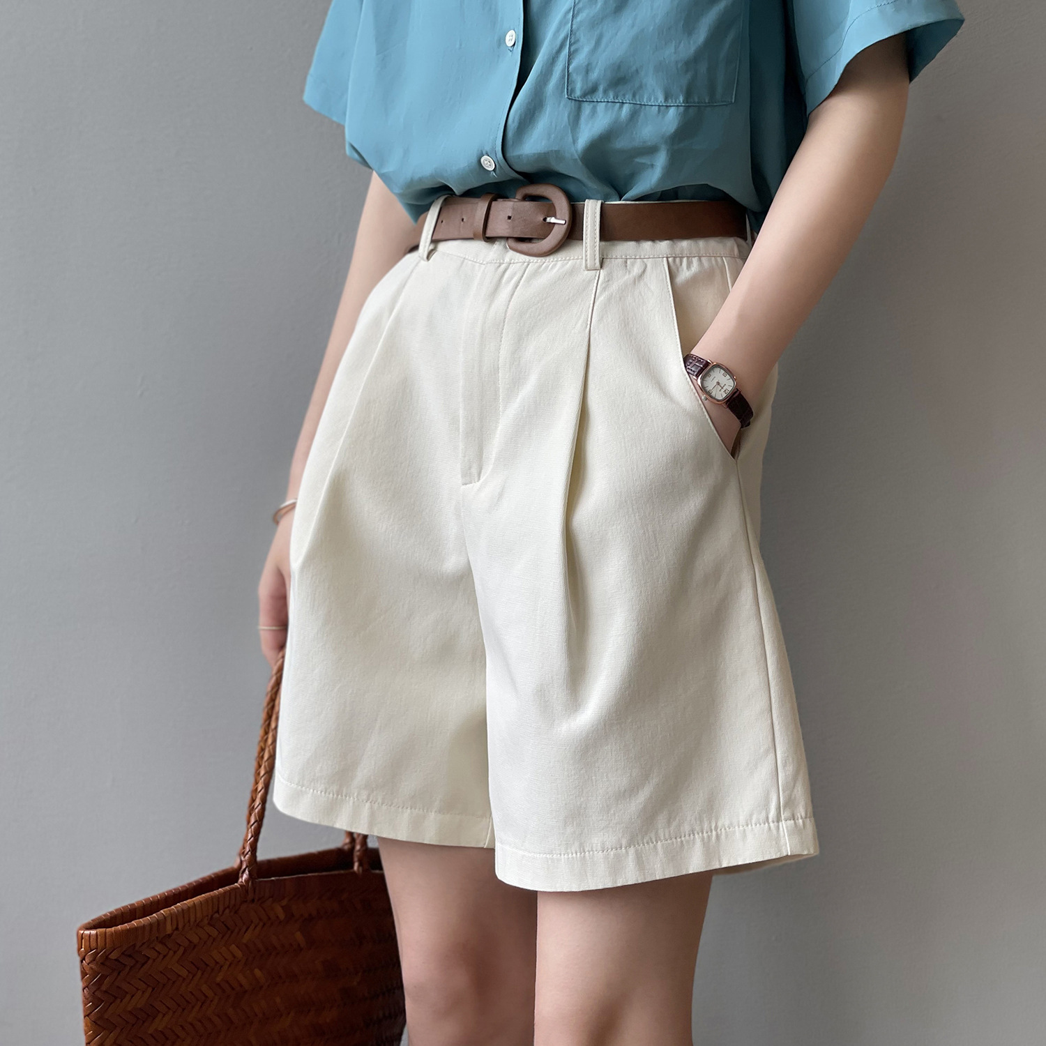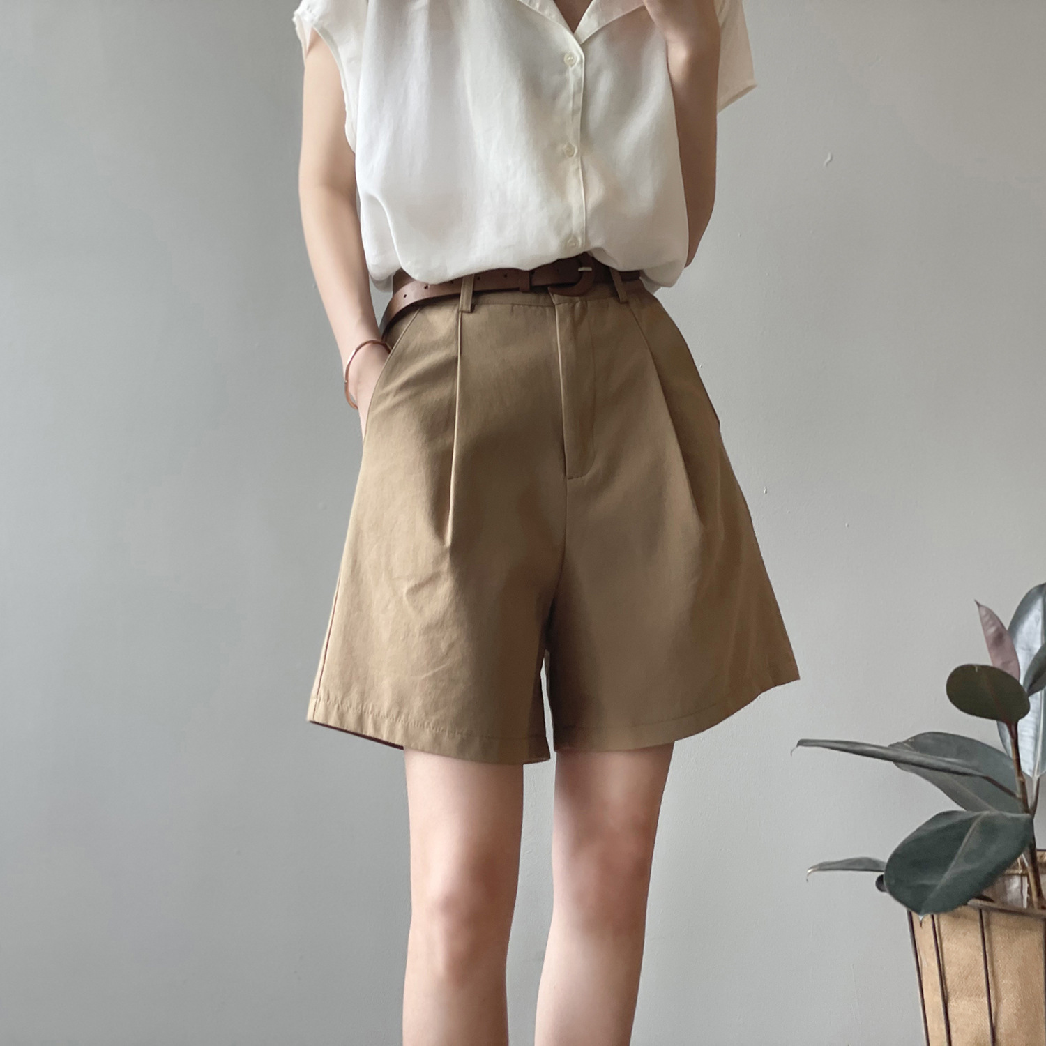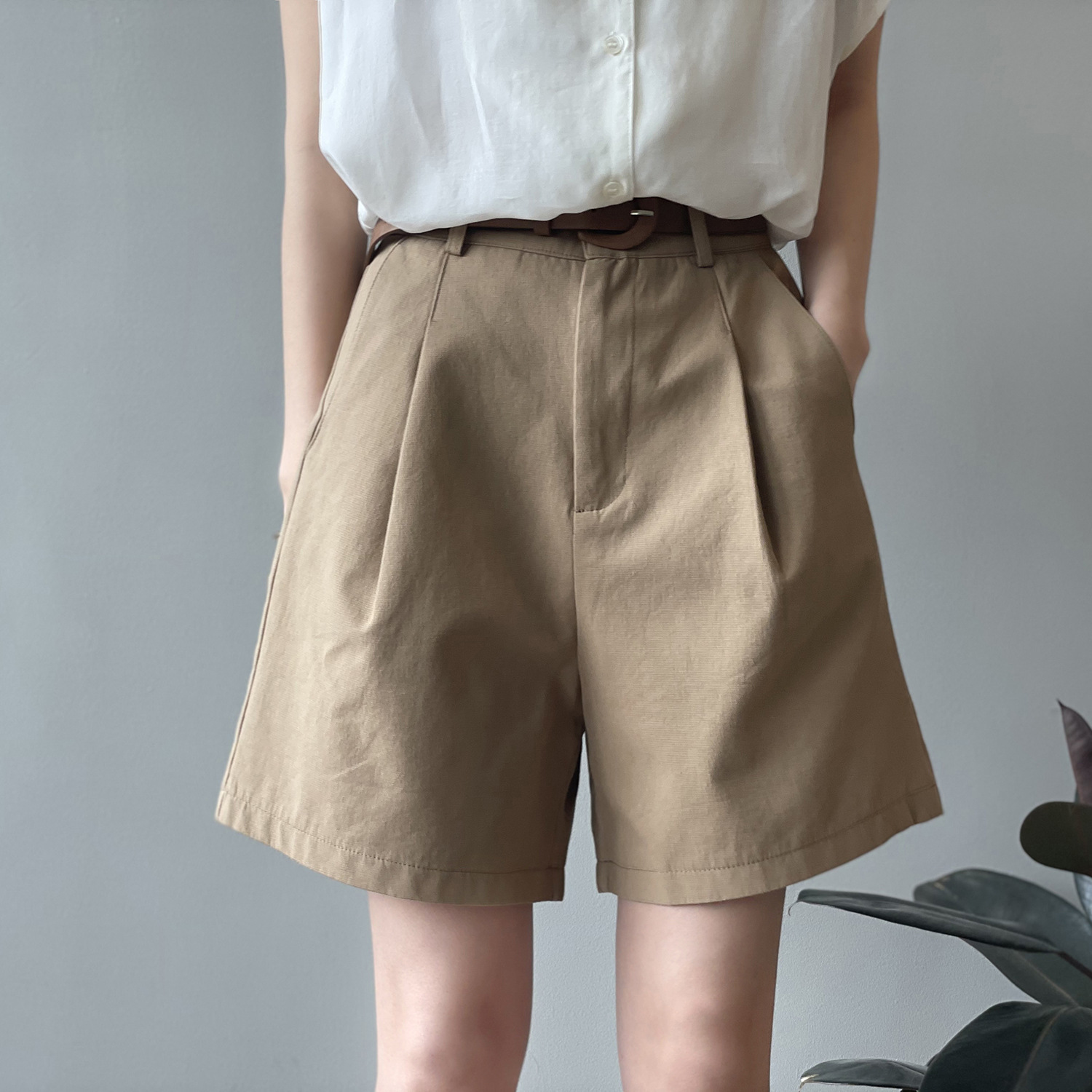 *o-ha-you*【FYS90573】工裝短褲2024夏季新款韓版高腰顯瘦寬鬆直筒闊腿休閒褲-3色