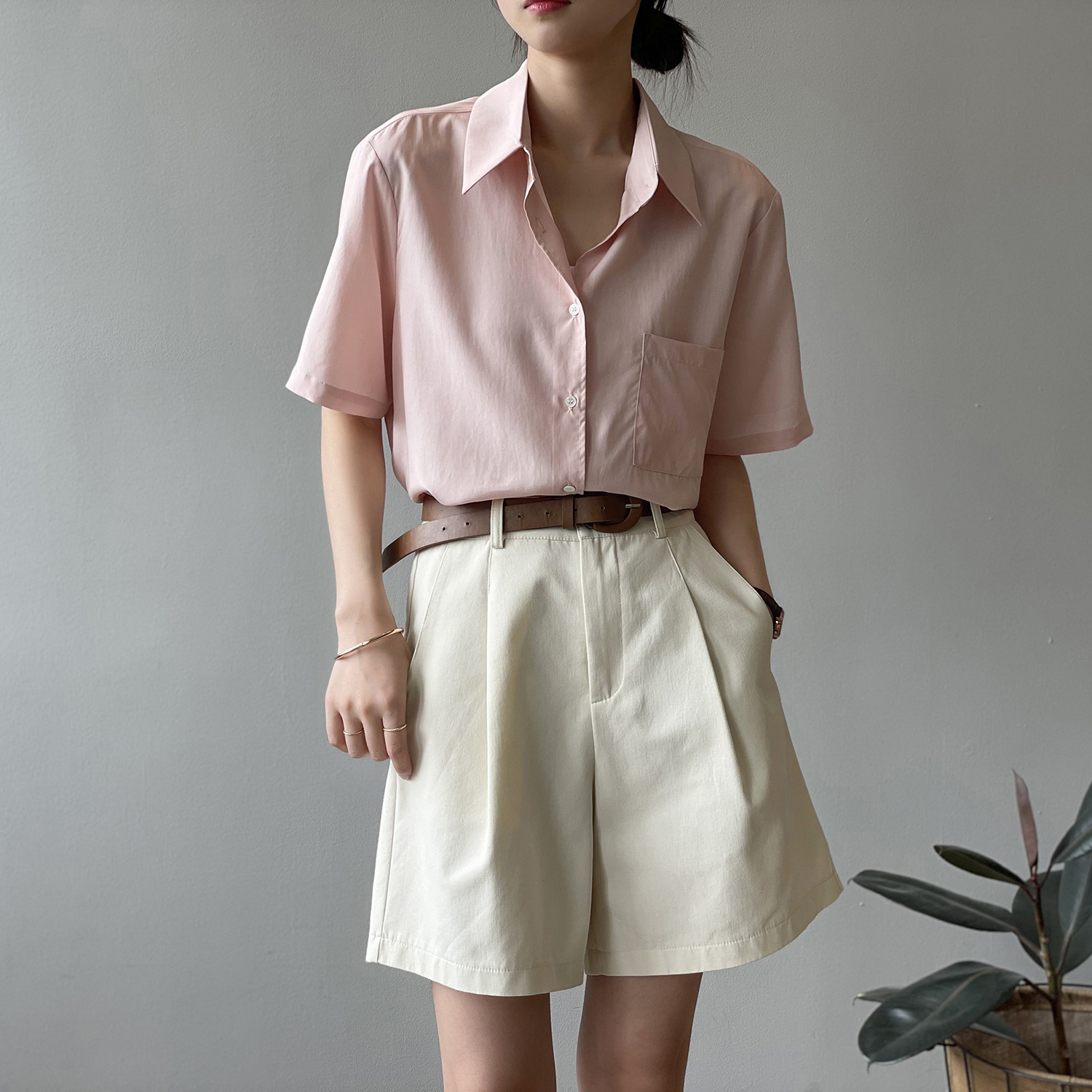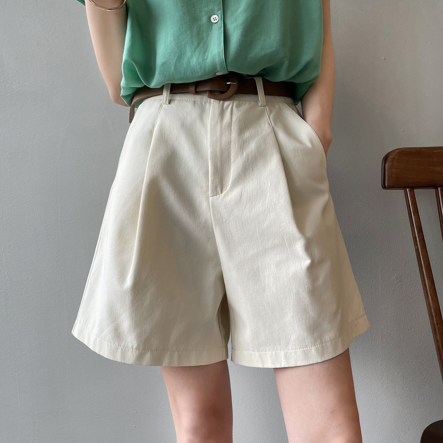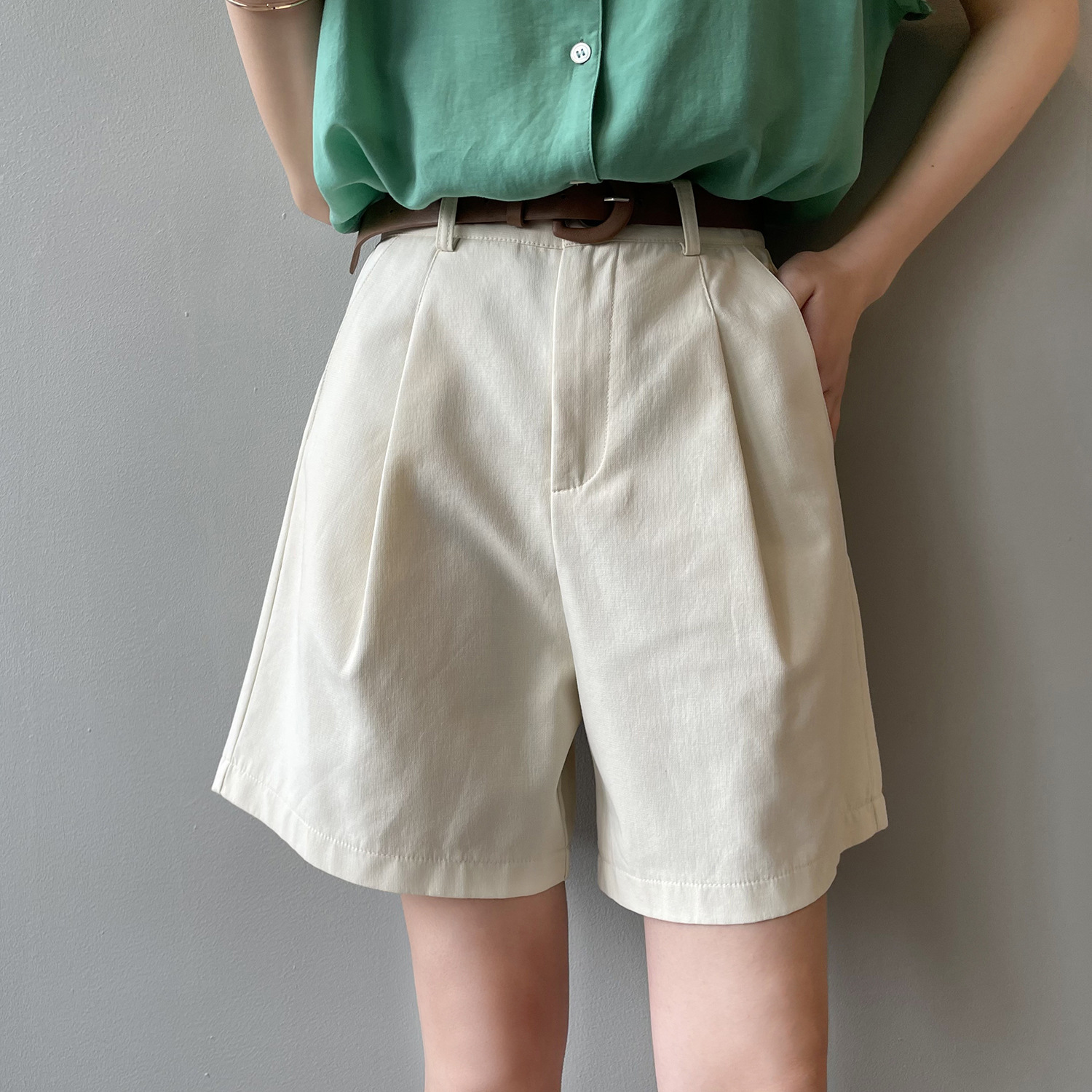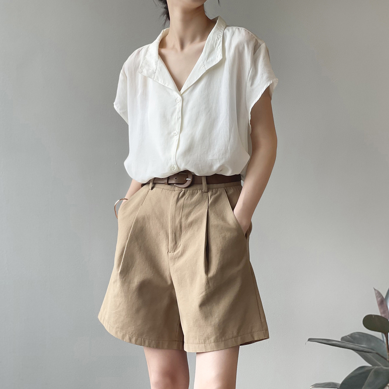 *o-ha-you*【FYS90573】工裝短褲2024夏季新款韓版高腰顯瘦寬鬆直筒闊腿休閒褲-3色