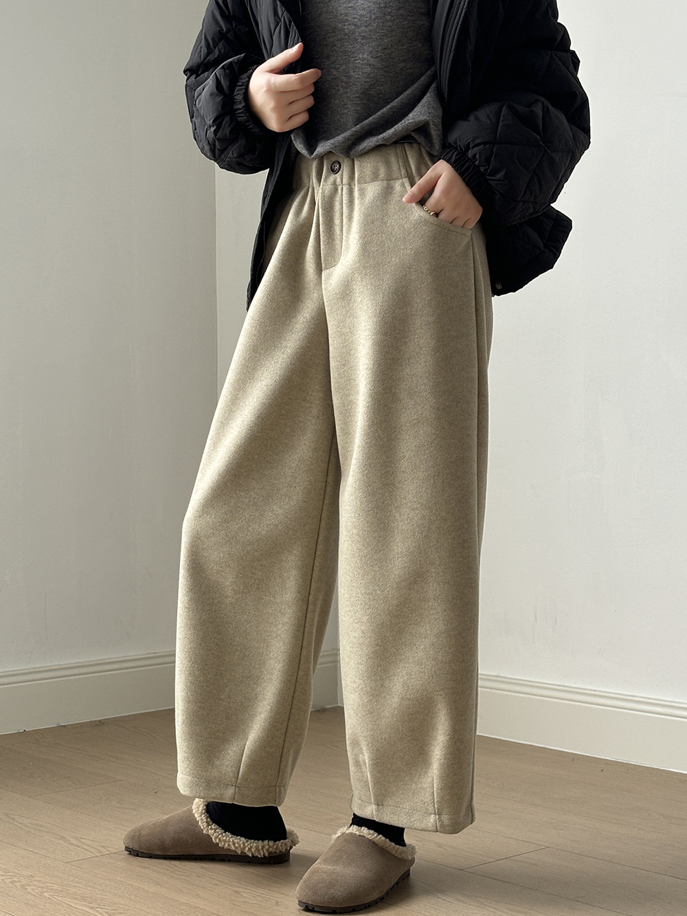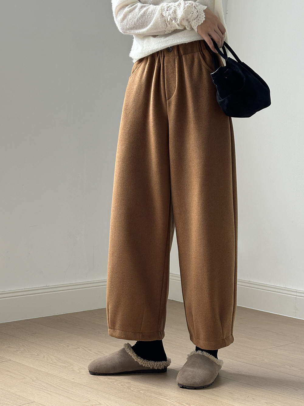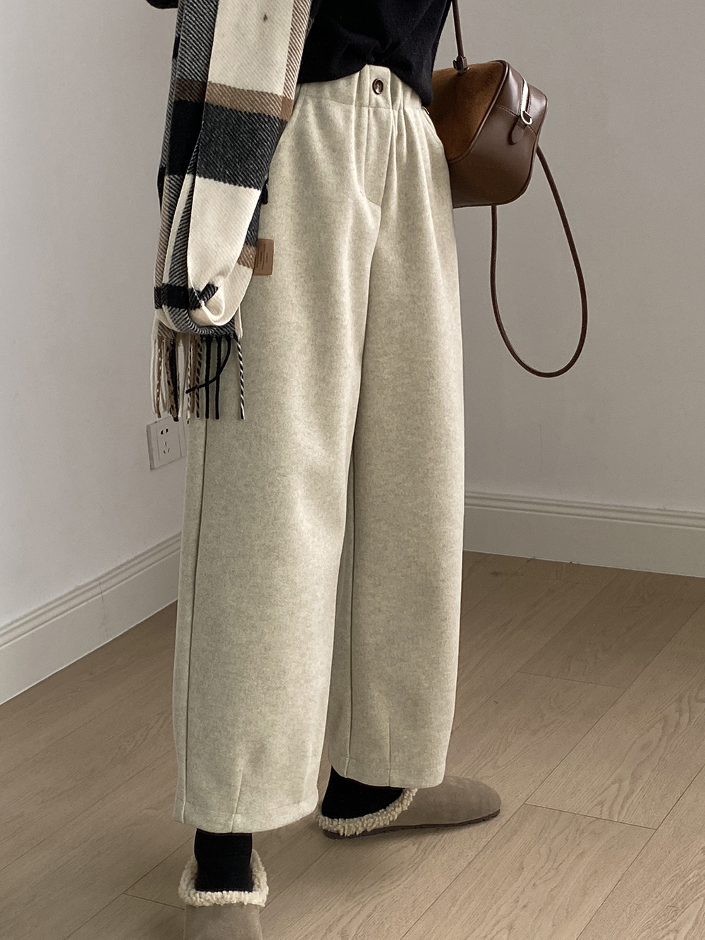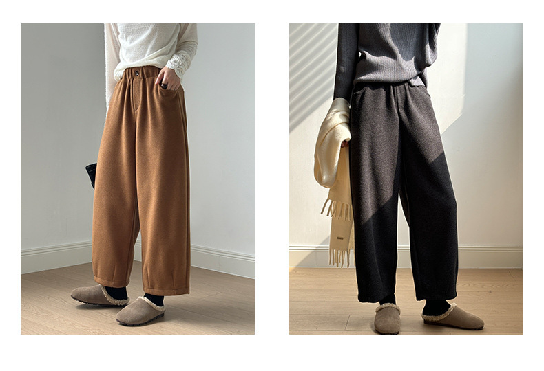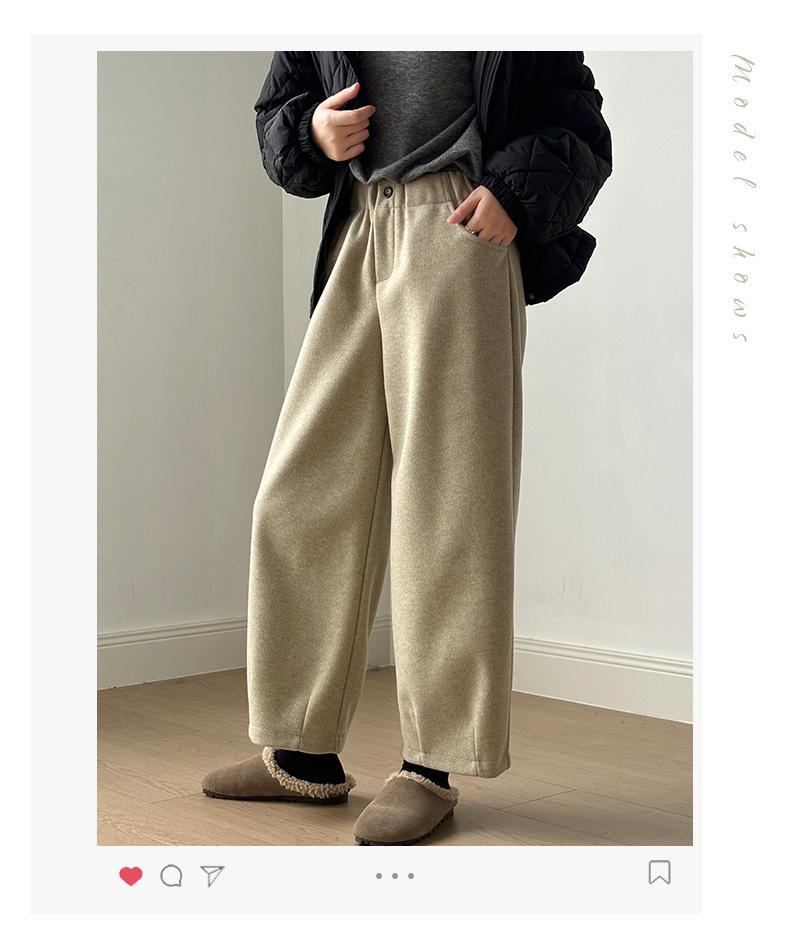 *o-ha-you*【FYS90792】高腰闊腿毛呢休閒褲2024冬季新款加厚直筒束腳哈倫褲-4色-如有需要請先諮詢
