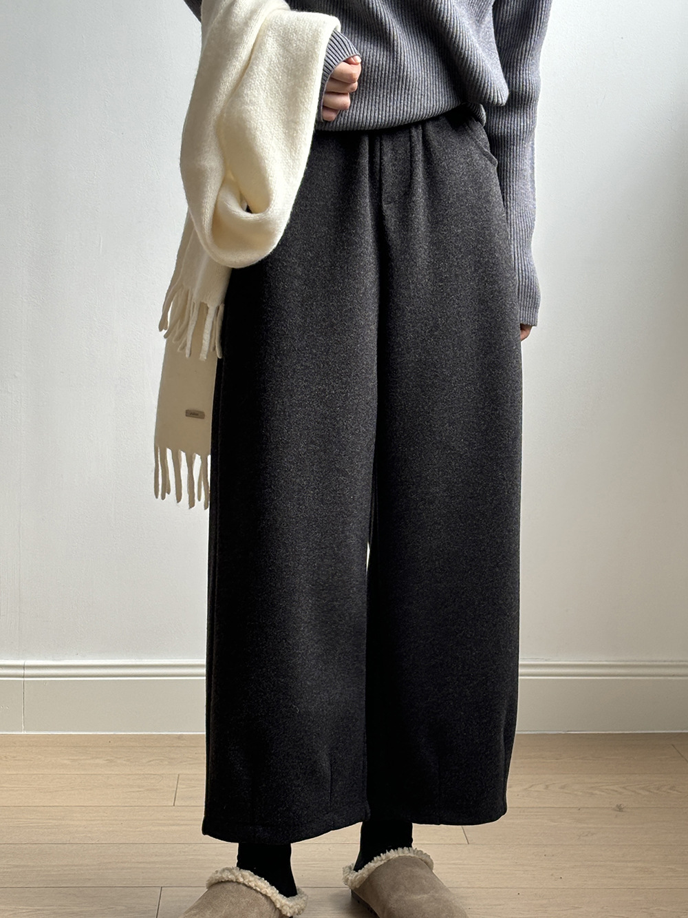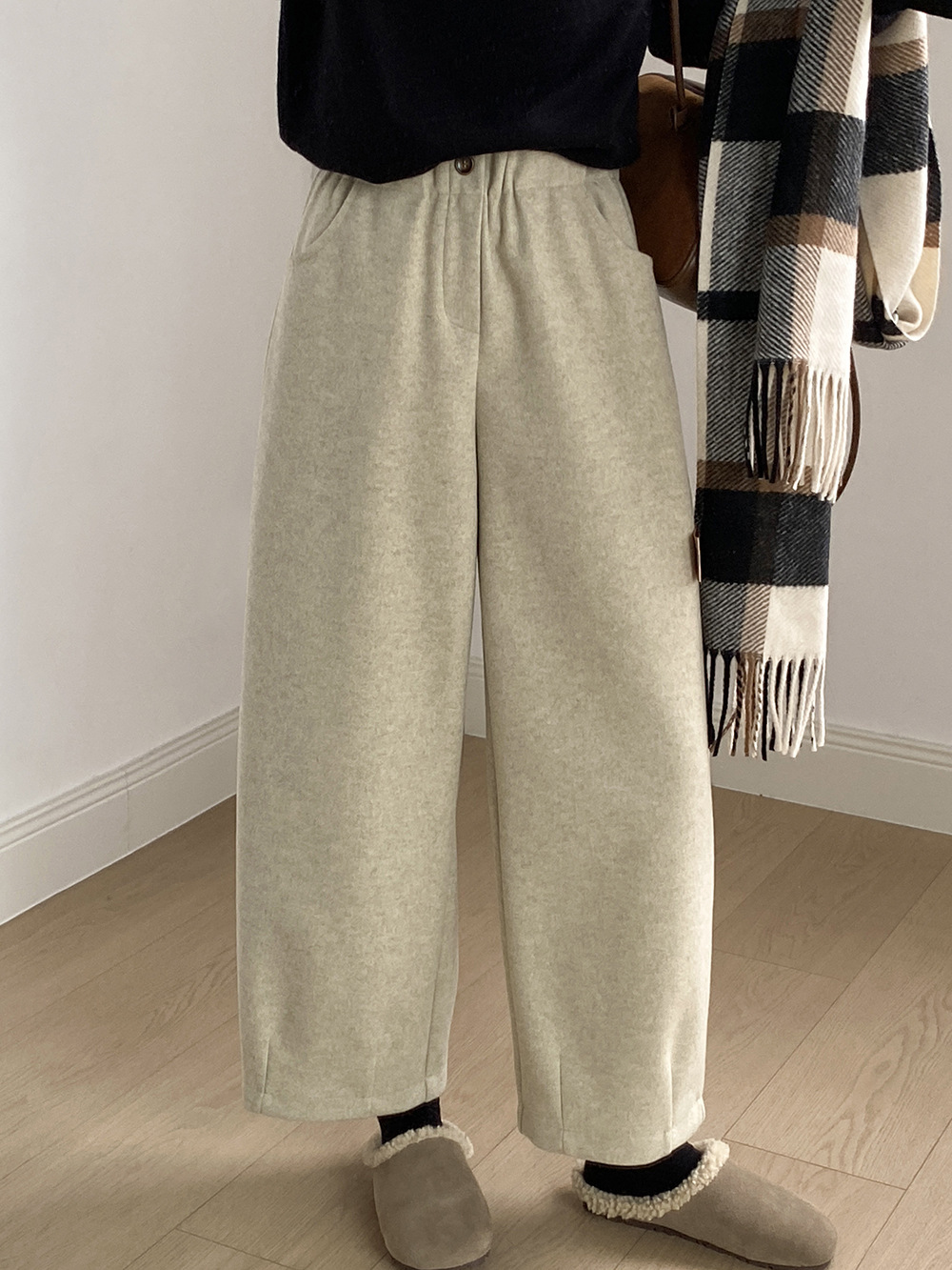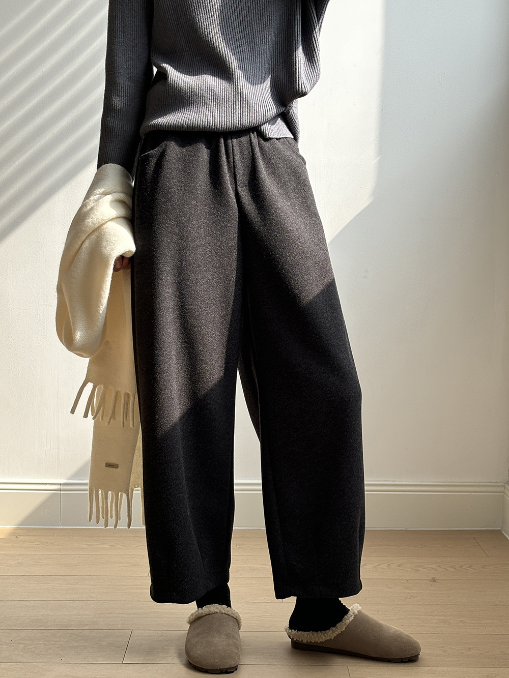 *o-ha-you*【FYS90792】高腰闊腿毛呢休閒褲2024冬季新款加厚直筒束腳哈倫褲-4色-如有需要請先諮詢