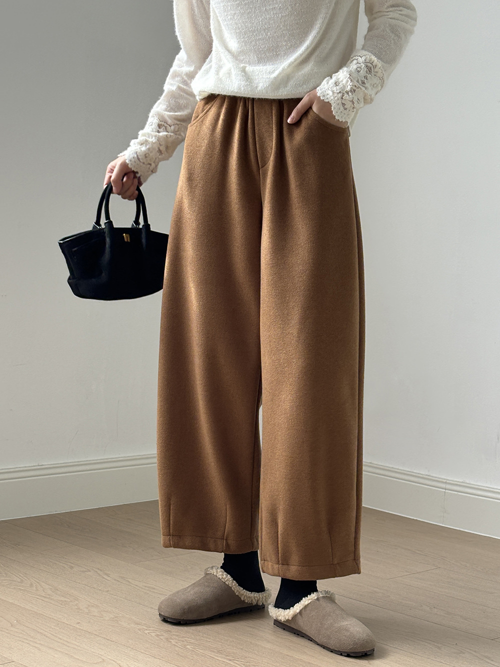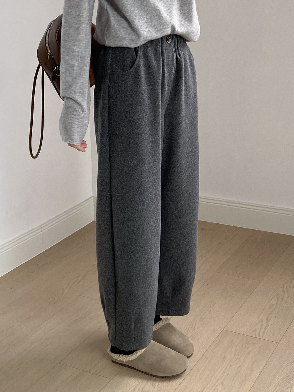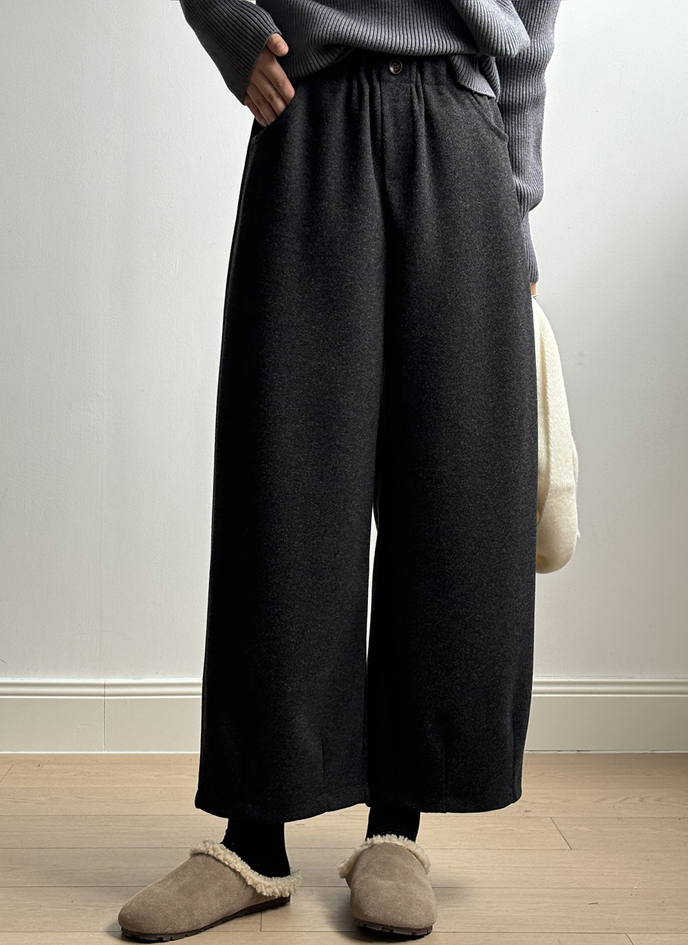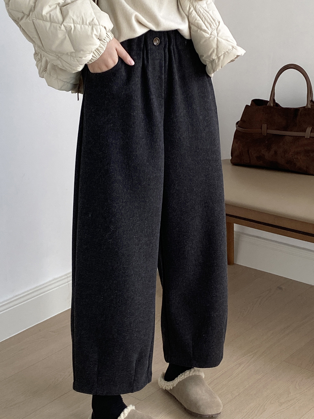 *o-ha-you*【FYS90792】高腰闊腿毛呢休閒褲2024冬季新款加厚直筒束腳哈倫褲-4色-如有需要請先諮詢