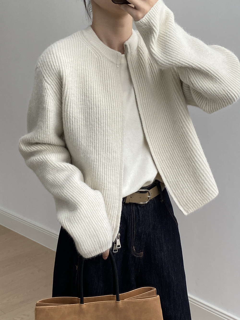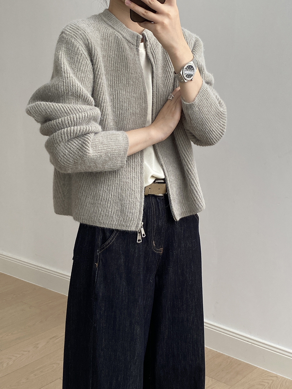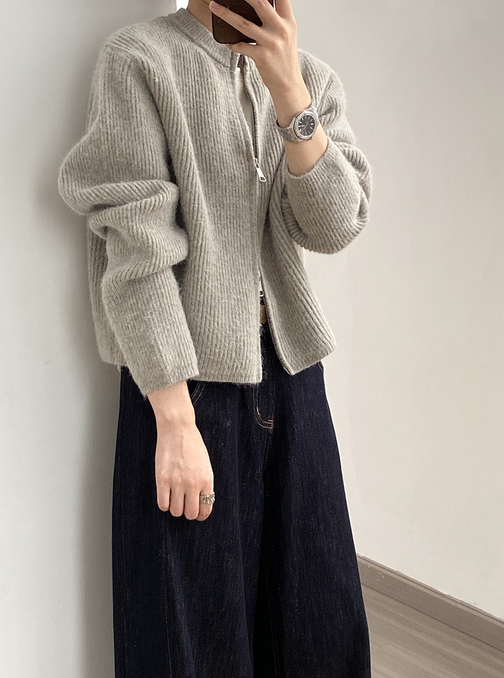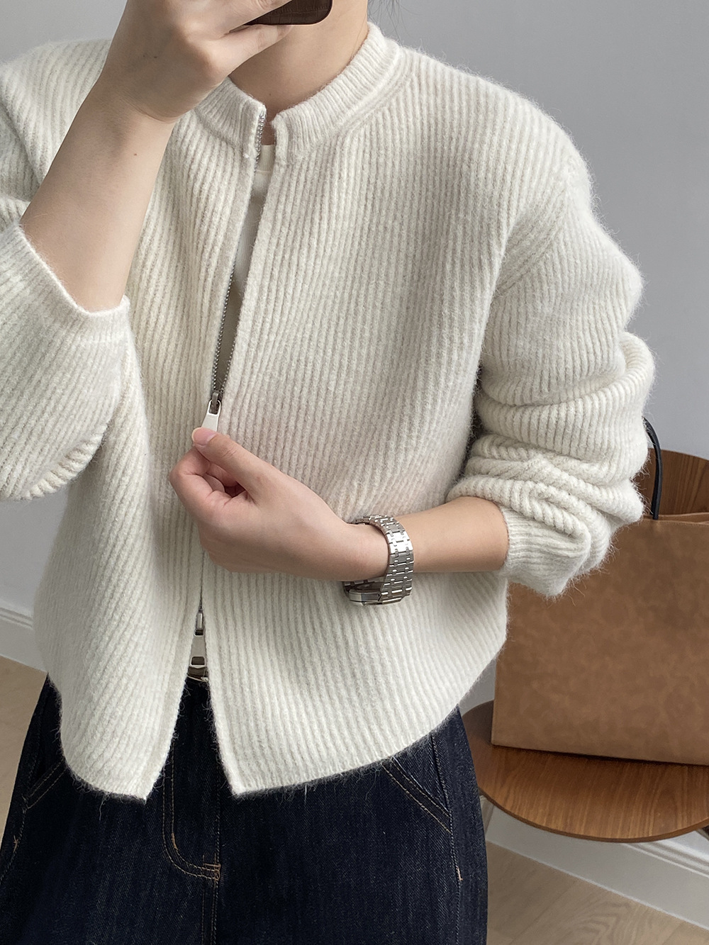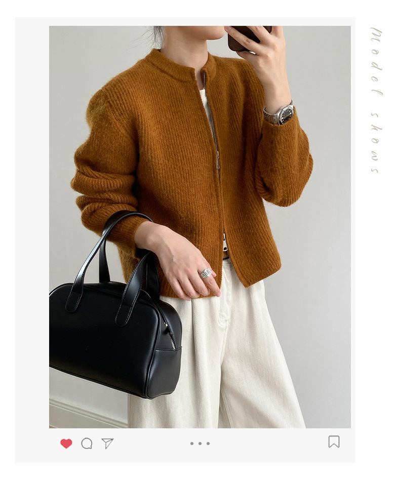 *o-ha-you*【FYSA05】慵懶風短款圓領雙拉鍊毛衣2024秋冬新款韓系百搭針織衫-4色-如有需要請先諮詢