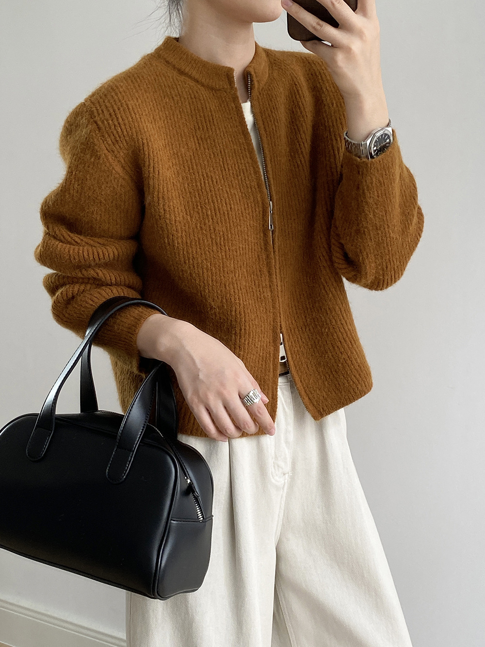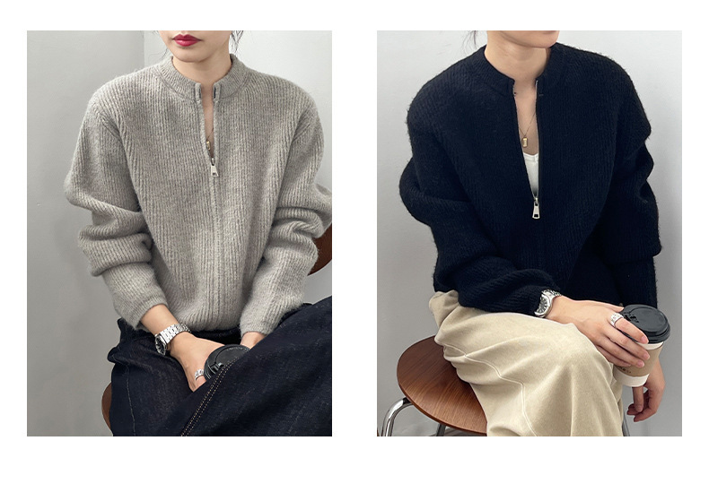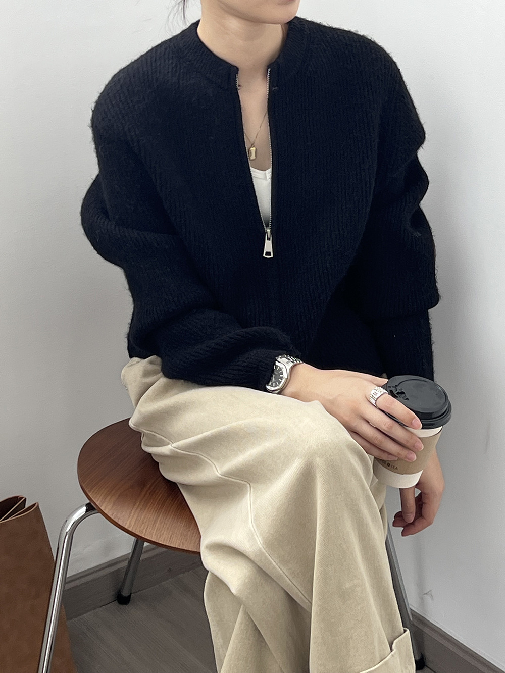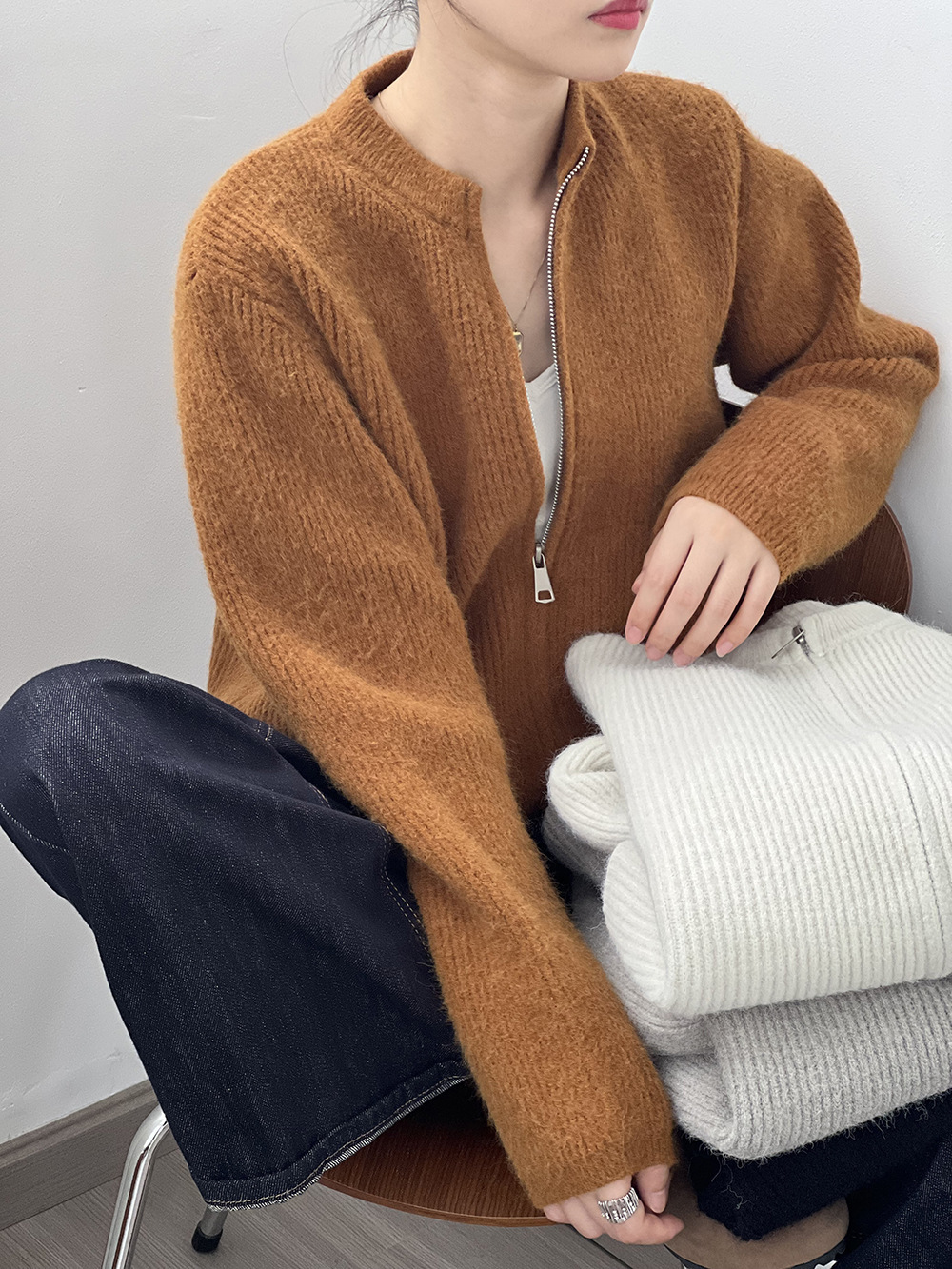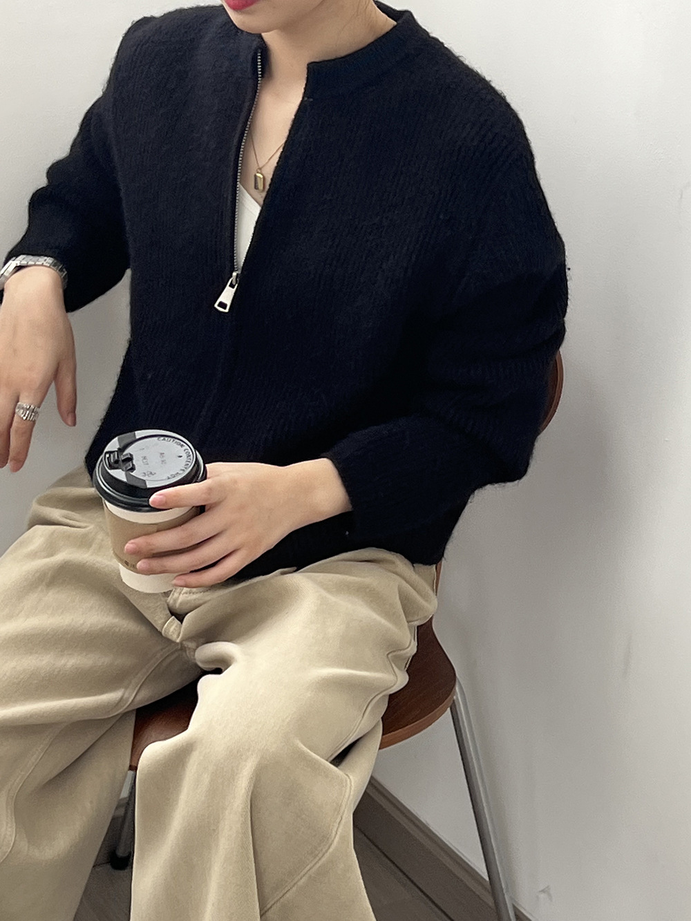 *o-ha-you*【FYSA05】慵懶風短款圓領雙拉鍊毛衣2024秋冬新款韓系百搭針織衫-4色-如有需要請先諮詢