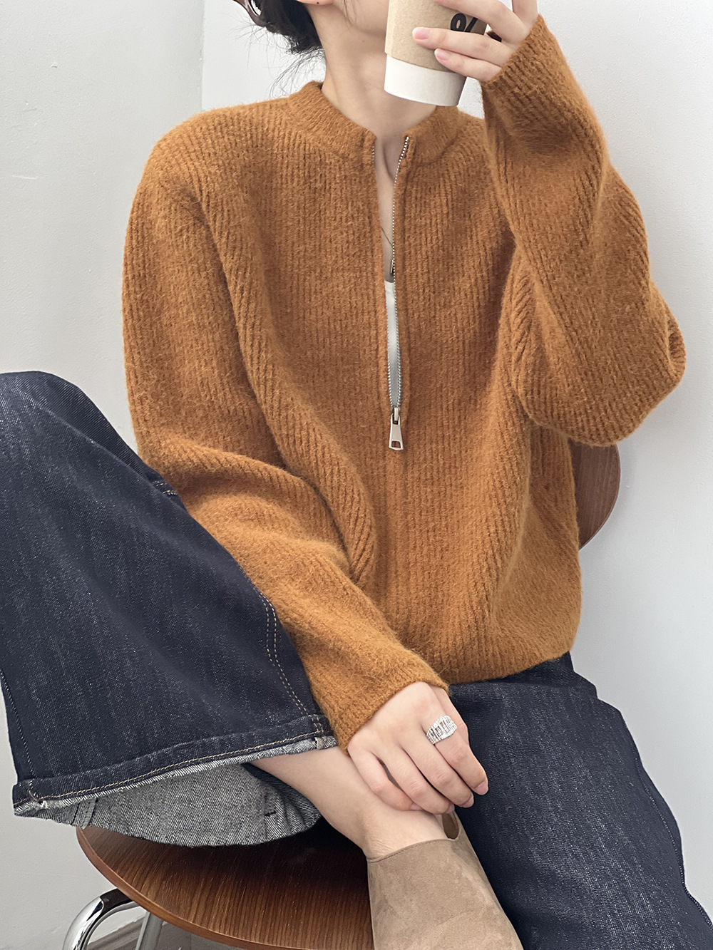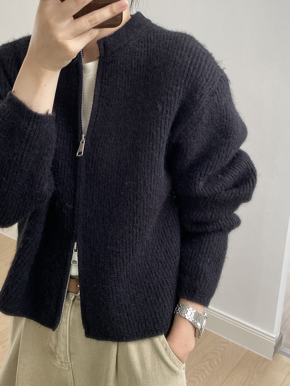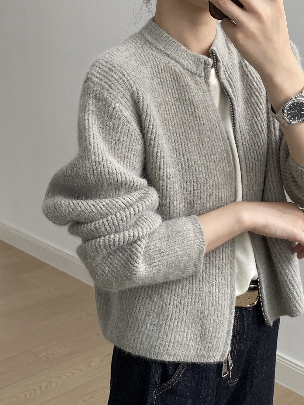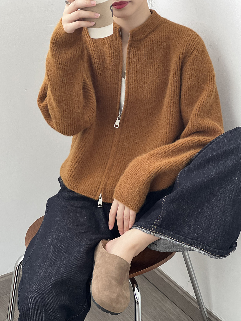 *o-ha-you*【FYSA05】慵懶風短款圓領雙拉鍊毛衣2024秋冬新款韓系百搭針織衫-4色-如有需要請先諮詢