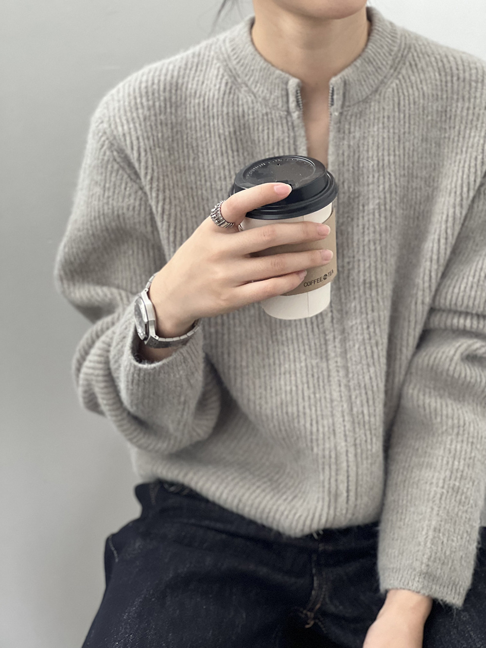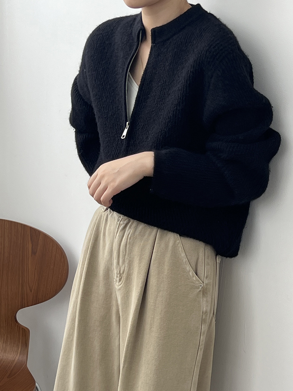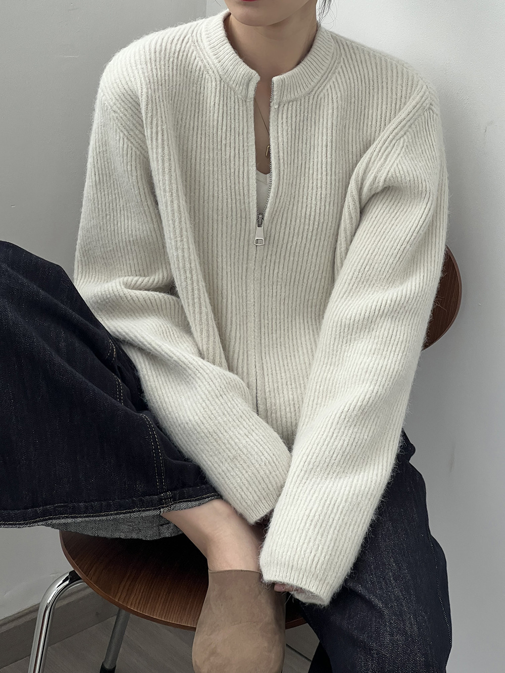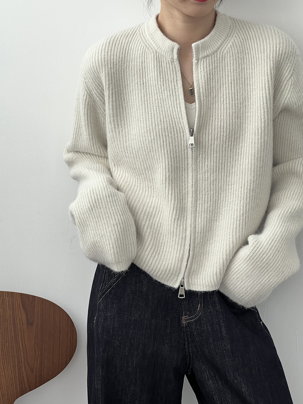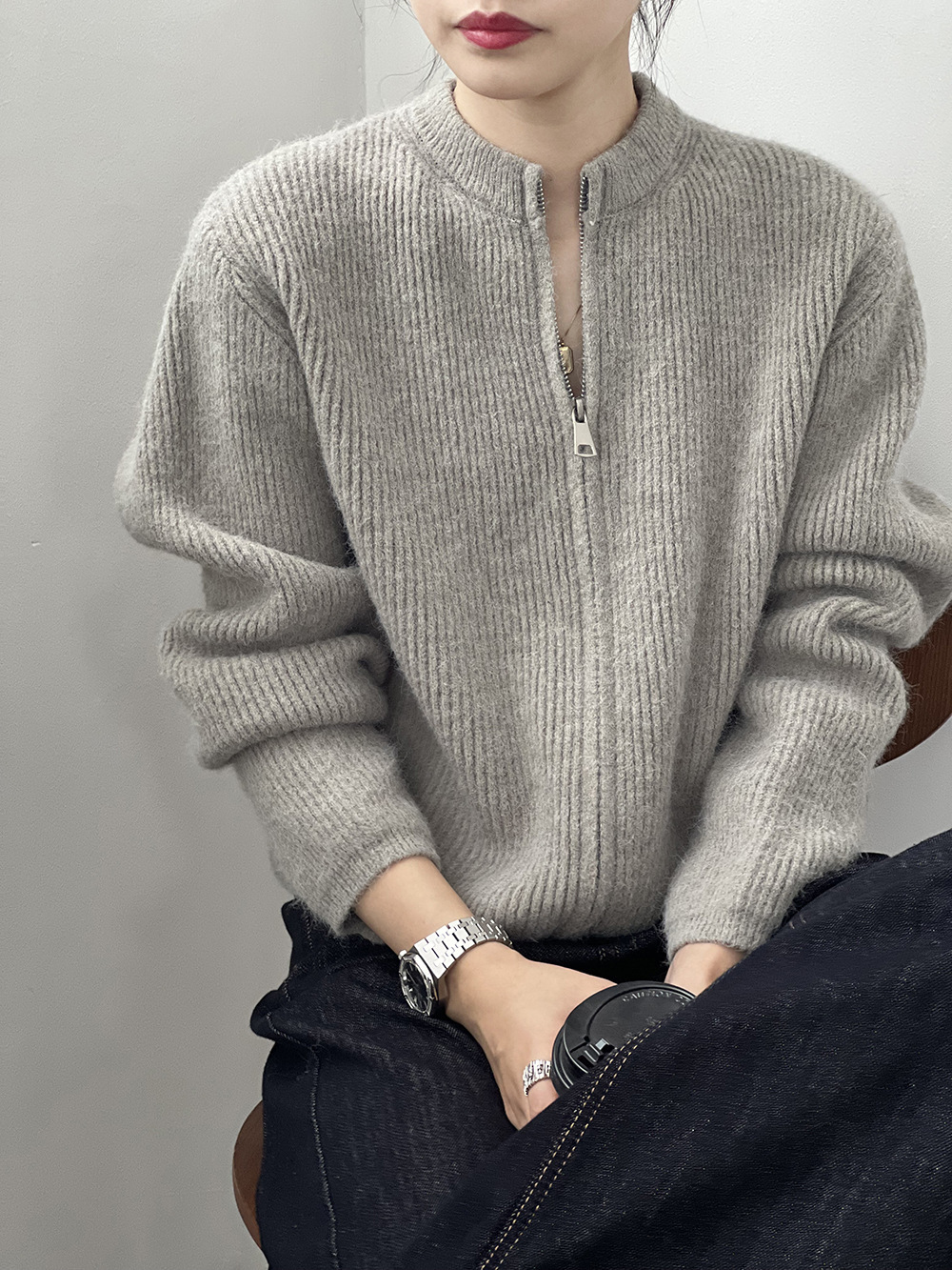 *o-ha-you*【FYSA05】慵懶風短款圓領雙拉鍊毛衣2024秋冬新款韓系百搭針織衫-4色-如有需要請先諮詢