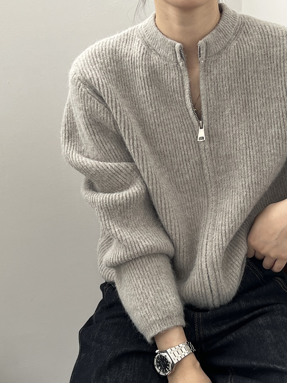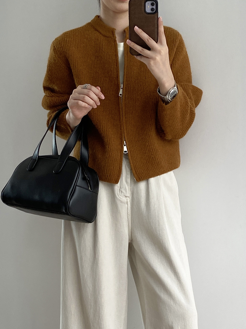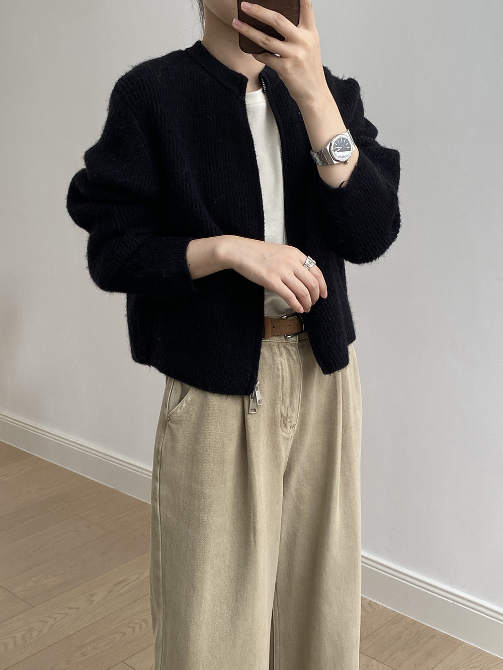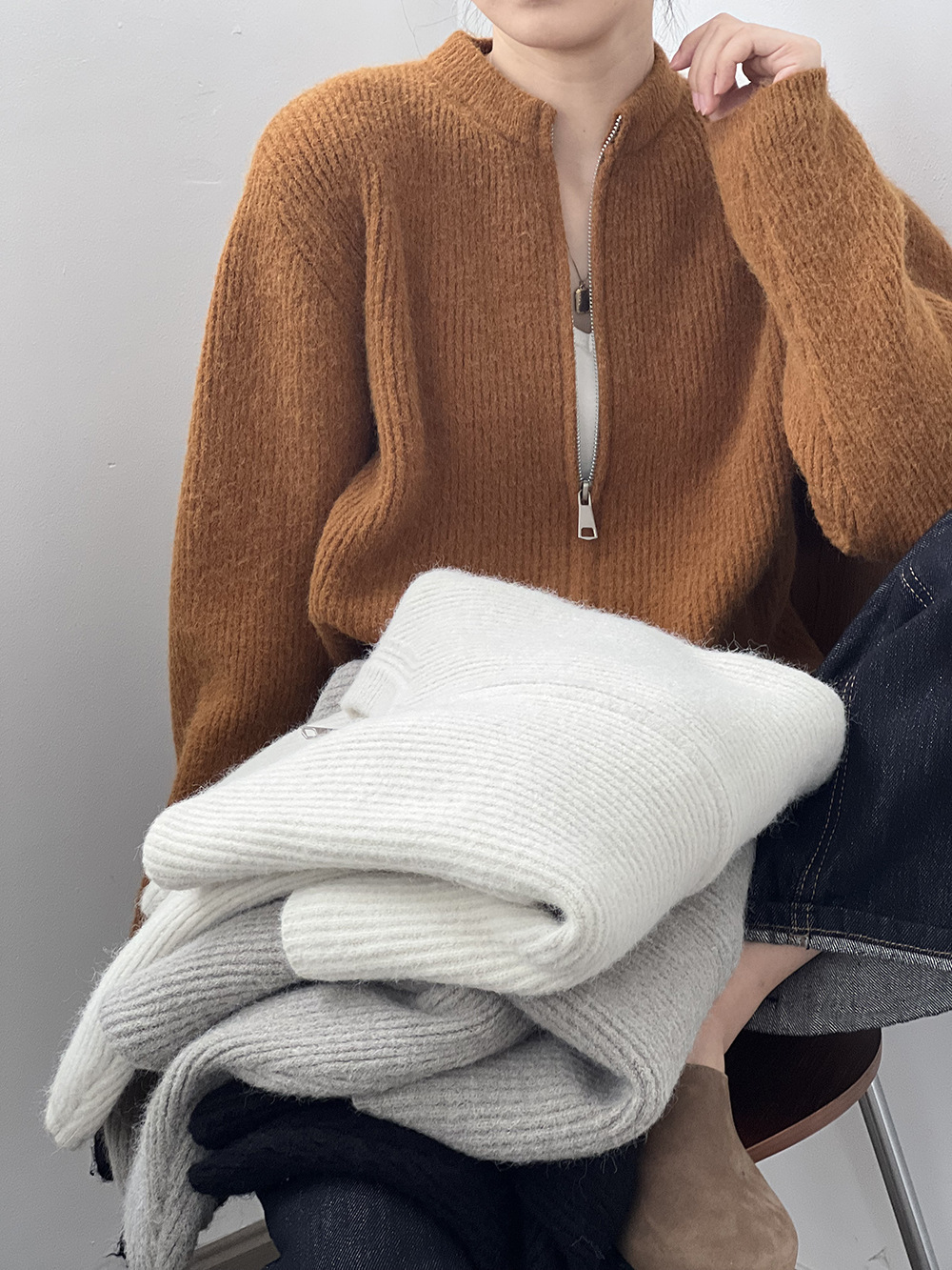 *o-ha-you*【FYSA05】慵懶風短款圓領雙拉鍊毛衣2024秋冬新款韓系百搭針織衫-4色-如有需要請先諮詢