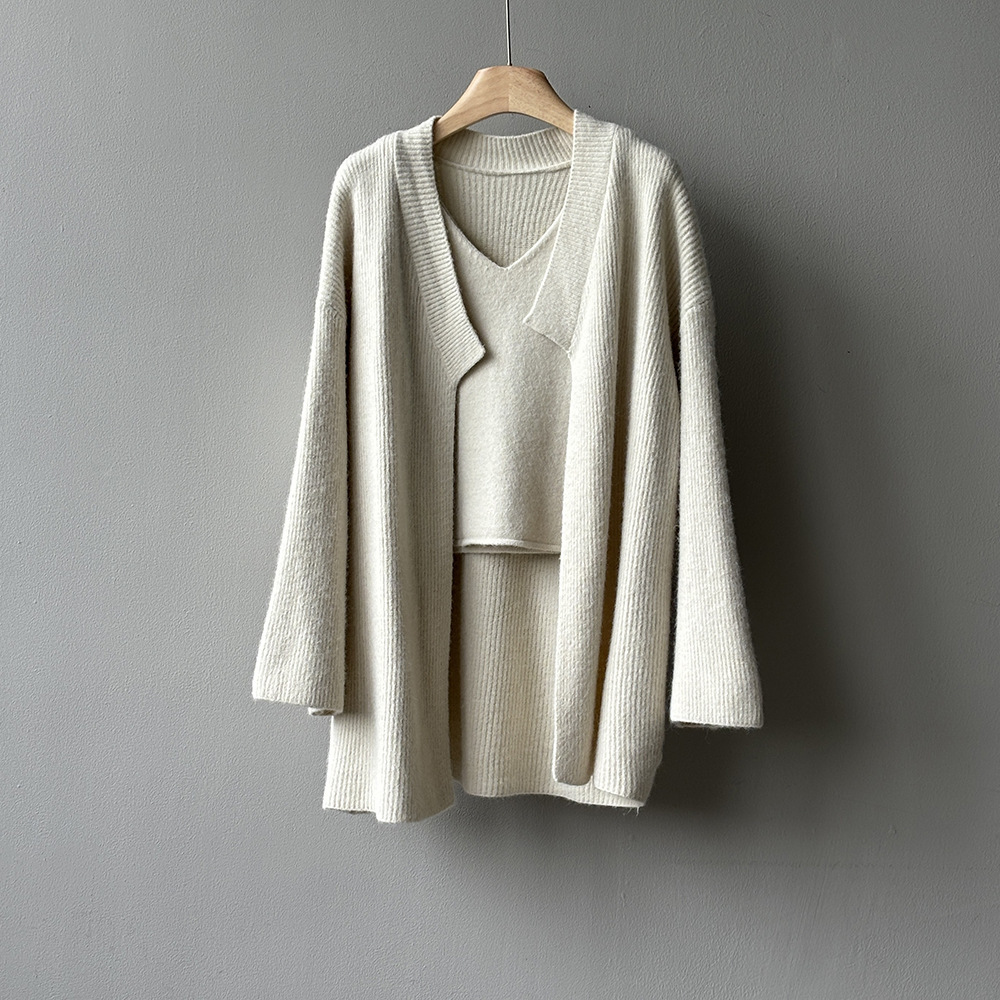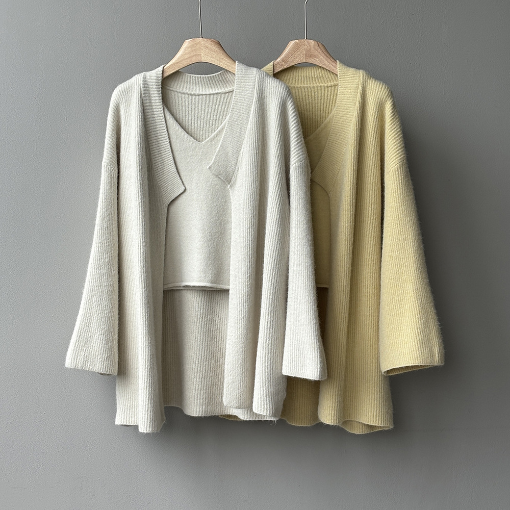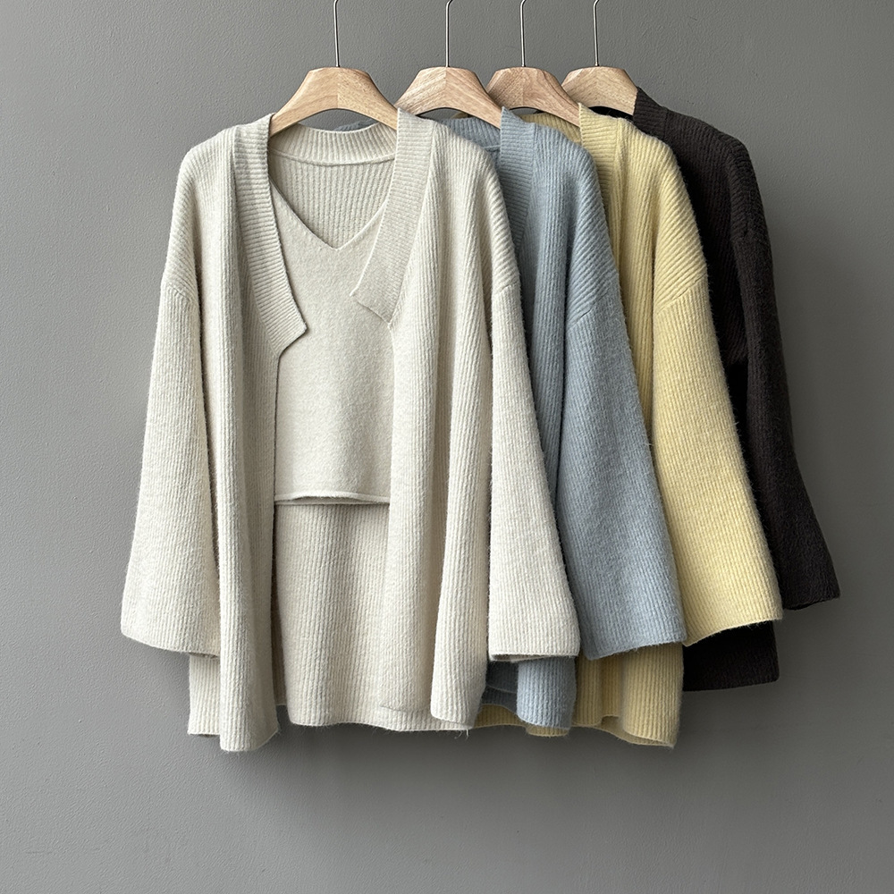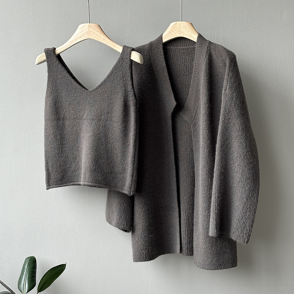 *o-ha-you*【FYSA102】韓系針織開襟衫外套2024秋季小眾吊帶背心毛衣兩件套裝-4色-如有需要請先諮詢