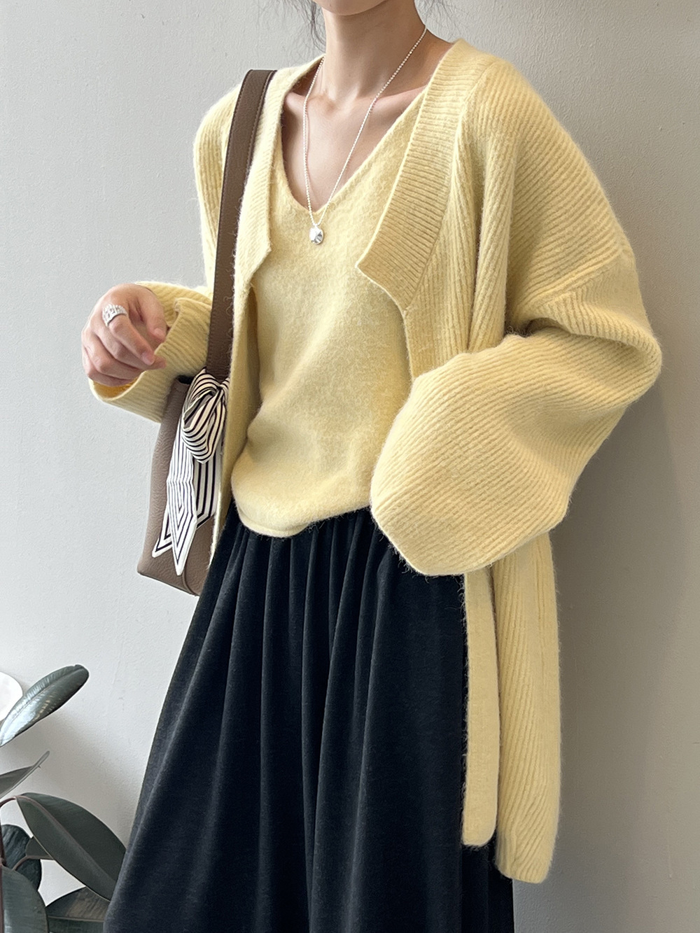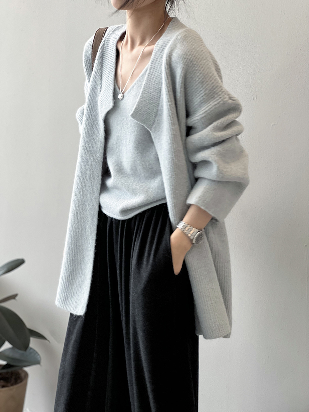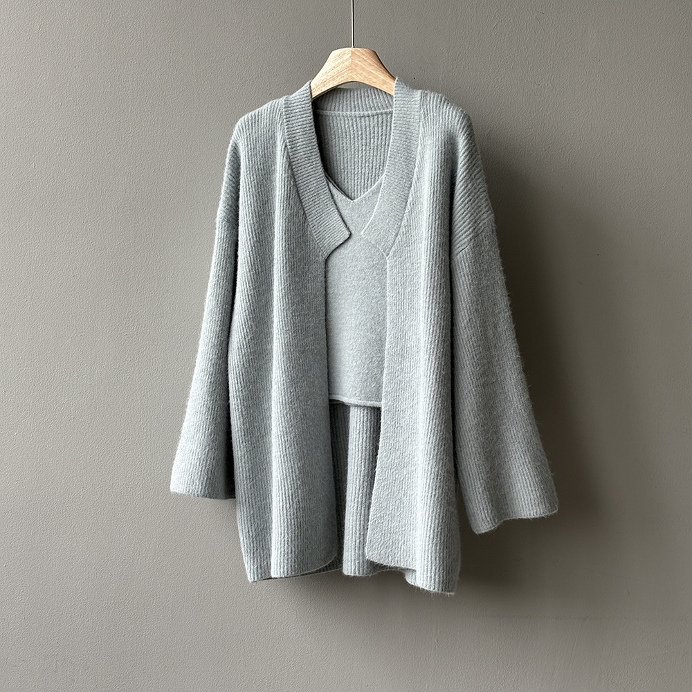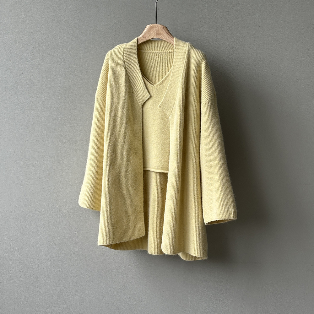 *o-ha-you*【FYSA102】韓系針織開襟衫外套2024秋季小眾吊帶背心毛衣兩件套裝-4色-如有需要請先諮詢
