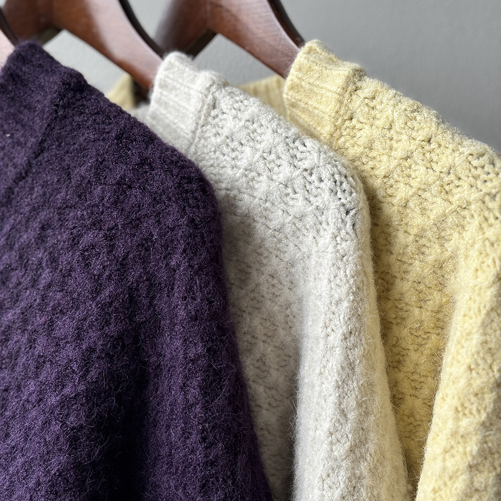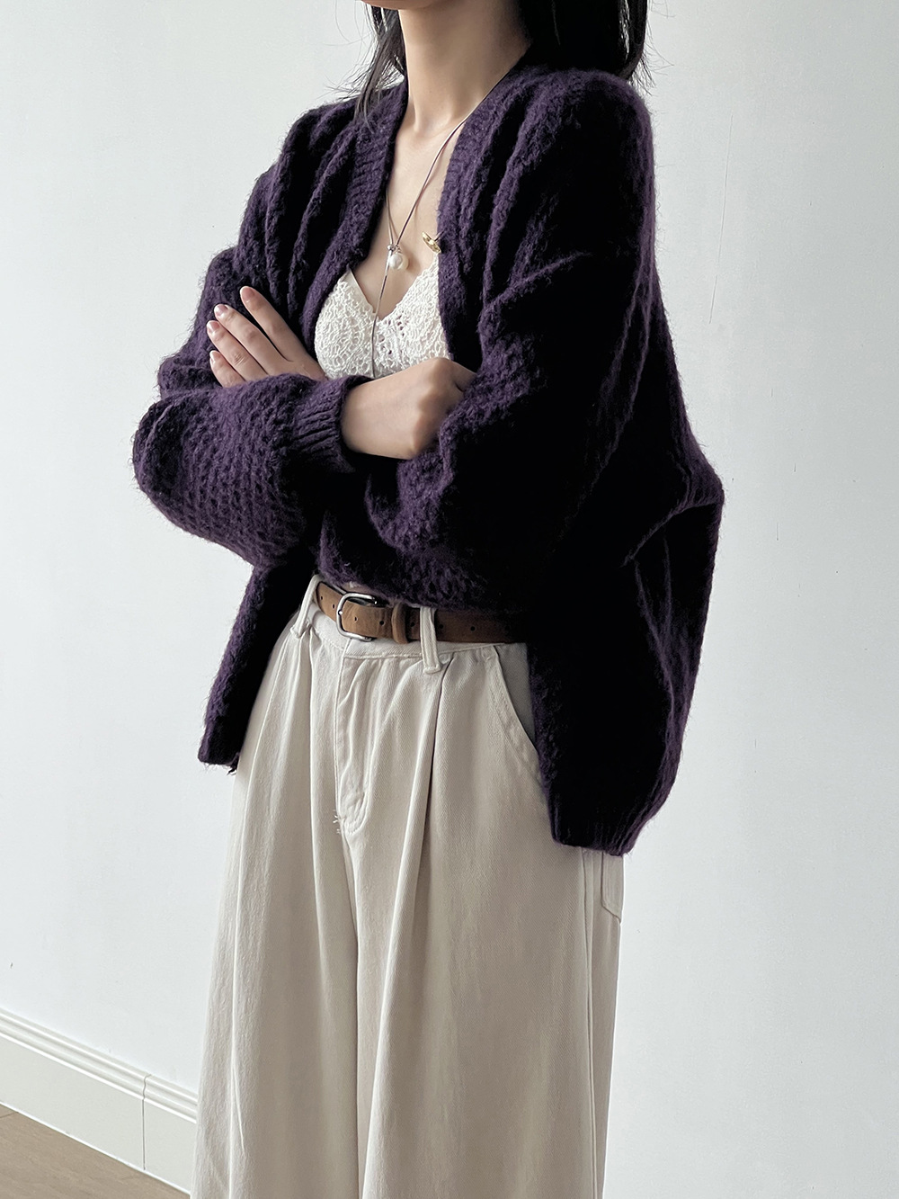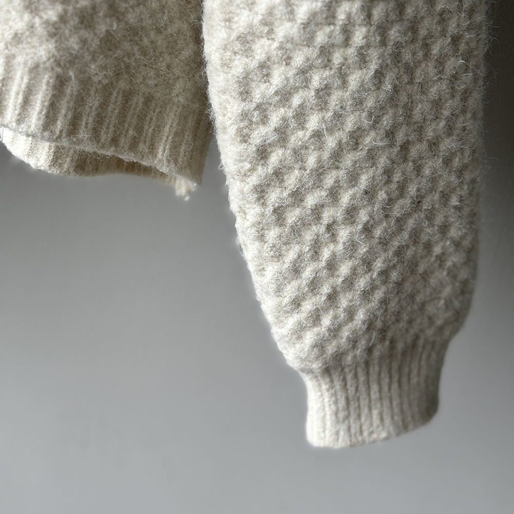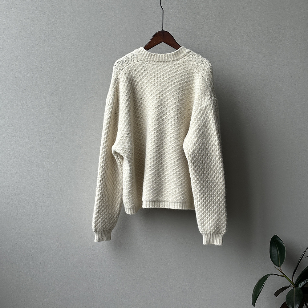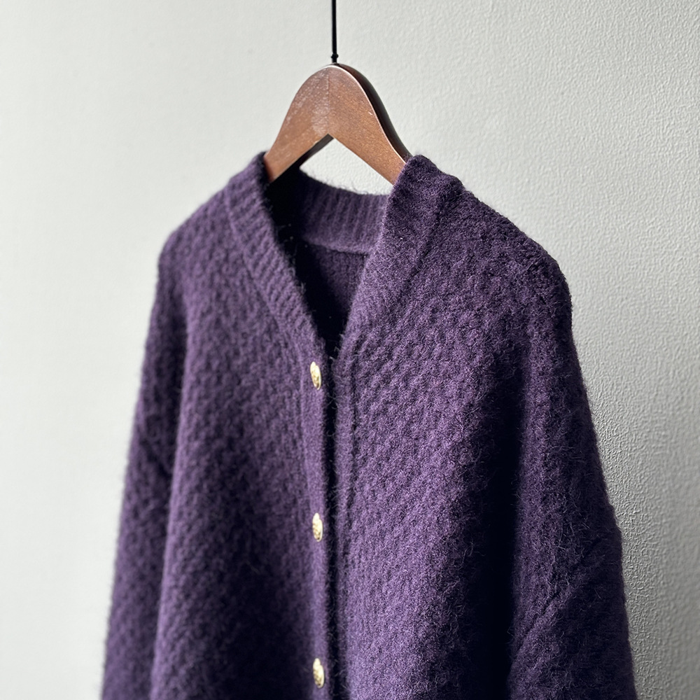*o-ha-you*【FYSA105】菠蘿紋愛心扣圓領毛衣2024秋冬寬鬆軟糯慵懶風針織開襟衫-3色-香檳黃有現貨