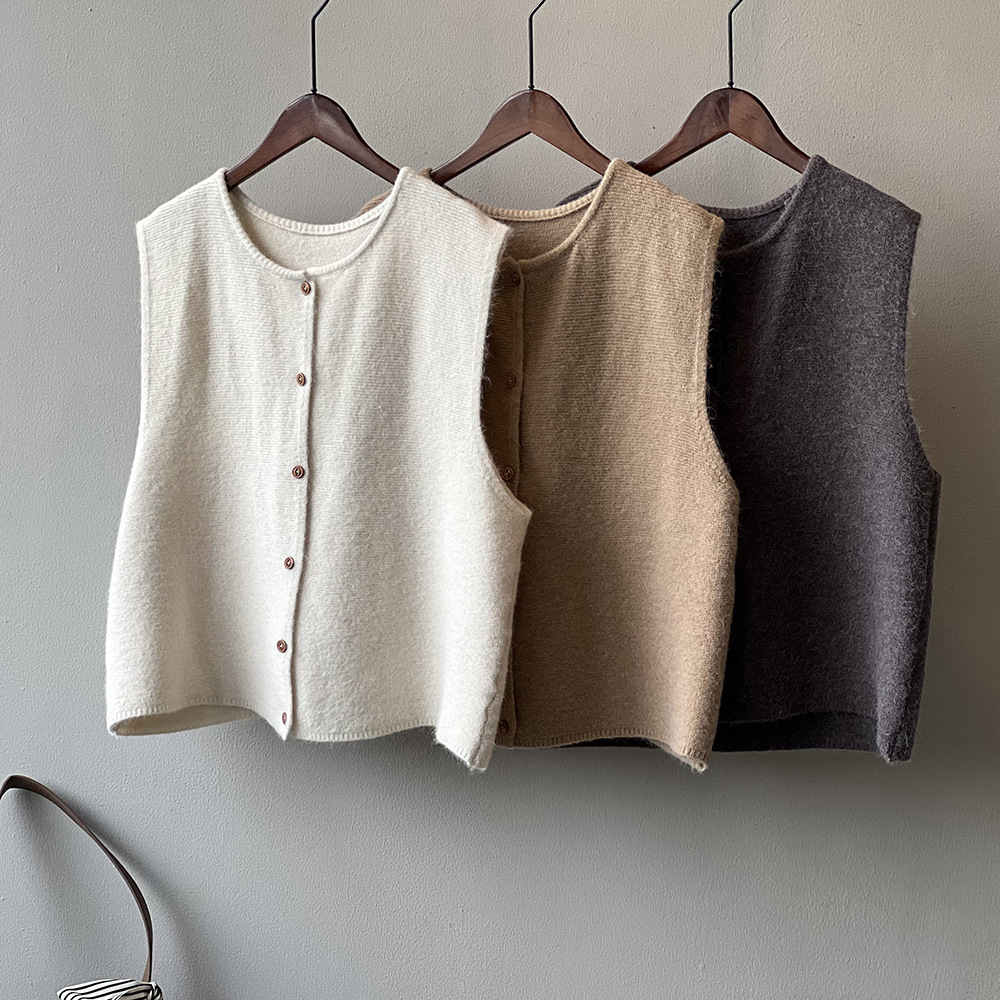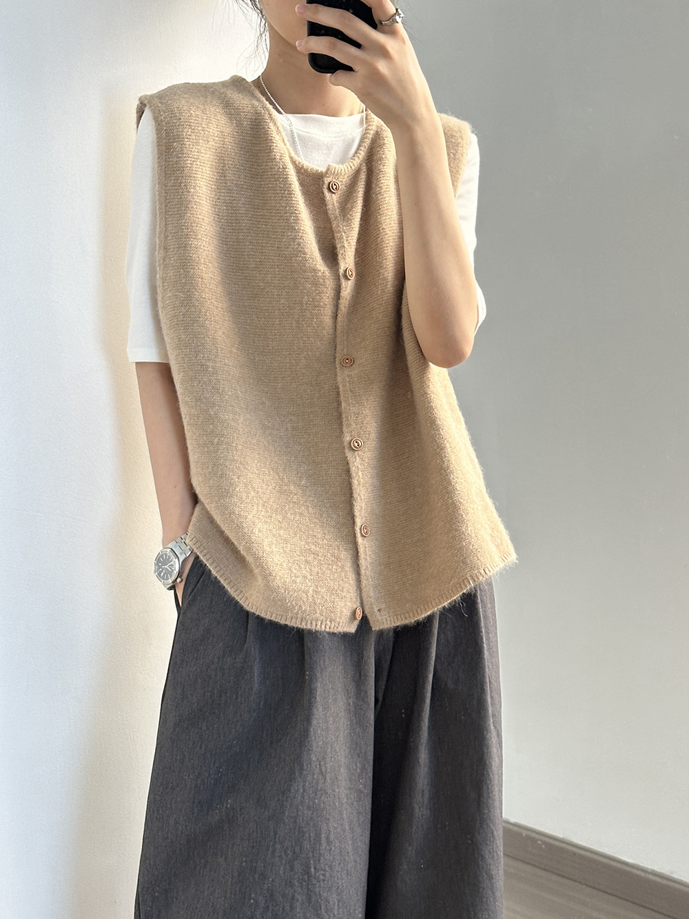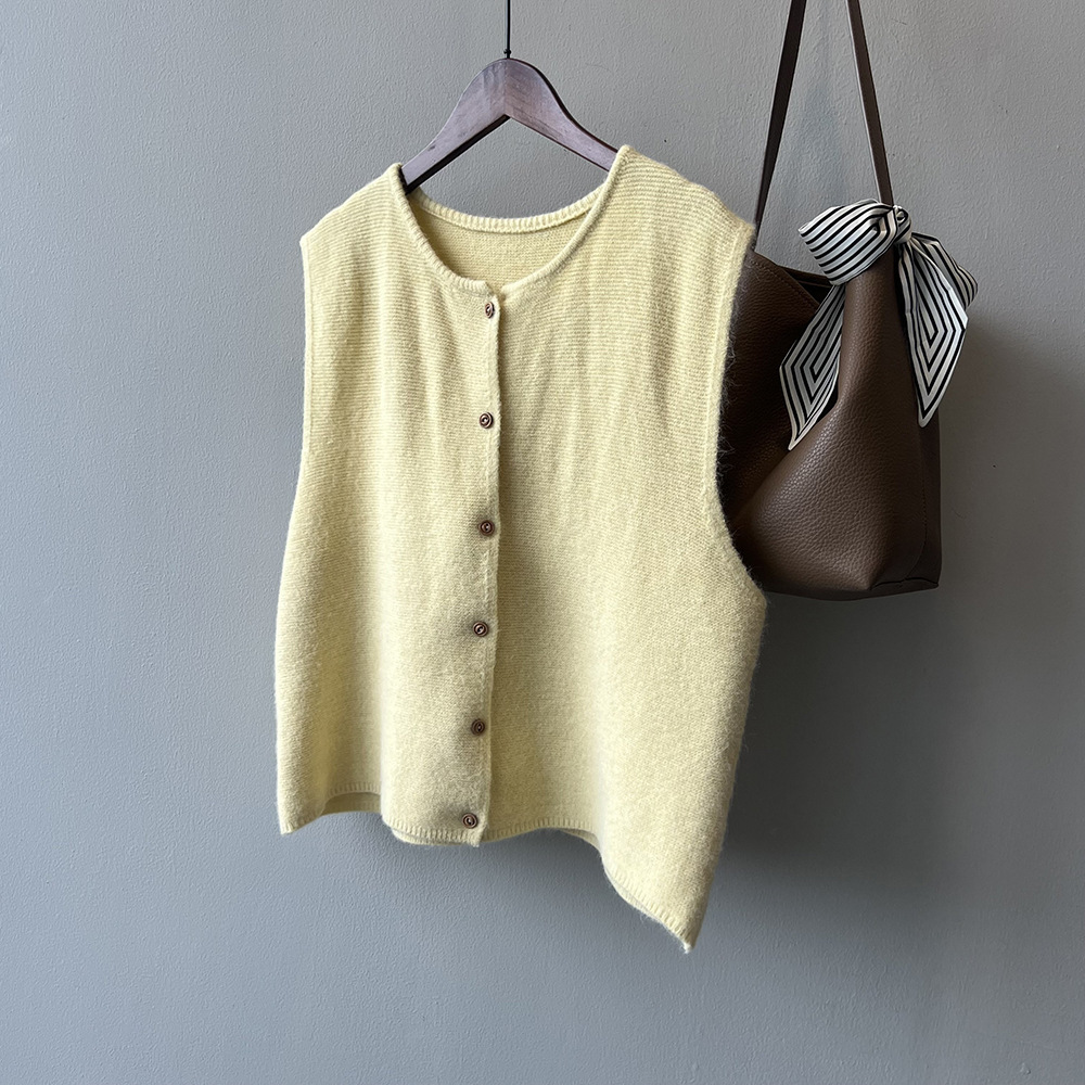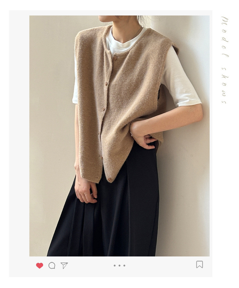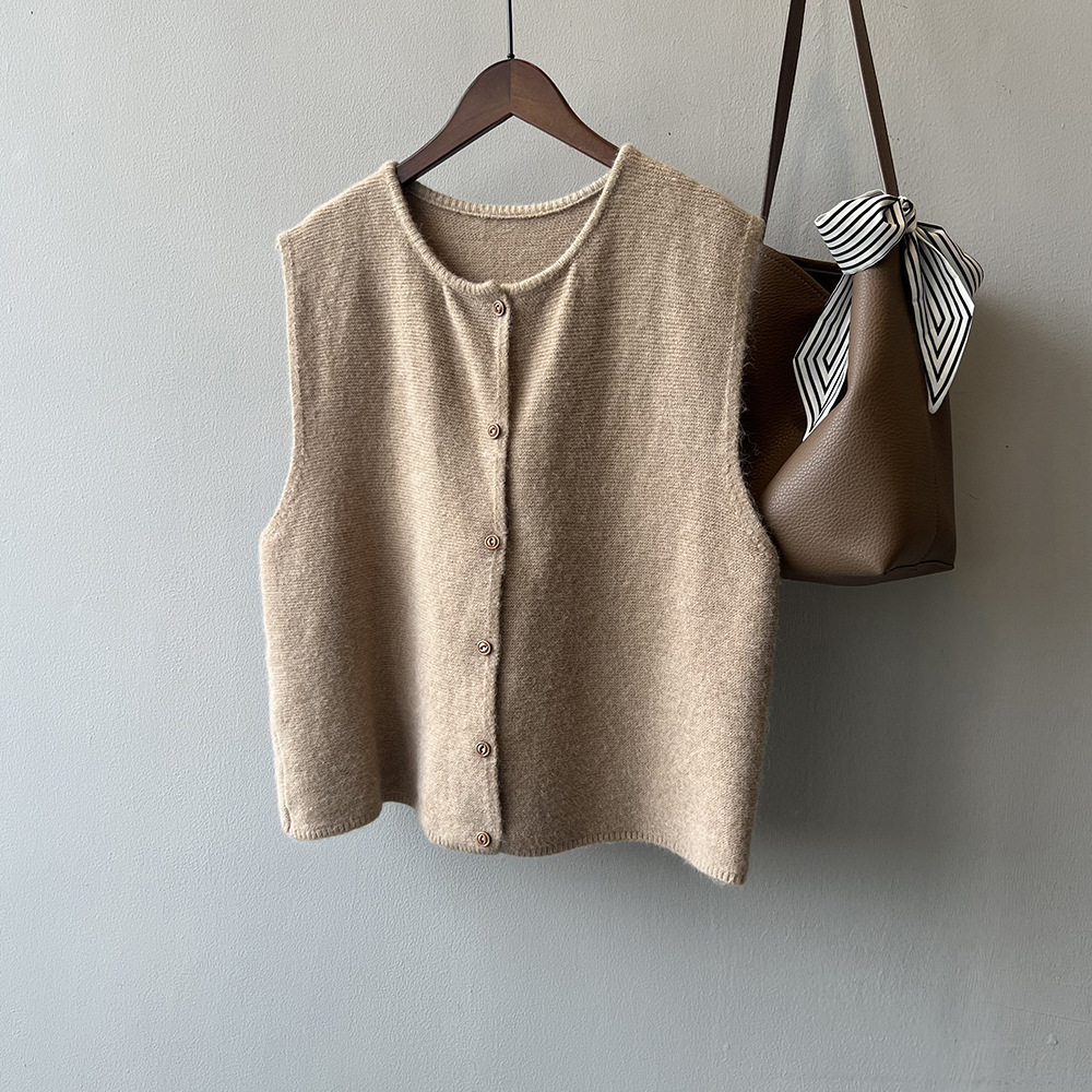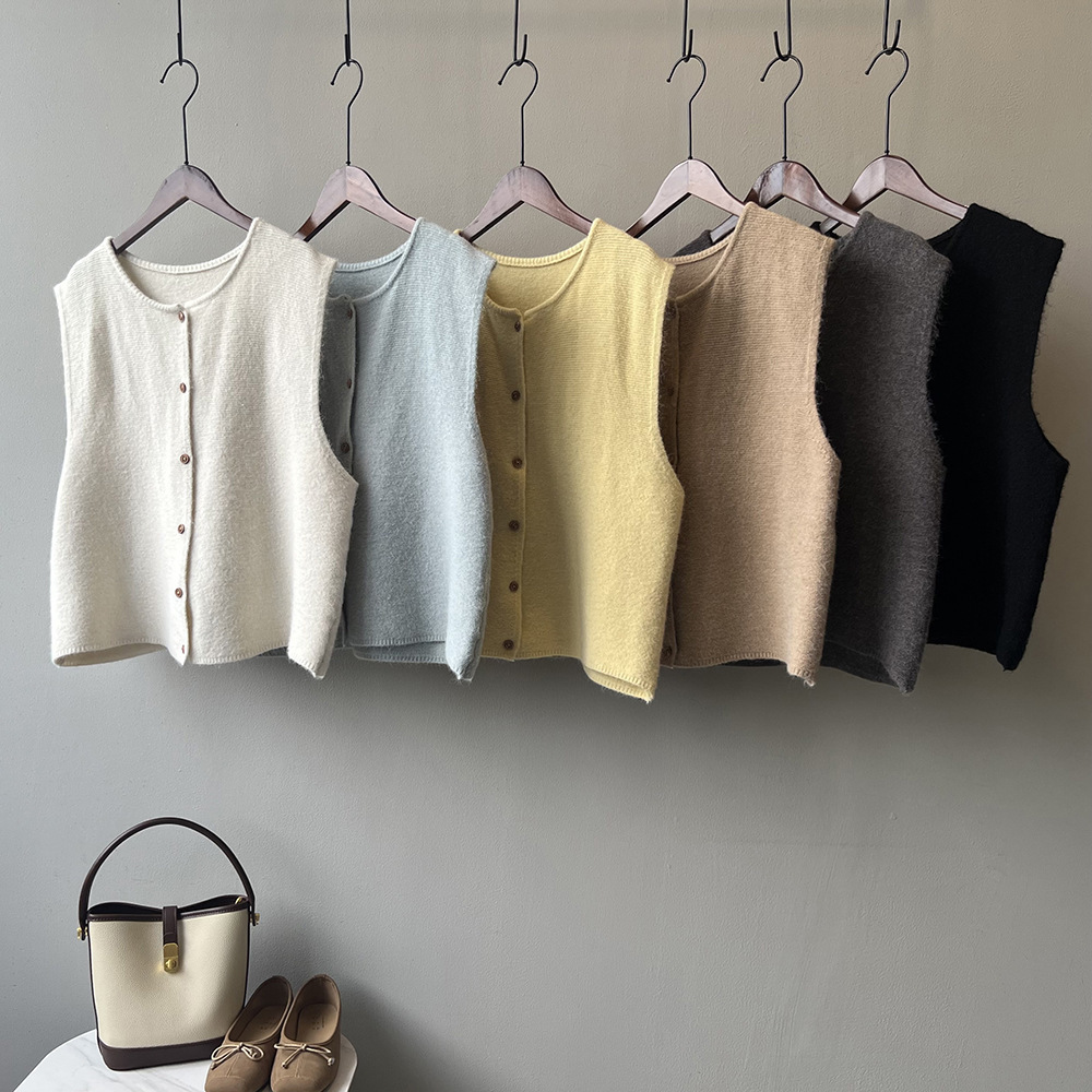 *o-ha-you*【FYSA106】簡約純色圓領針織馬甲開襟衫2024秋季新款寬鬆疊穿背心-6色