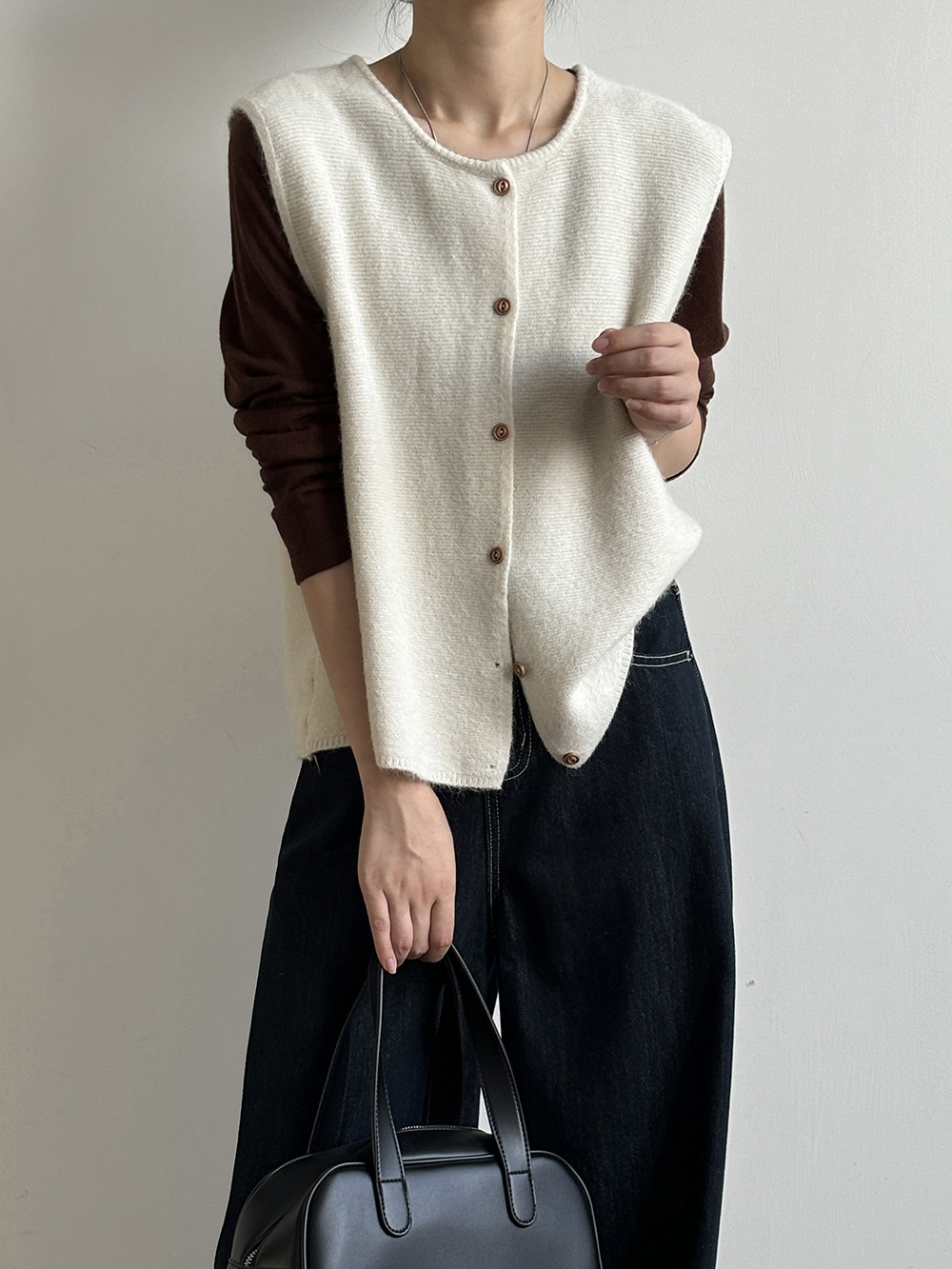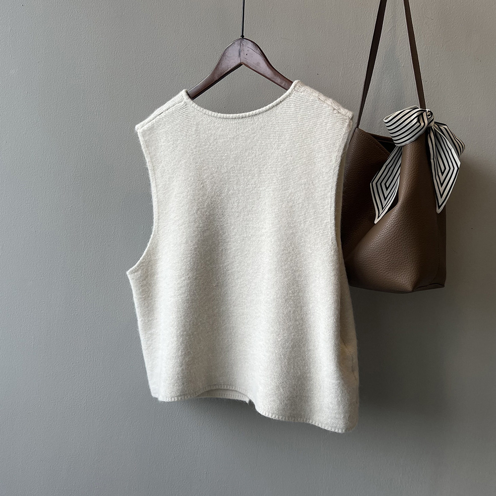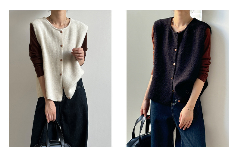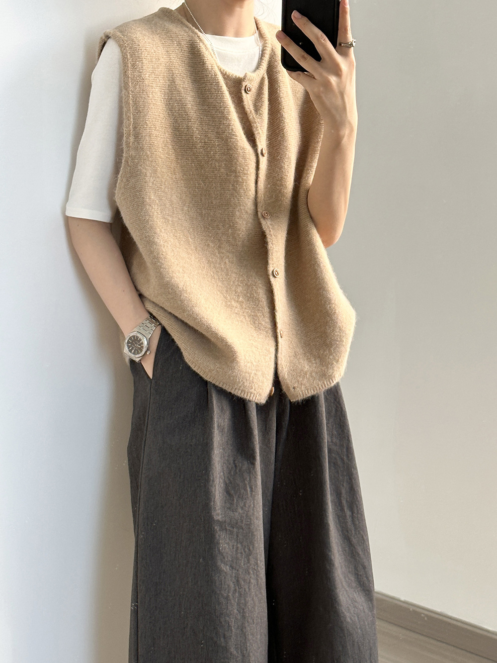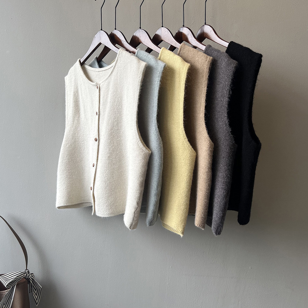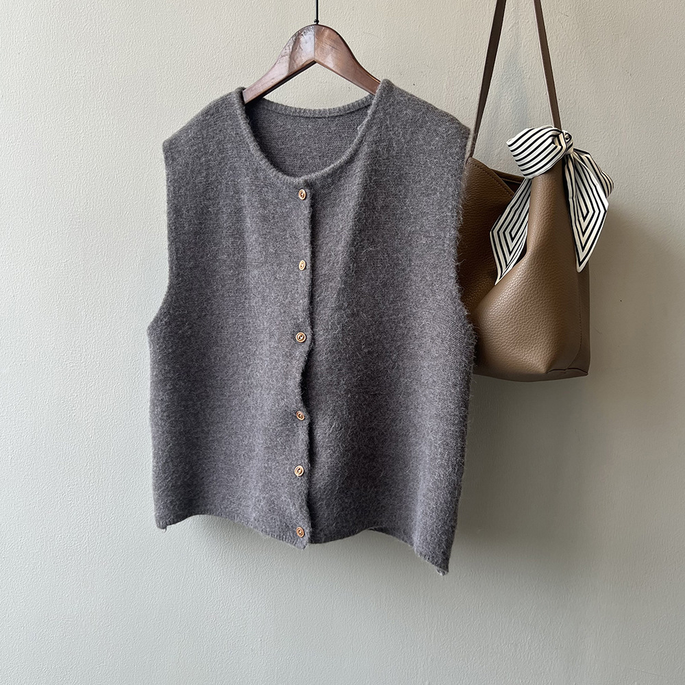 *o-ha-you*【FYSA106】簡約純色圓領針織馬甲開襟衫2024秋季新款寬鬆疊穿背心-6色