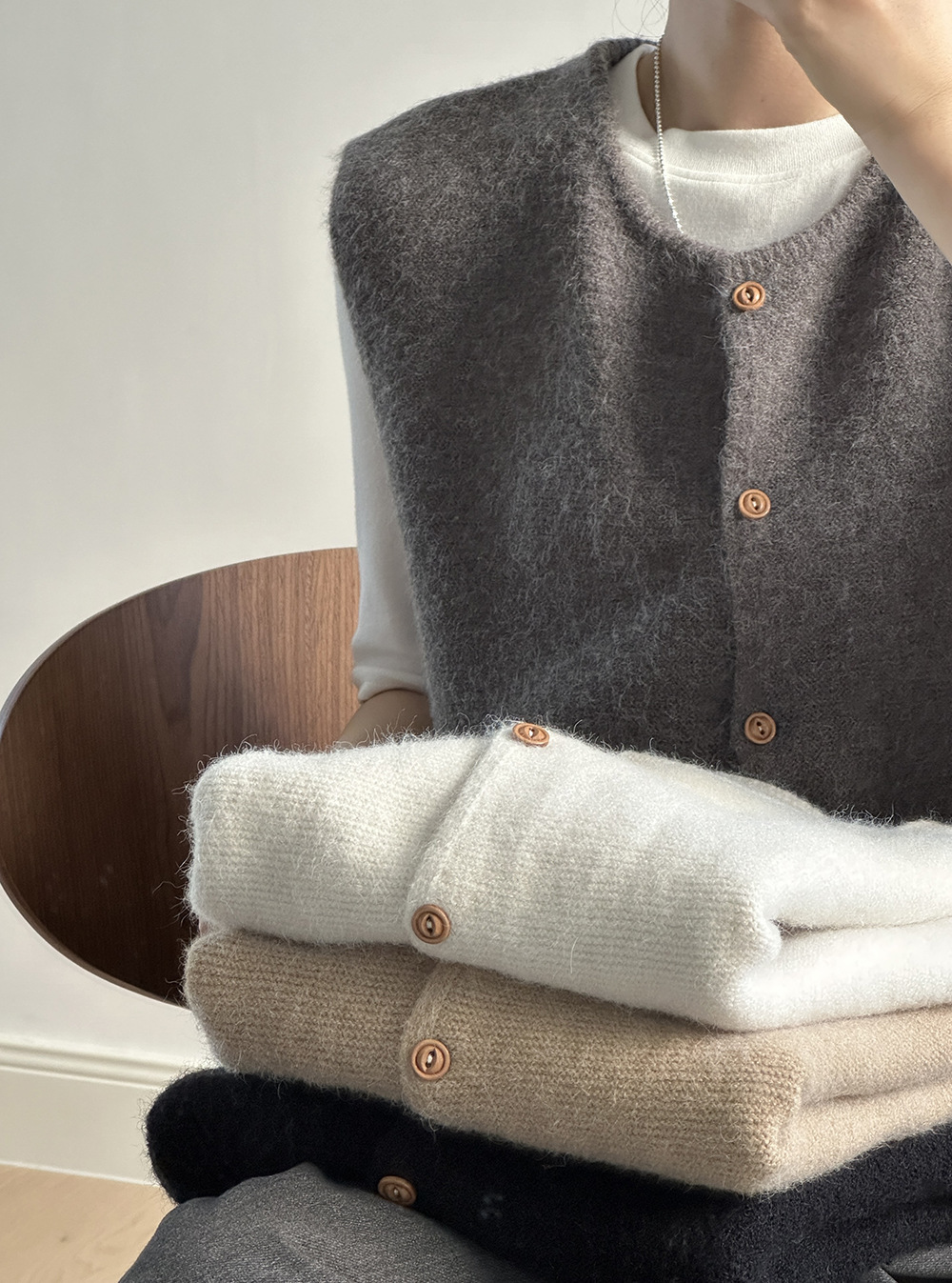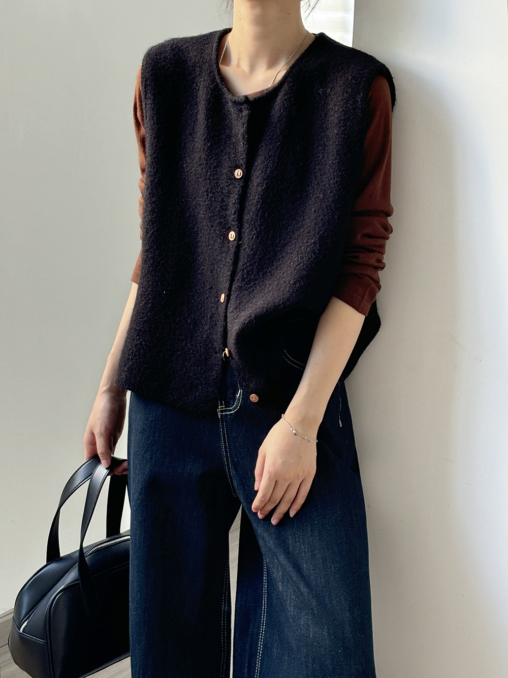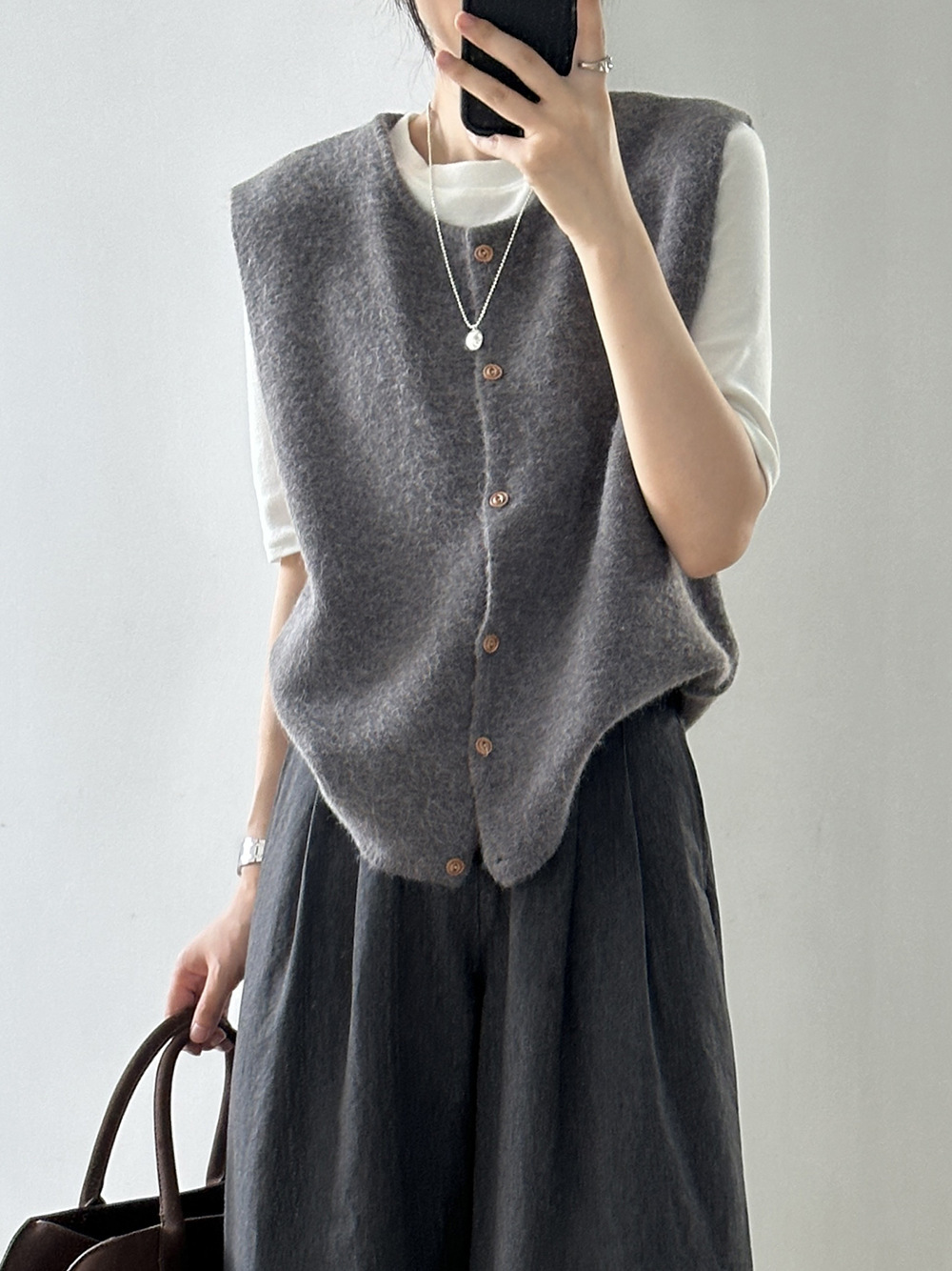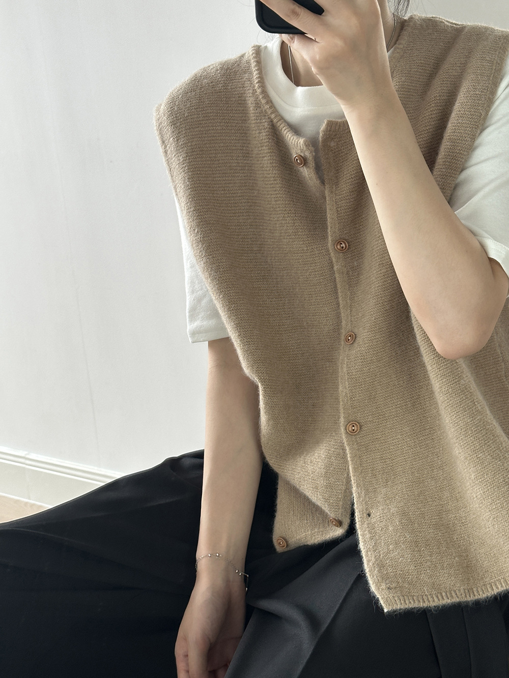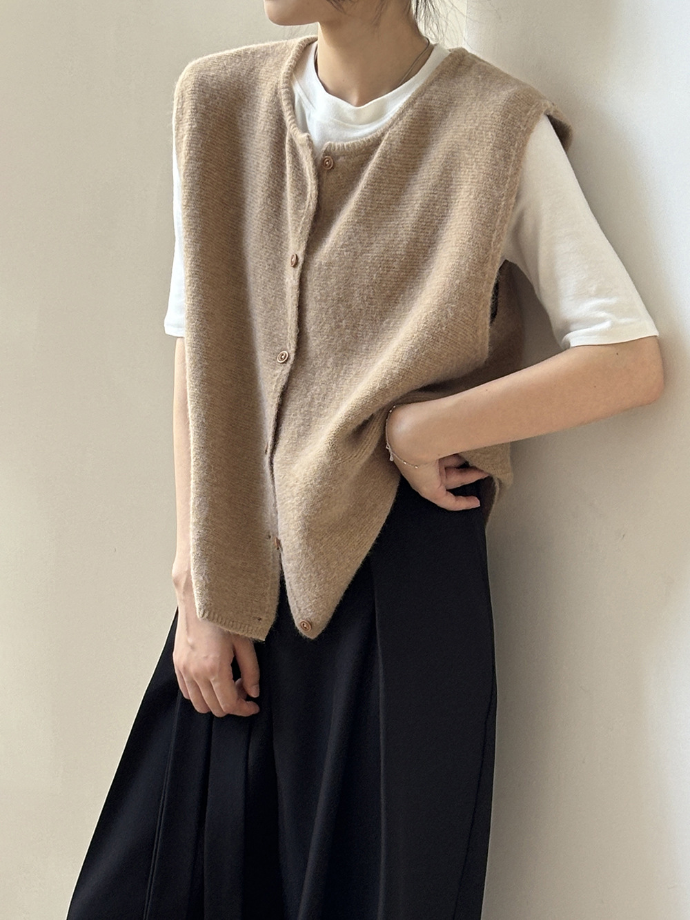 *o-ha-you*【FYSA106】簡約純色圓領針織馬甲開襟衫2024秋季新款寬鬆疊穿背心-6色