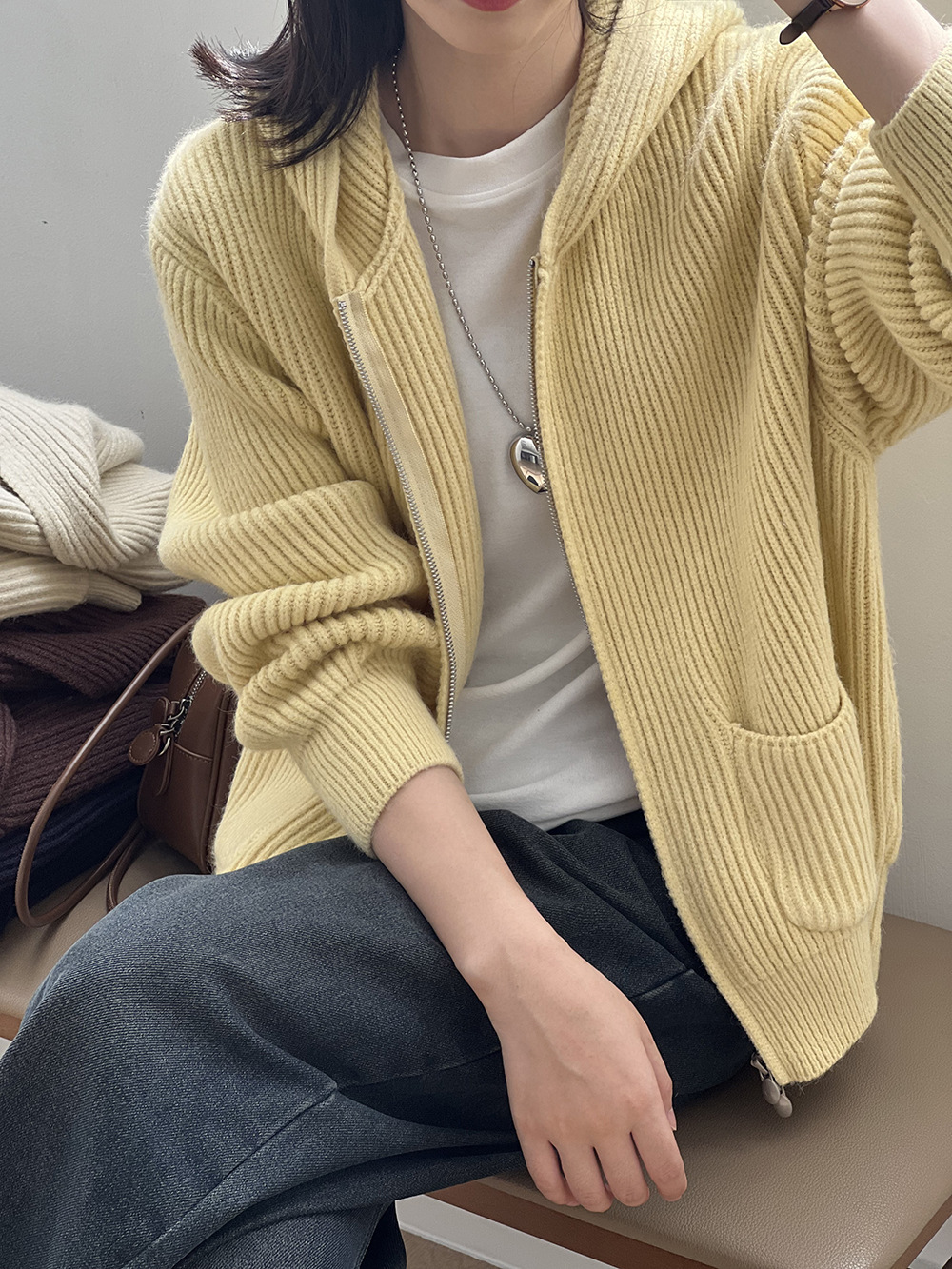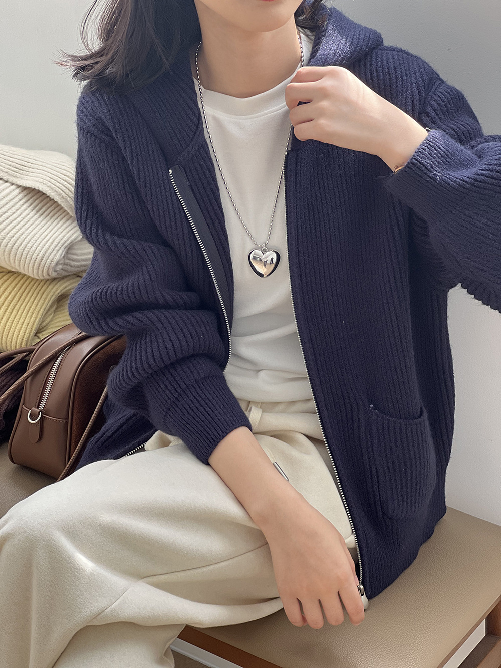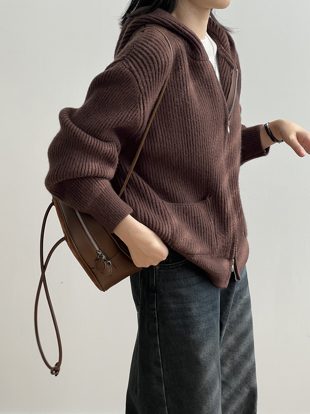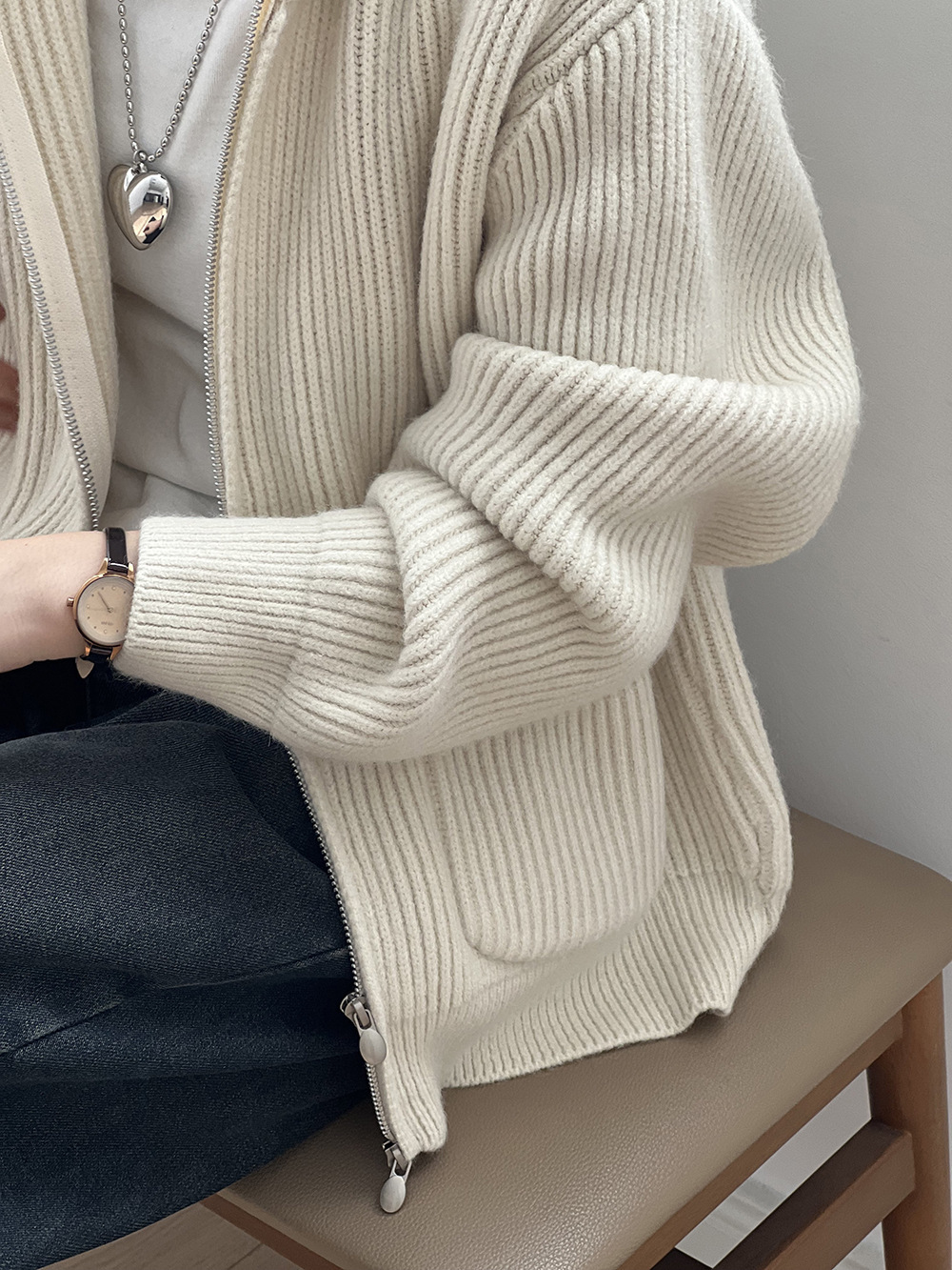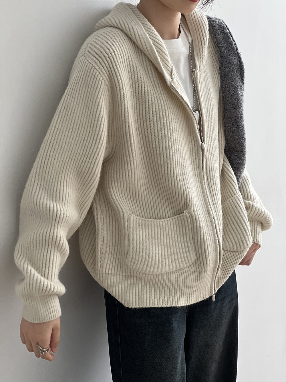 *o-ha-you*【FYSA201】軟糯連帽雙拉鍊毛衣外套2024秋冬新款簡約寬鬆針織開襟衫-4色-如有需要請先諮詢