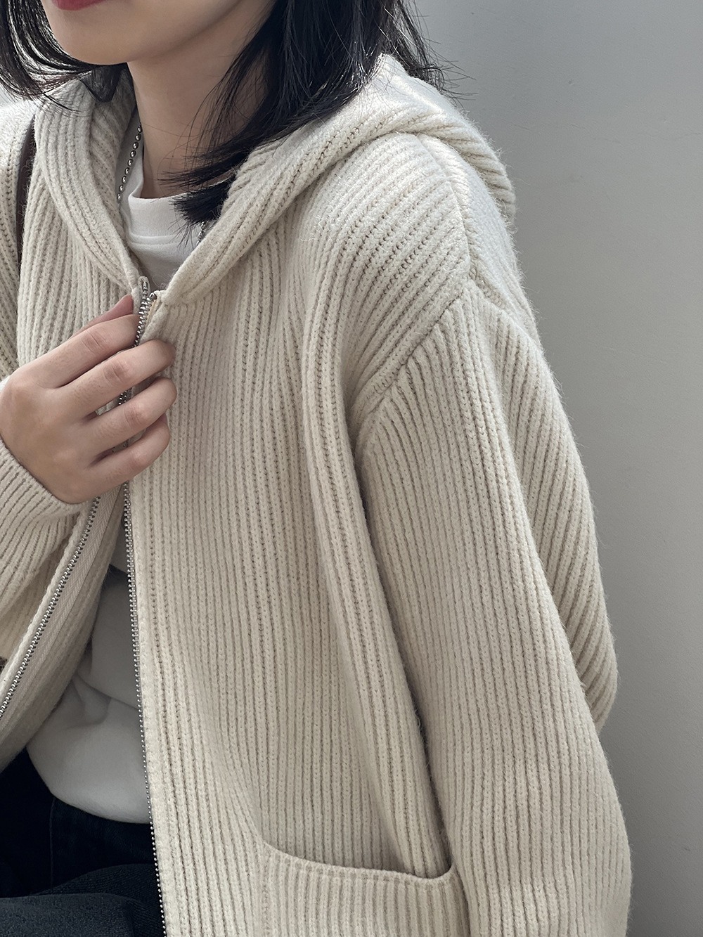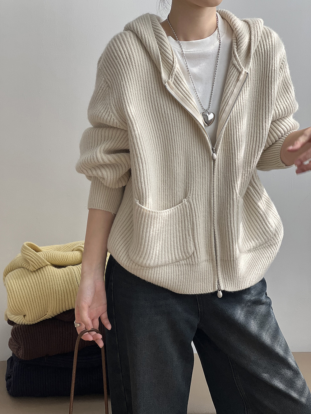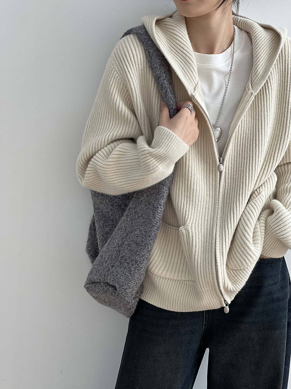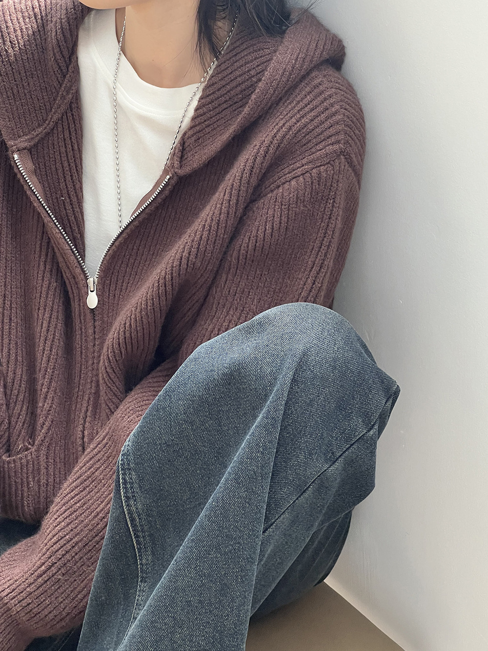 *o-ha-you*【FYSA201】軟糯連帽雙拉鍊毛衣外套2024秋冬新款簡約寬鬆針織開襟衫-4色-如有需要請先諮詢