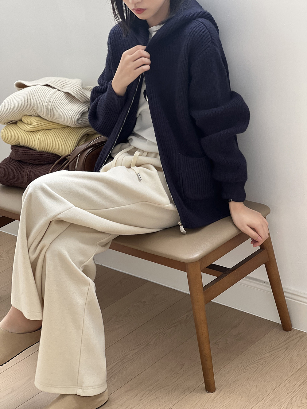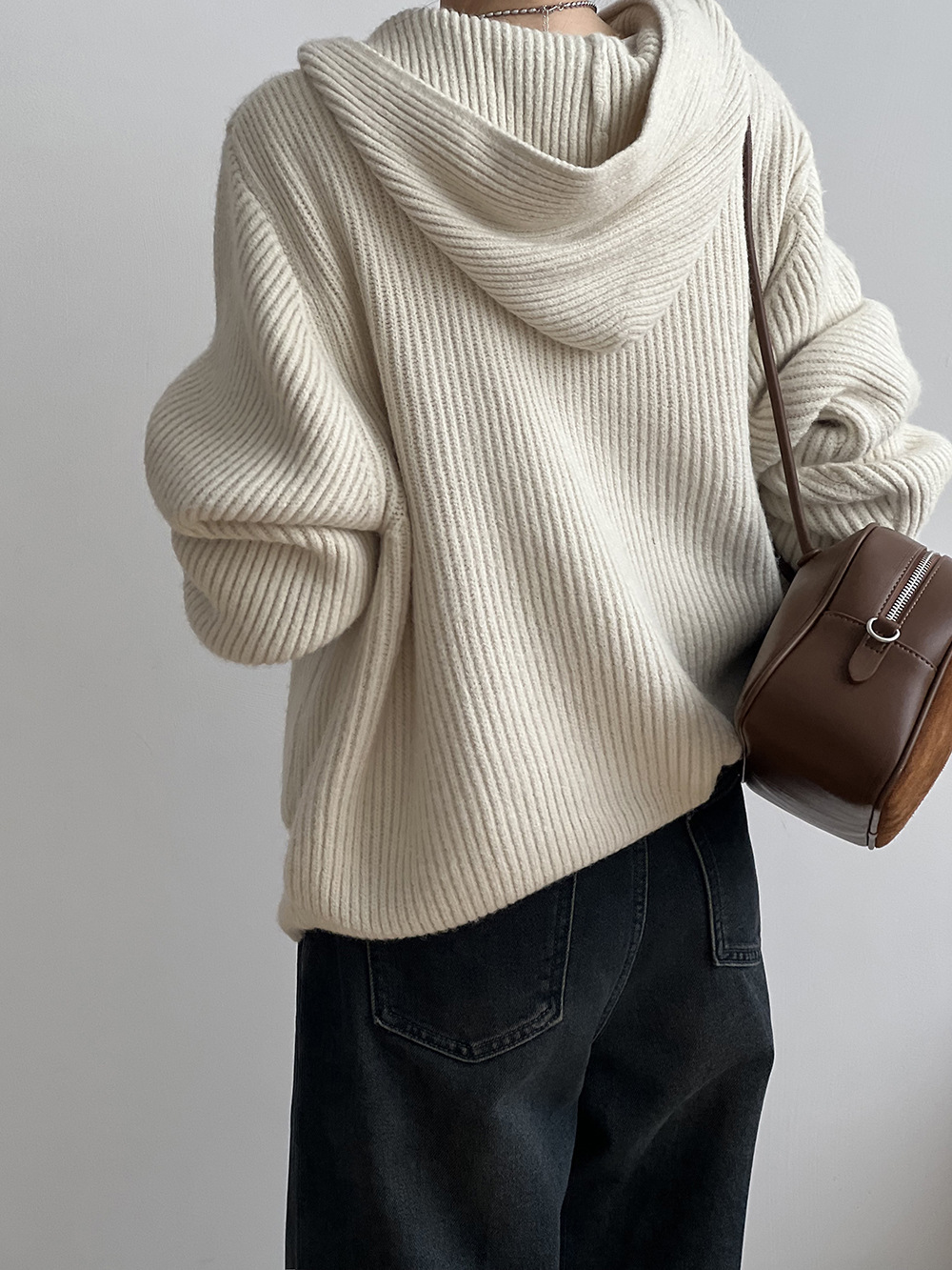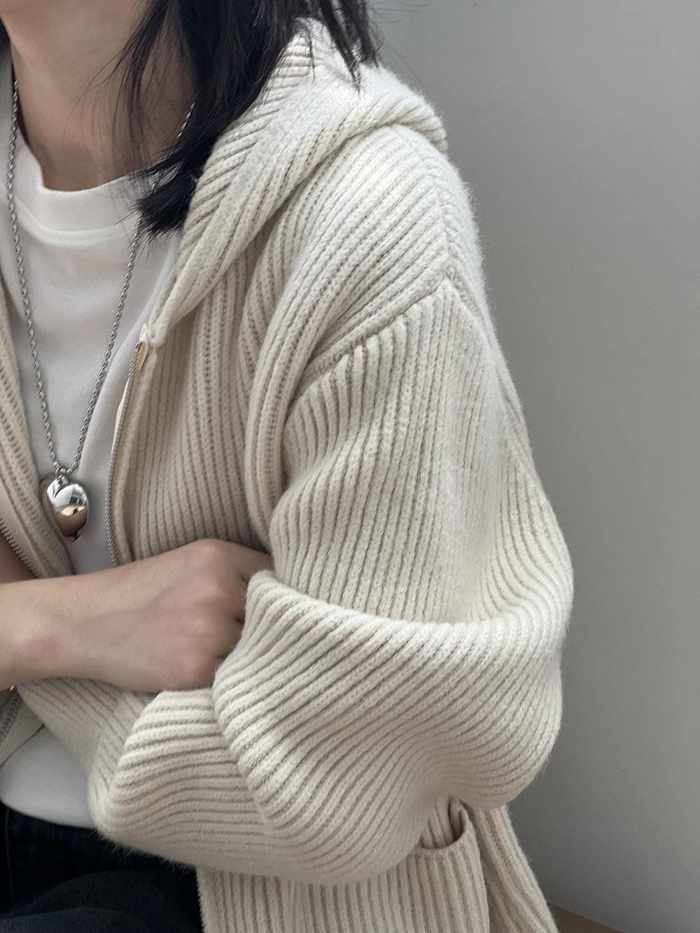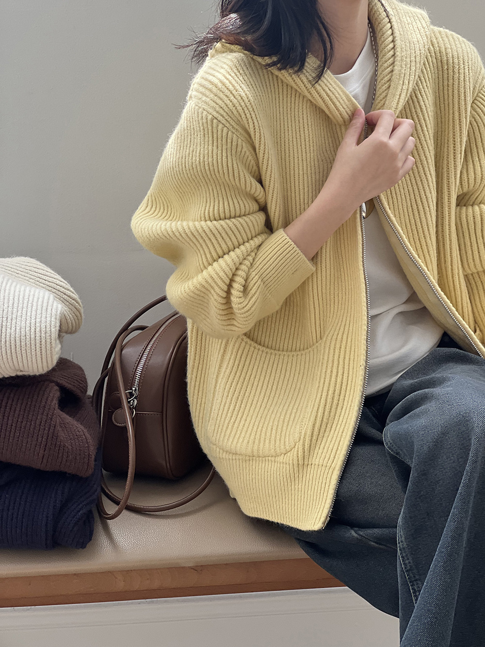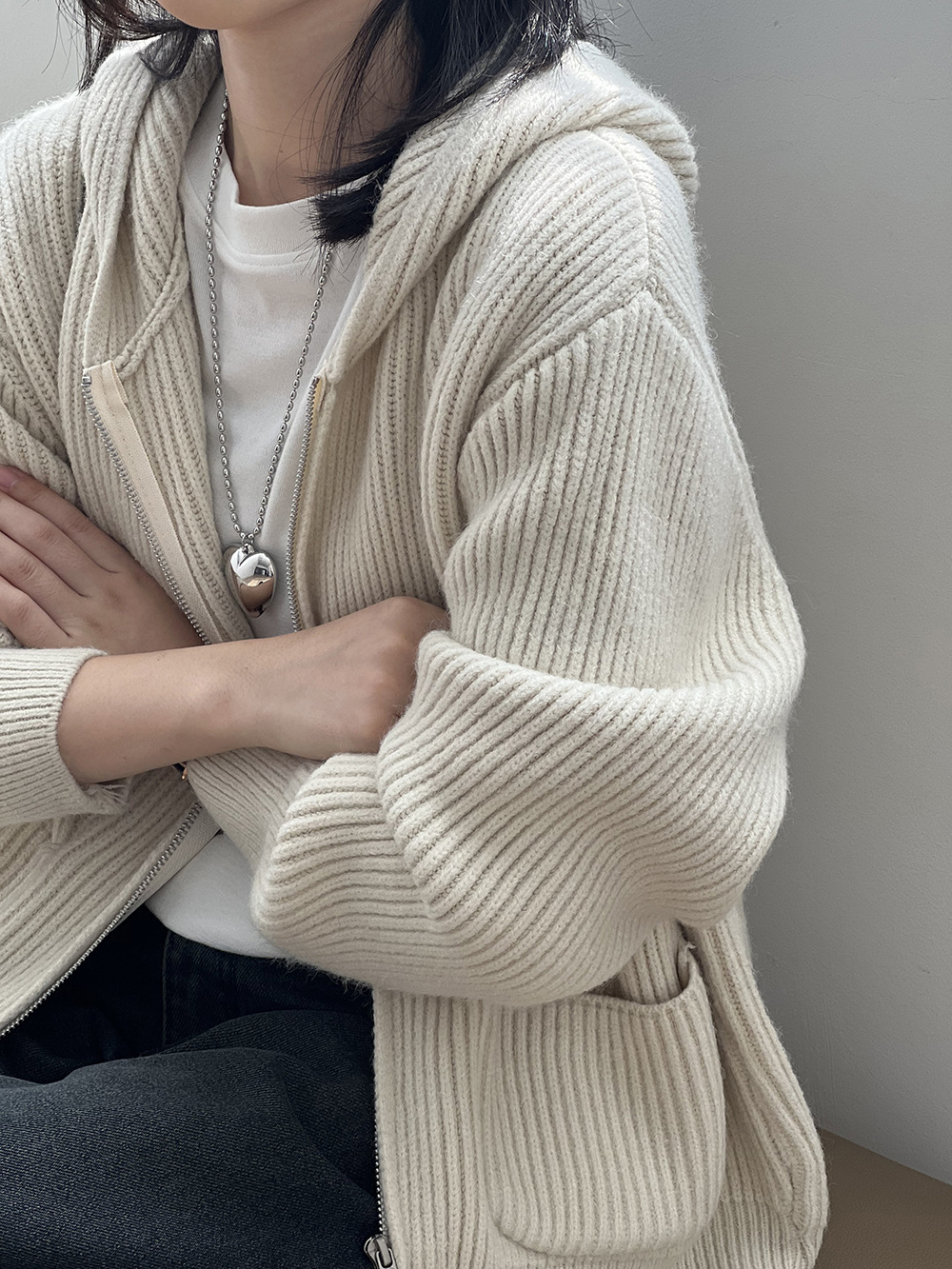 *o-ha-you*【FYSA201】軟糯連帽雙拉鍊毛衣外套2024秋冬新款簡約寬鬆針織開襟衫-4色-如有需要請先諮詢