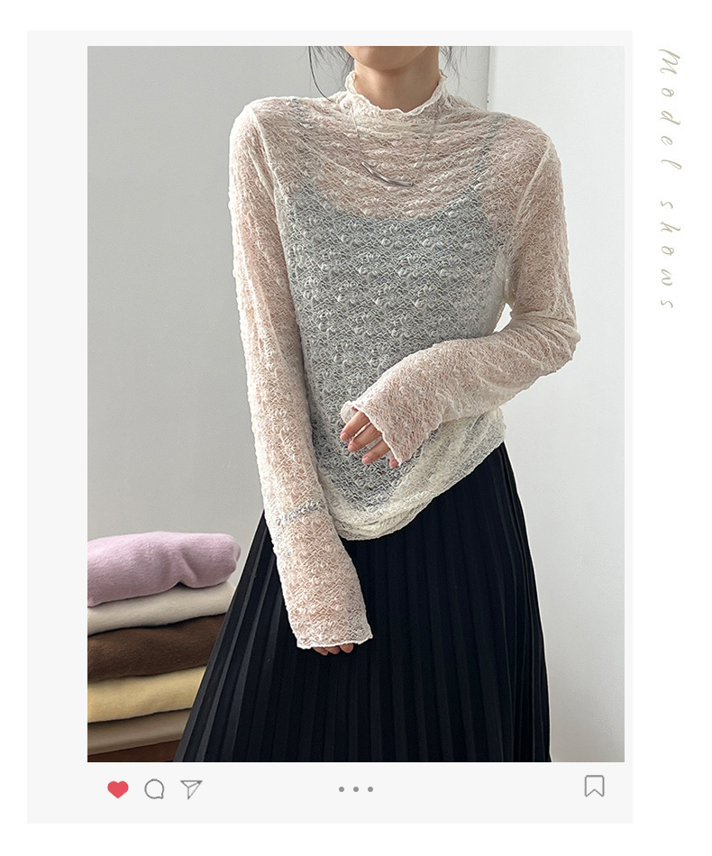 *o-ha-you*【FYSG9062】法式半高領蕾絲打底衫2024秋冬新款內搭修身長袖小衫-2色-如有需要請先諮詢
